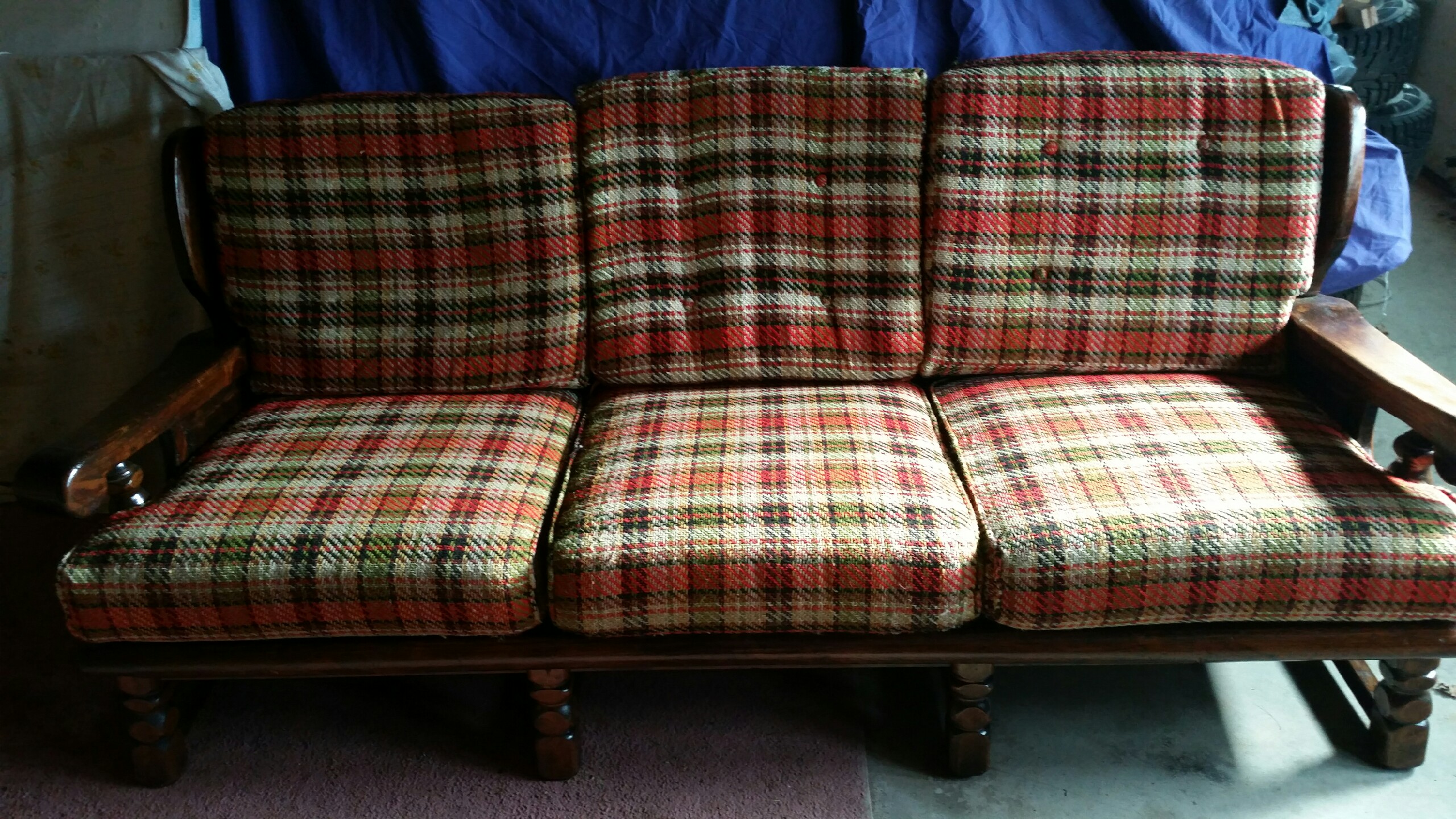 I Have had this furniture in storage for 20 years. When I came in possesion of it, the owner stated that it was estate furniture. There are no stamps or any labels on the furniture. It has the original red plaid cushions. I am posting photos to see if anyone knows the manufacturer or the age of the furniture. I would appreciate any feedback. Thank You!