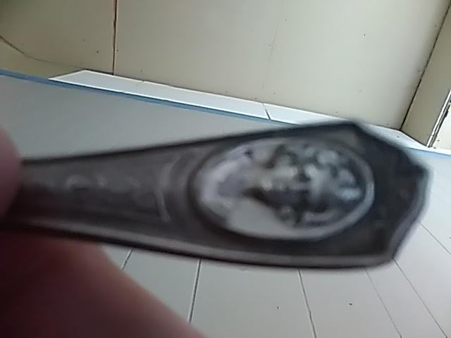 Great condition, par plate silver spoon, Oneida community, has stamps and a woman's face, also a signature, looks like maria davies