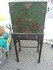 Mahogany or mahoghany finish. No shelves in cabinet.