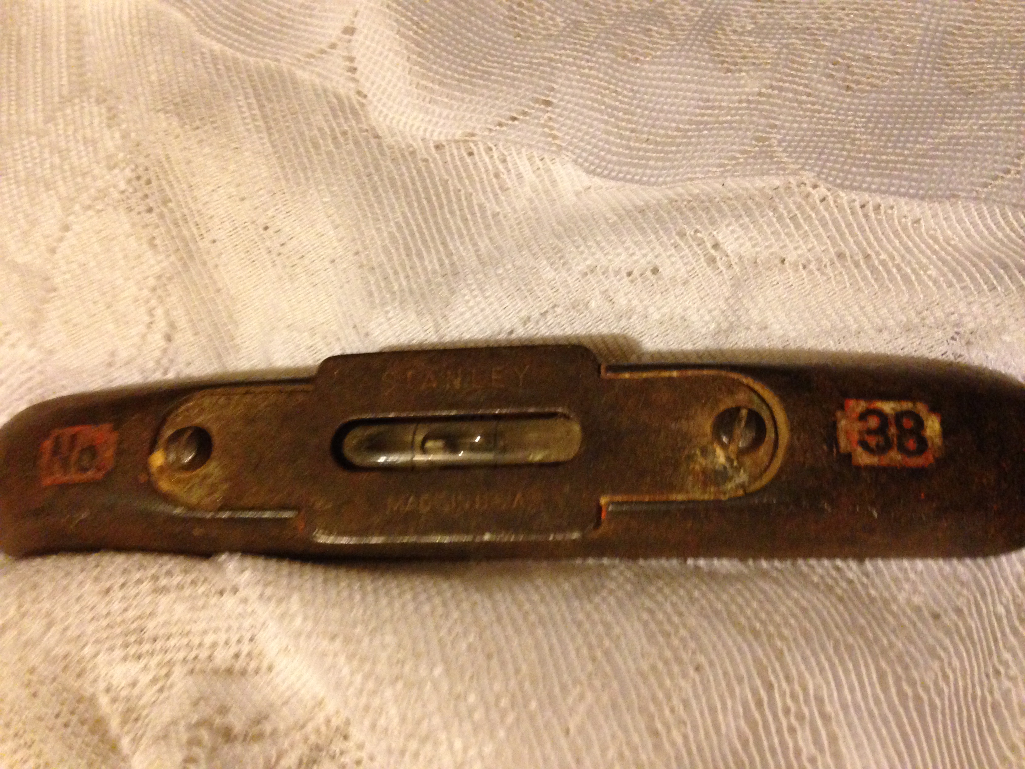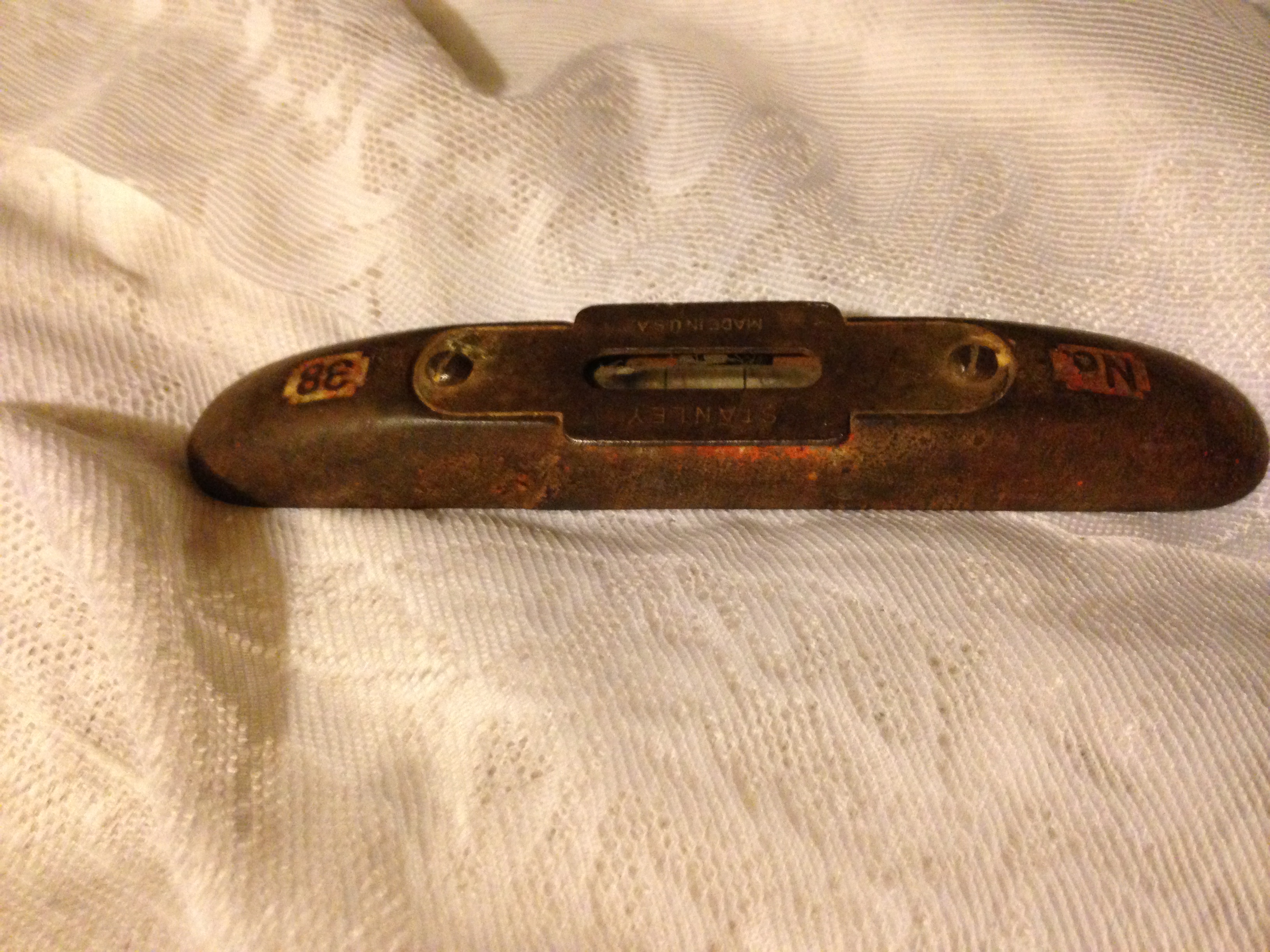 Antique metal?iron? Stanley level. says "No." on one side and "38" on the other. About 6" long and 1" high.