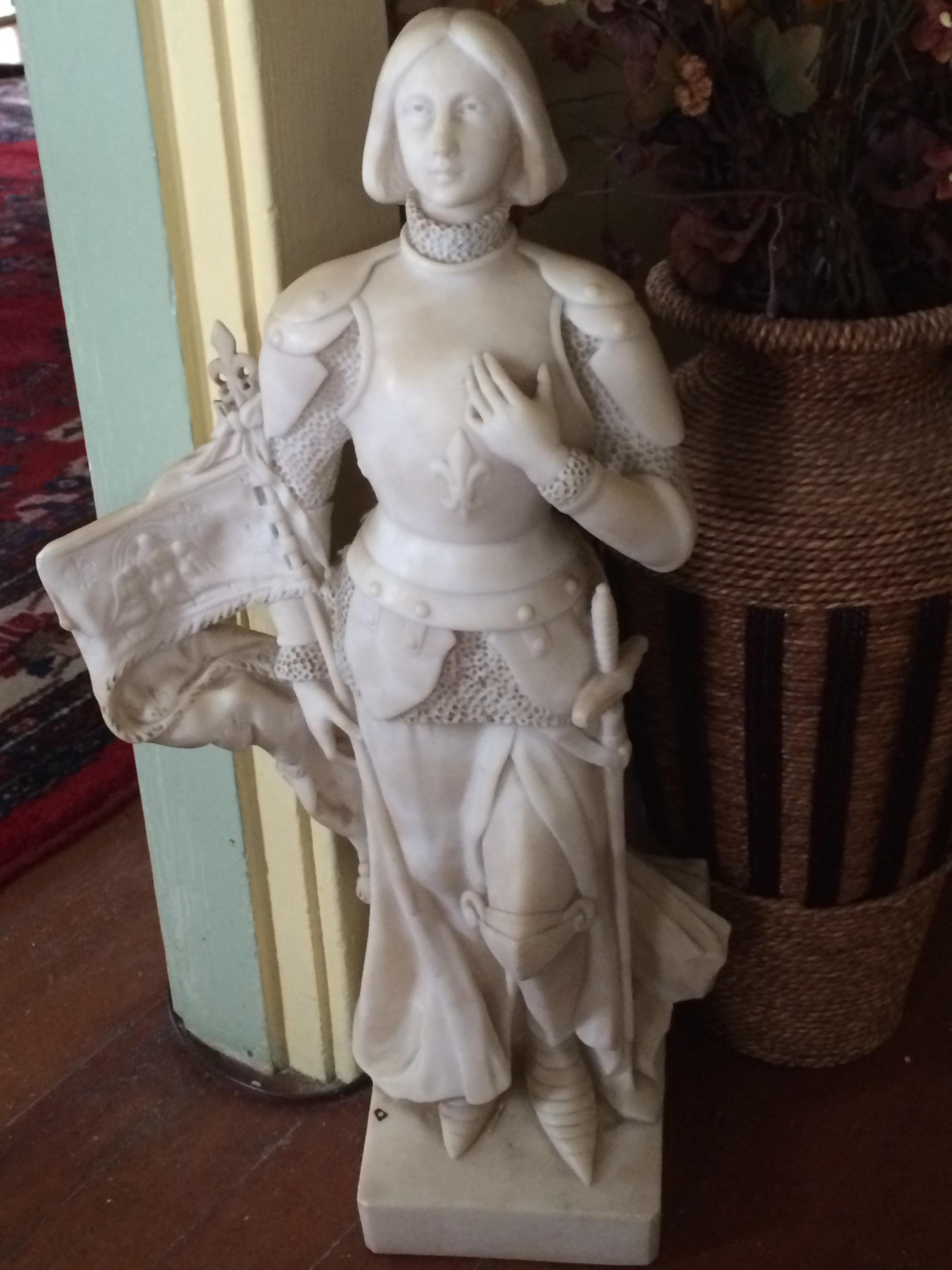 This statue is made of what looks like marble, and it is Joan of Arc. It weighs about 55 pounds, and is a little taller than two feet. I am just curious to who this is an maybe a general value. It was shipped from the other side if the world (I think france) about 40 years back.