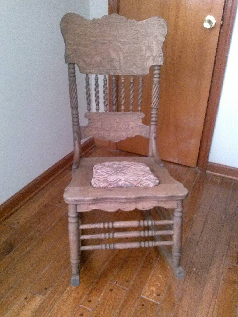 Bought at a flea market. The guy said it was from the 1800's and was a steam pressed chair. It is very ornate and has an odd design pressed into it. I believe you can see it in the pictures. I wish i could give more details on it.