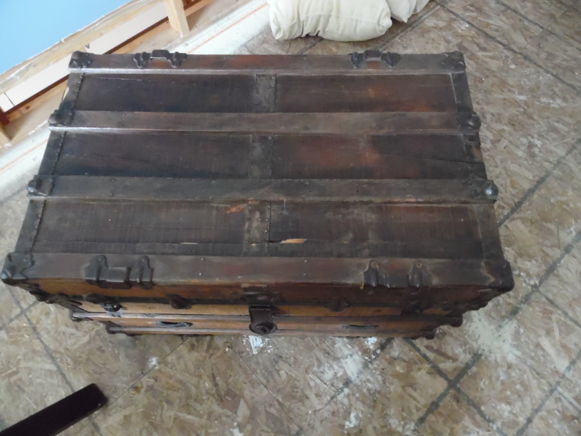 Pictured damage to top and slight water damage to base. Not refinished or reburbished.