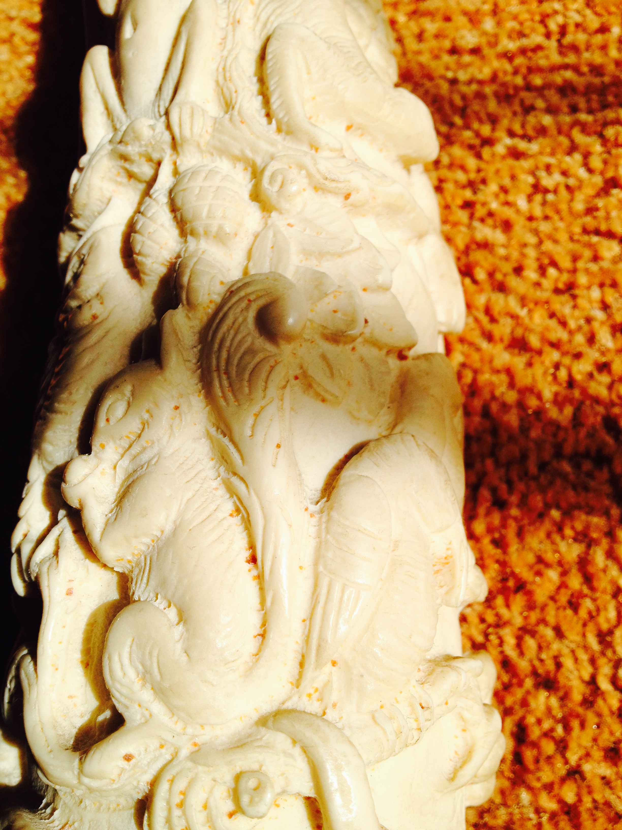 some staining, scratches, and discoloration inside bowl. Aside from need for a polish, exterior in pretty good shape.