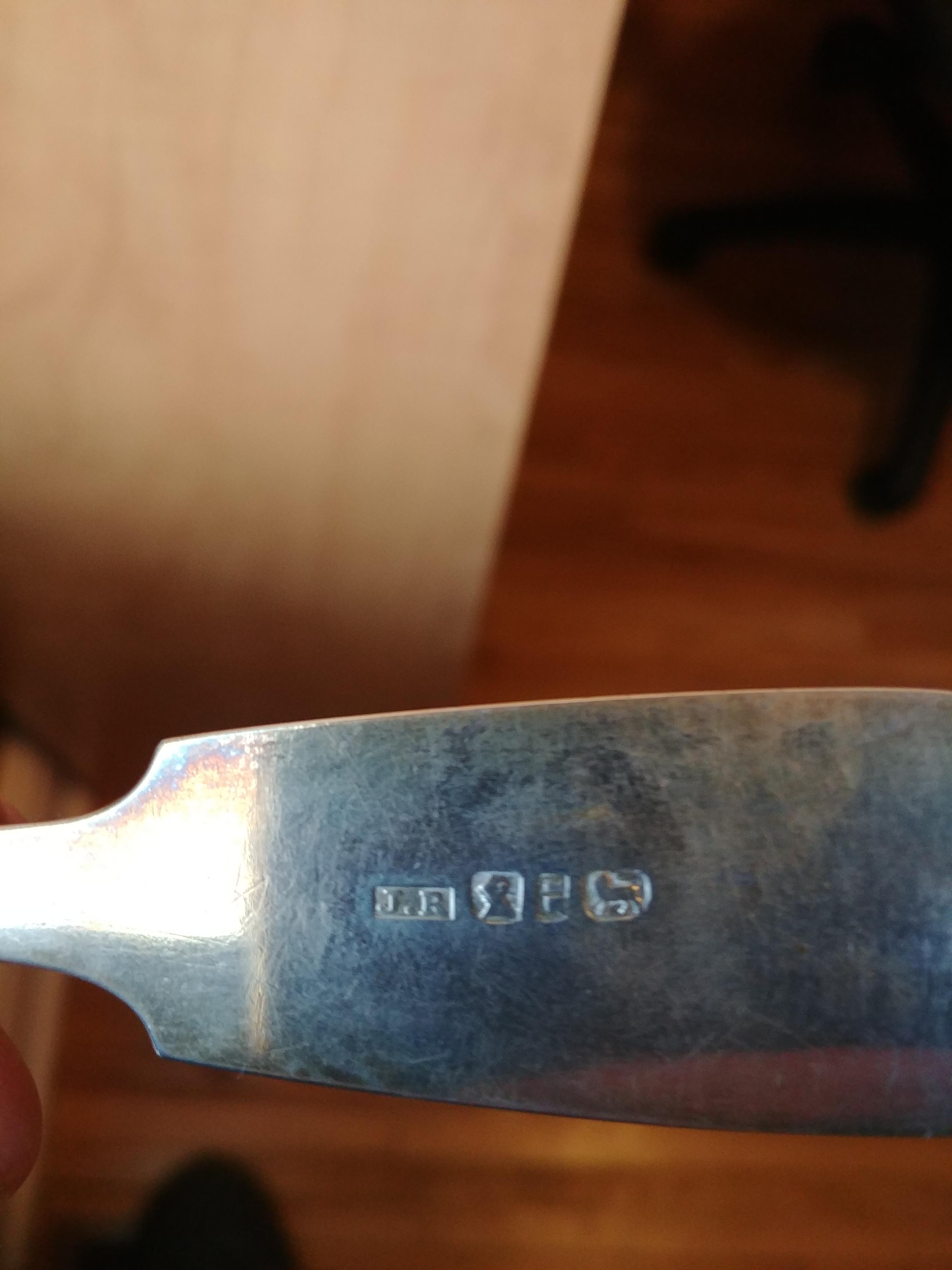 The spoons are stamped with J.R followed by three symbols. The initials on the spoon are identical to the initials in the image below. The markings look similar but not identical. https://www.silvercollection.it/452INGLESEBIS.jpg