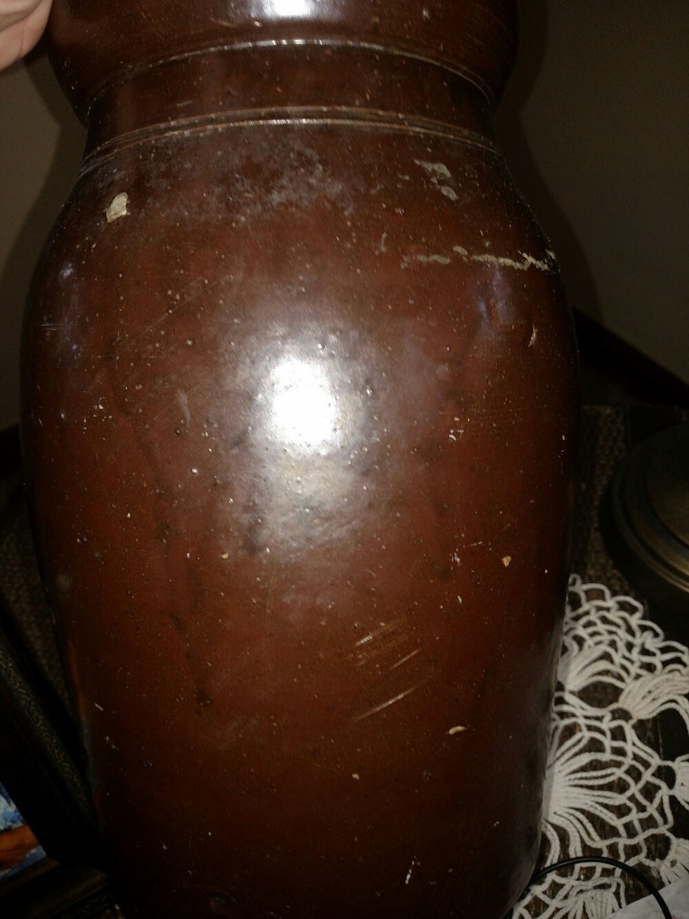 Hello, I have had this Crock/ storage jar forever and over the past few years spent countless hours on the internet and looking through books and just cannot identify the markings. I posted it on a pottery site for collectors/experts and even on there no one was able to help me. Someone thought it might be Galena, and I researched that but couldn't find anything that looks like this. I was just told that it was possibly worth a lot of money and up until now it wasn't really a priority to know. But due to recent events I need to identify it so that I can sell it if it's valuable enough. I have a couple of other things going to be posting that I don't really have a clear idea on the value most of them able to find in a book or somewhere but these few items have just been very difficult. I was recently in New Orleans and had someone look at this who deals in antiques and he seemed to think that the two engraved in it meant that it was used to store olives? I have no idea I assume that the two meant 2 gallons but I know nothing about pottery! I would so much appreciate any advice or insight and thank you in advance should you take the time to help me out I look forward to checking this site out a little bit more, so far it looks amazing but I've spent all of my time trying to post this and get the pictures on here and haven't had a chance to look around!