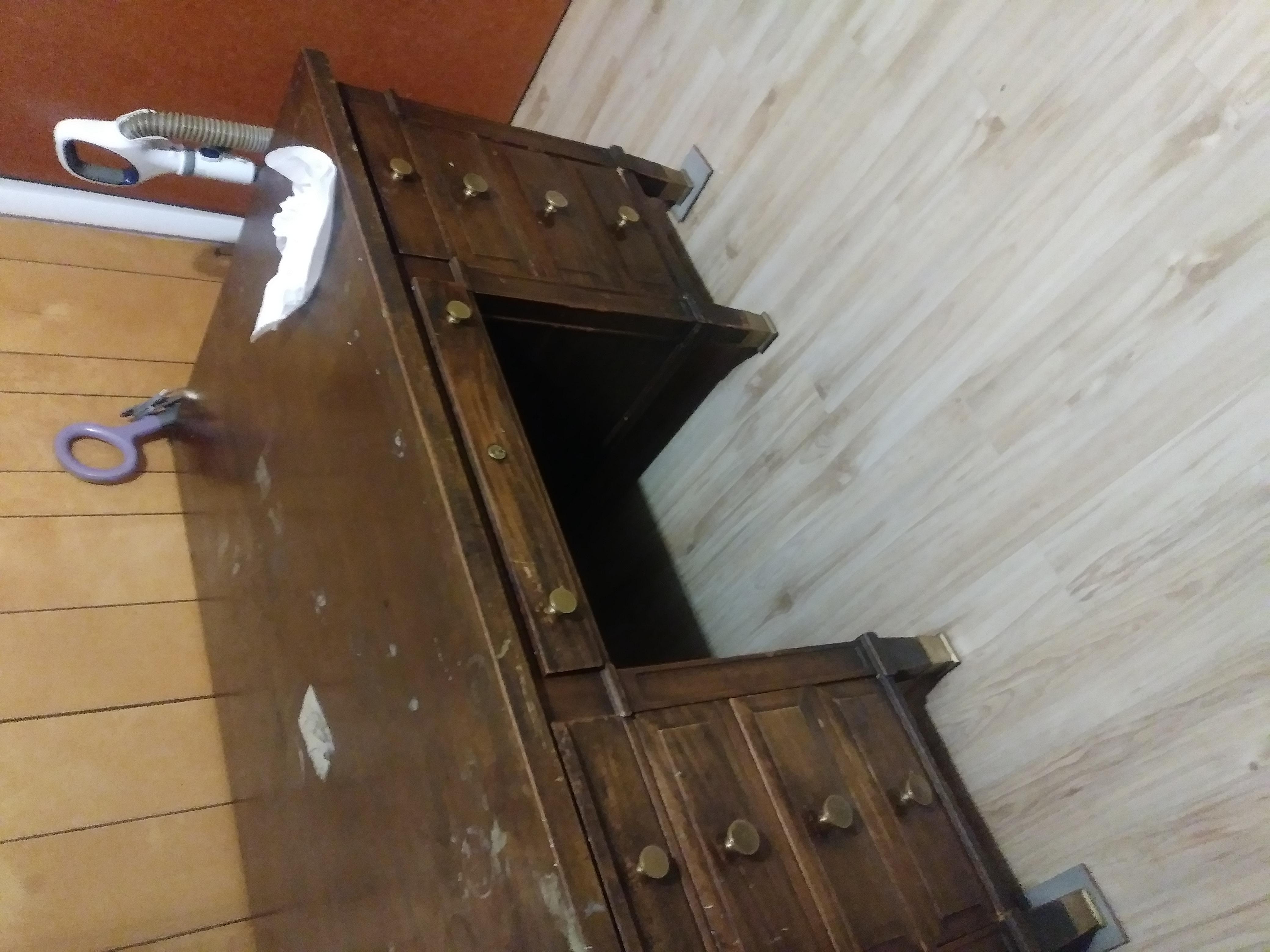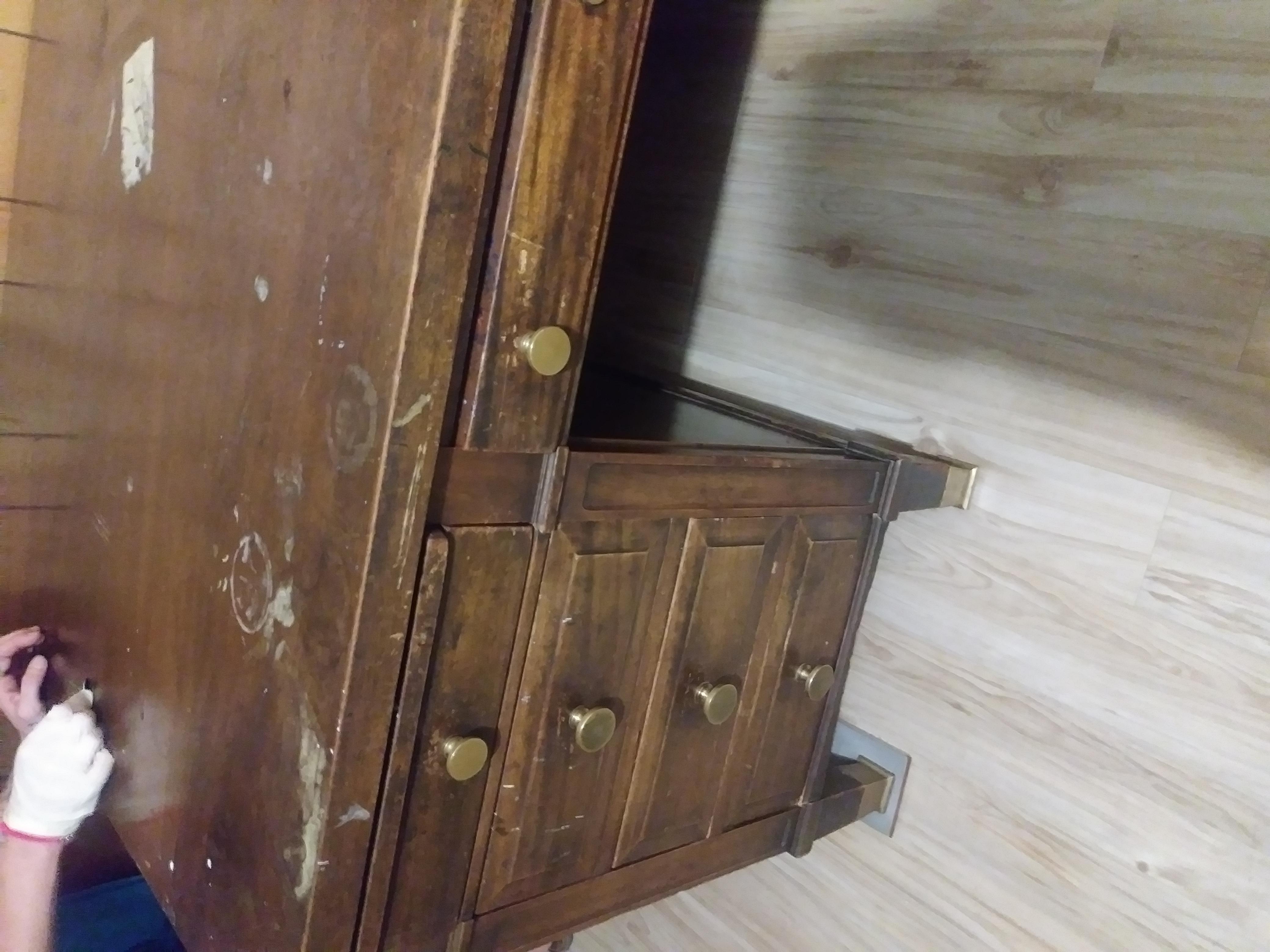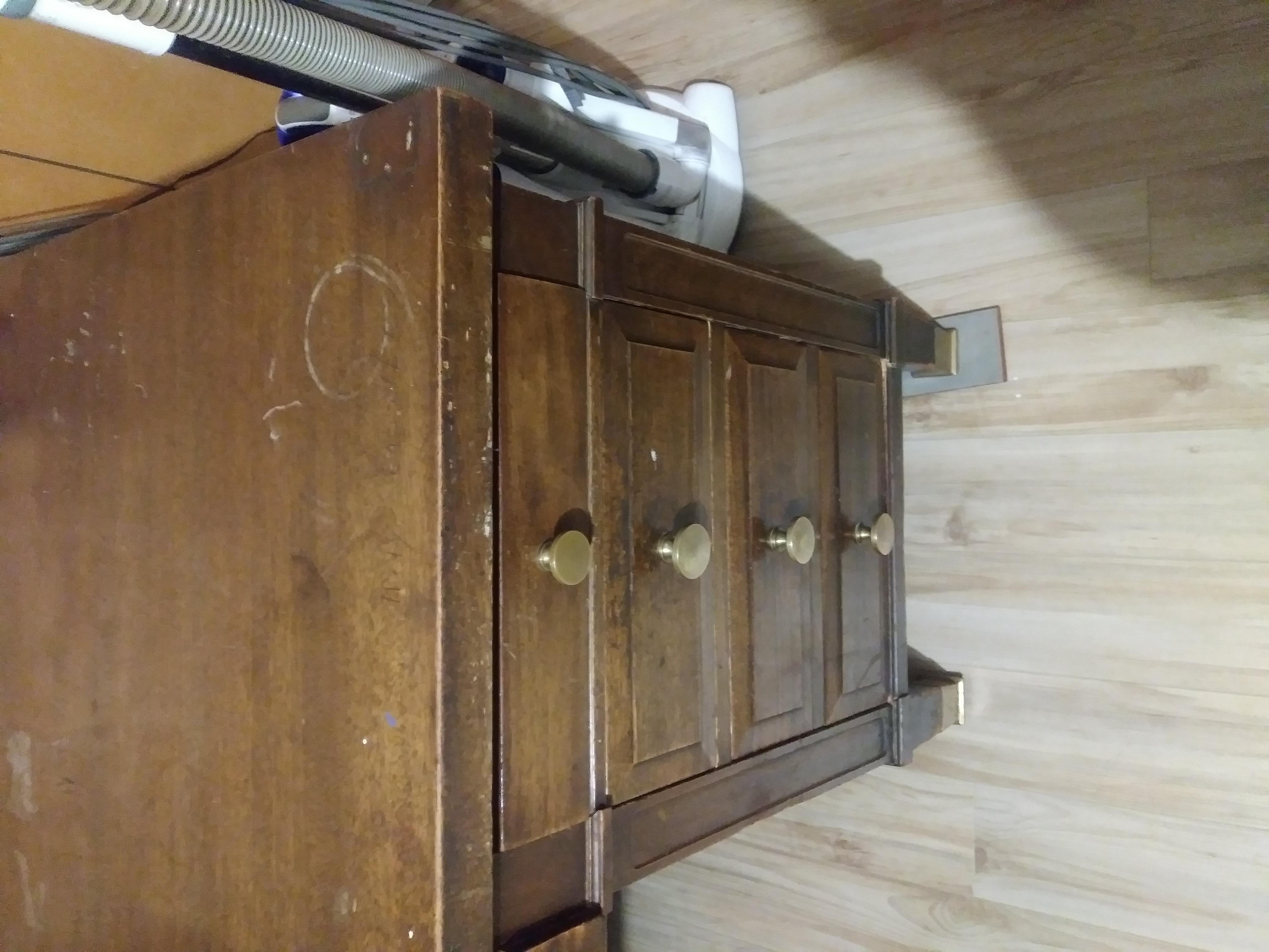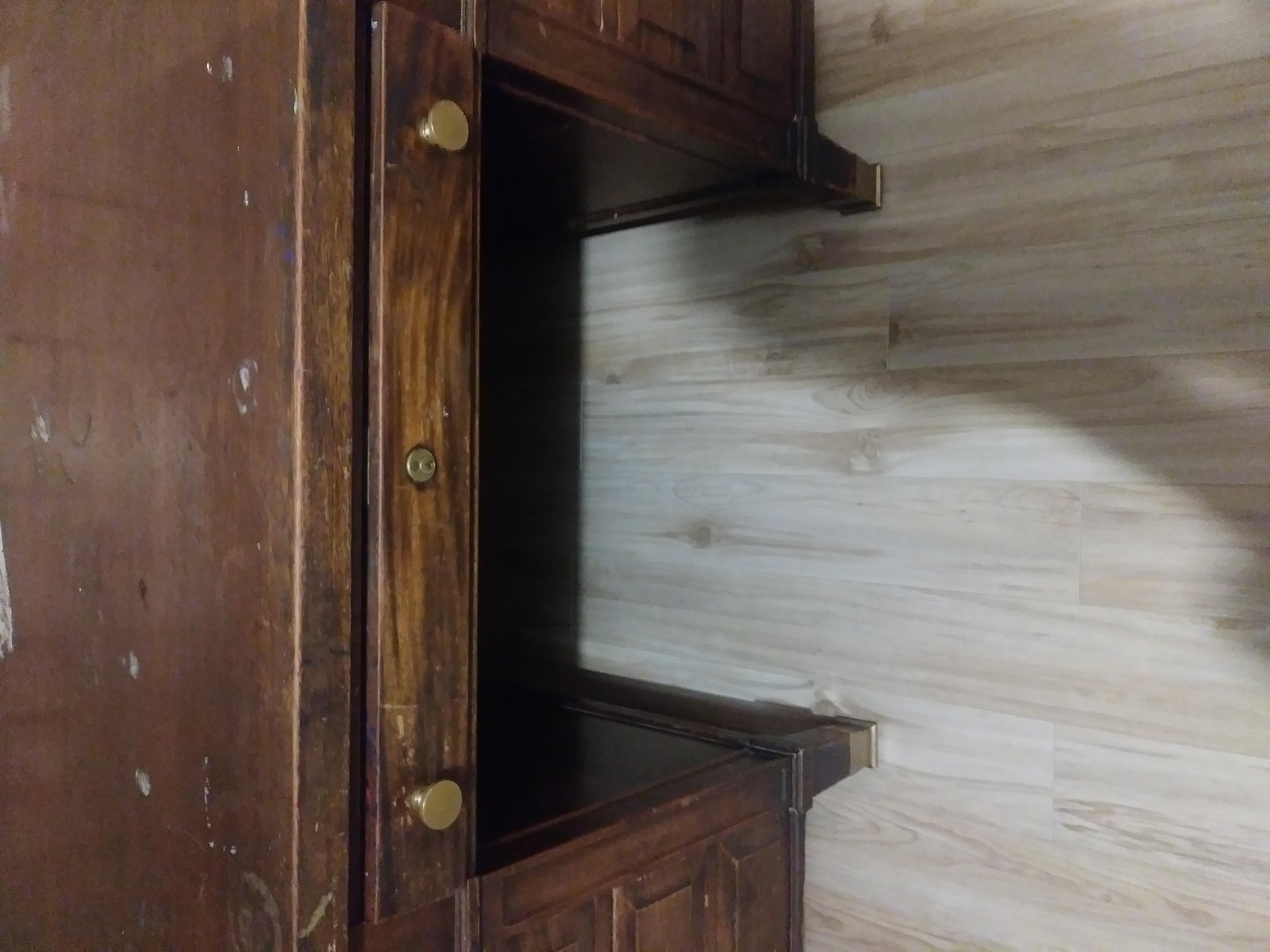 I have an antique stow davis executive desk. It is either solid walnut or mahogany. The knobs are solid brass. There is brass around each leg. There are 4 drawers on the left side and 3 on the right side. The bottom drawer on the right is file size and includes a wood apparatus for holding files. If the drawers on the left side are shut in a specific sequence, all the drawers will lock. I do not have the key for the middle drawer. The desk needs sanded and refinished. I am interested in selling as is. It is 30 in tall, 69 in wide and 38 in deep. It is extremely heavy but can be taken apart to move.