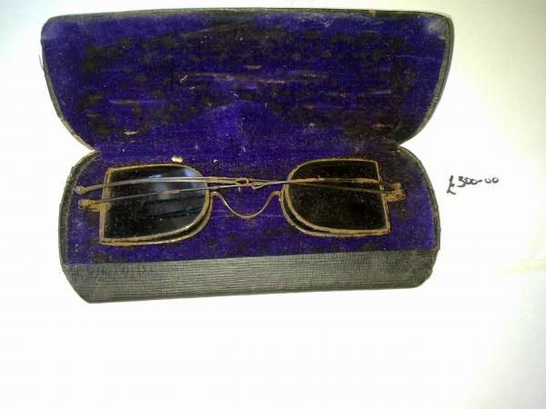 Complete with original box and also has the usual greyish blue victorian glass. has two lenses for each eye one lens can be folded to the side to receieve more sunlight. Only one more pair on ebay going for around £500