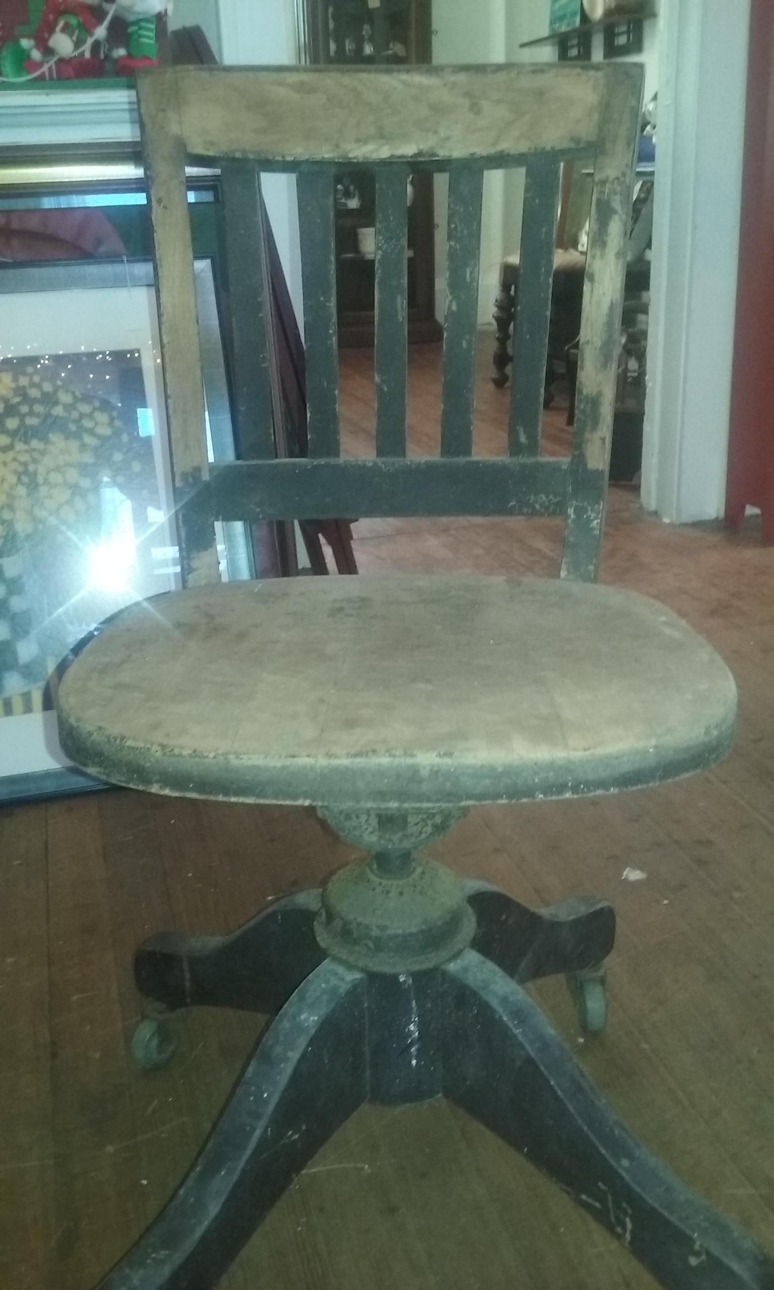 We are not sure about this piece, after a little reasearch we guess that its from the 1940's due to its structure. It is wodden swivel with metal bottom.