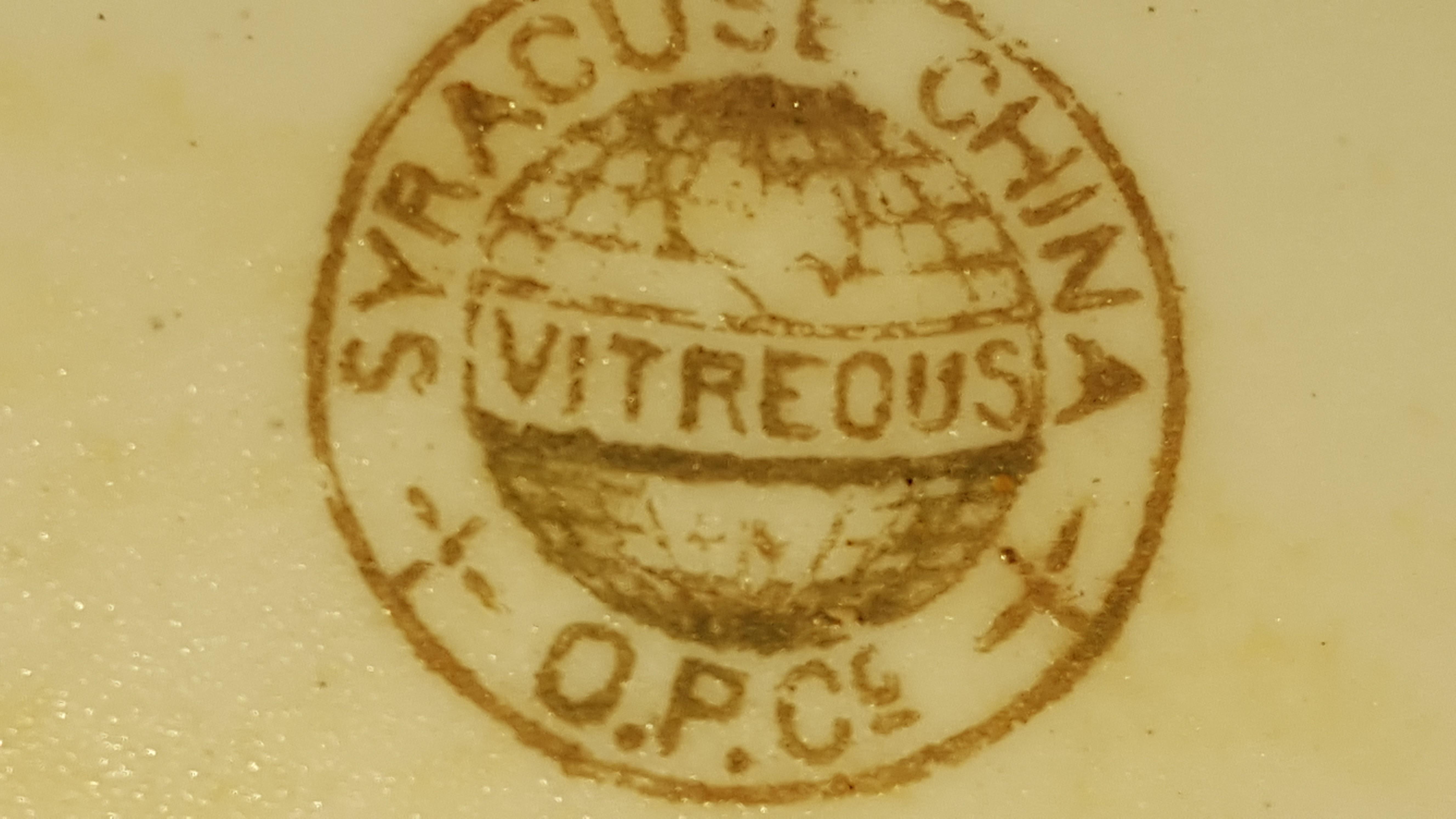 Syracuse OPco backstamp of globe rating 1895-1897. Signed by C. Bruce.