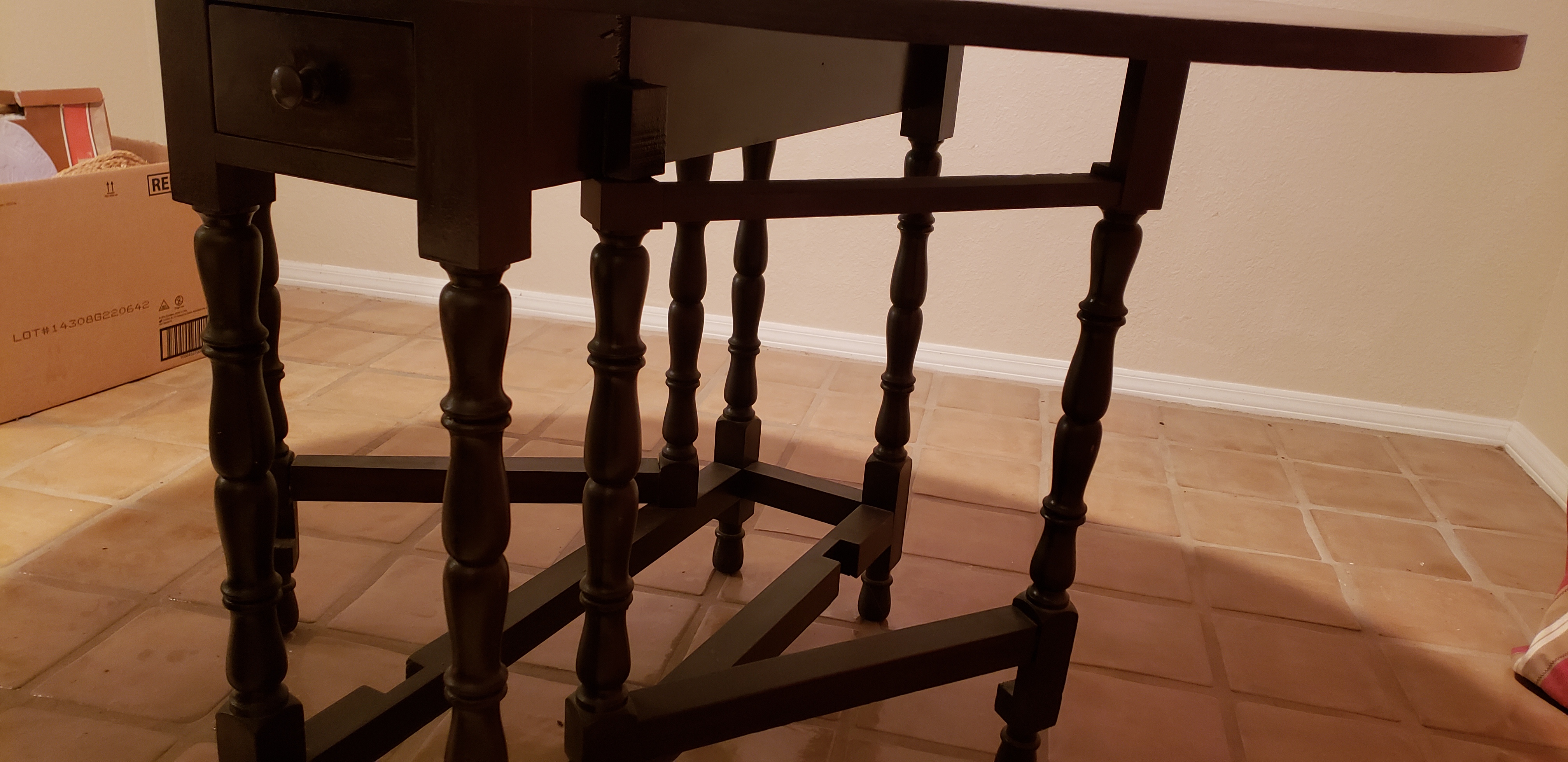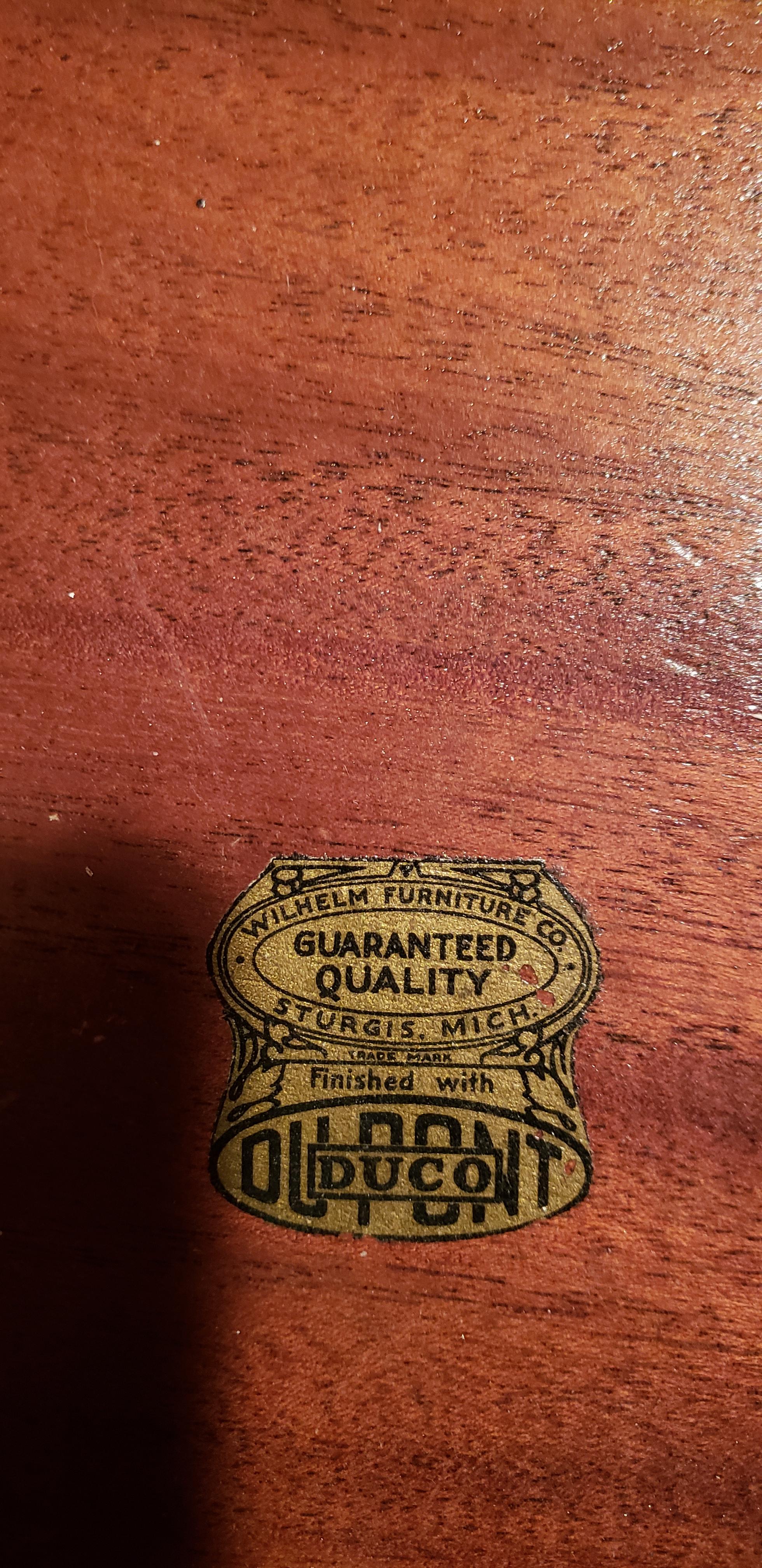 Wilhelm fold double side fold down table. Single drawer on 1 side Legs fold out after table top is lifted and assist in supporting table top. I am not sure of the date of the table. The only sticker is the wilhelm sticker inside the drawer.