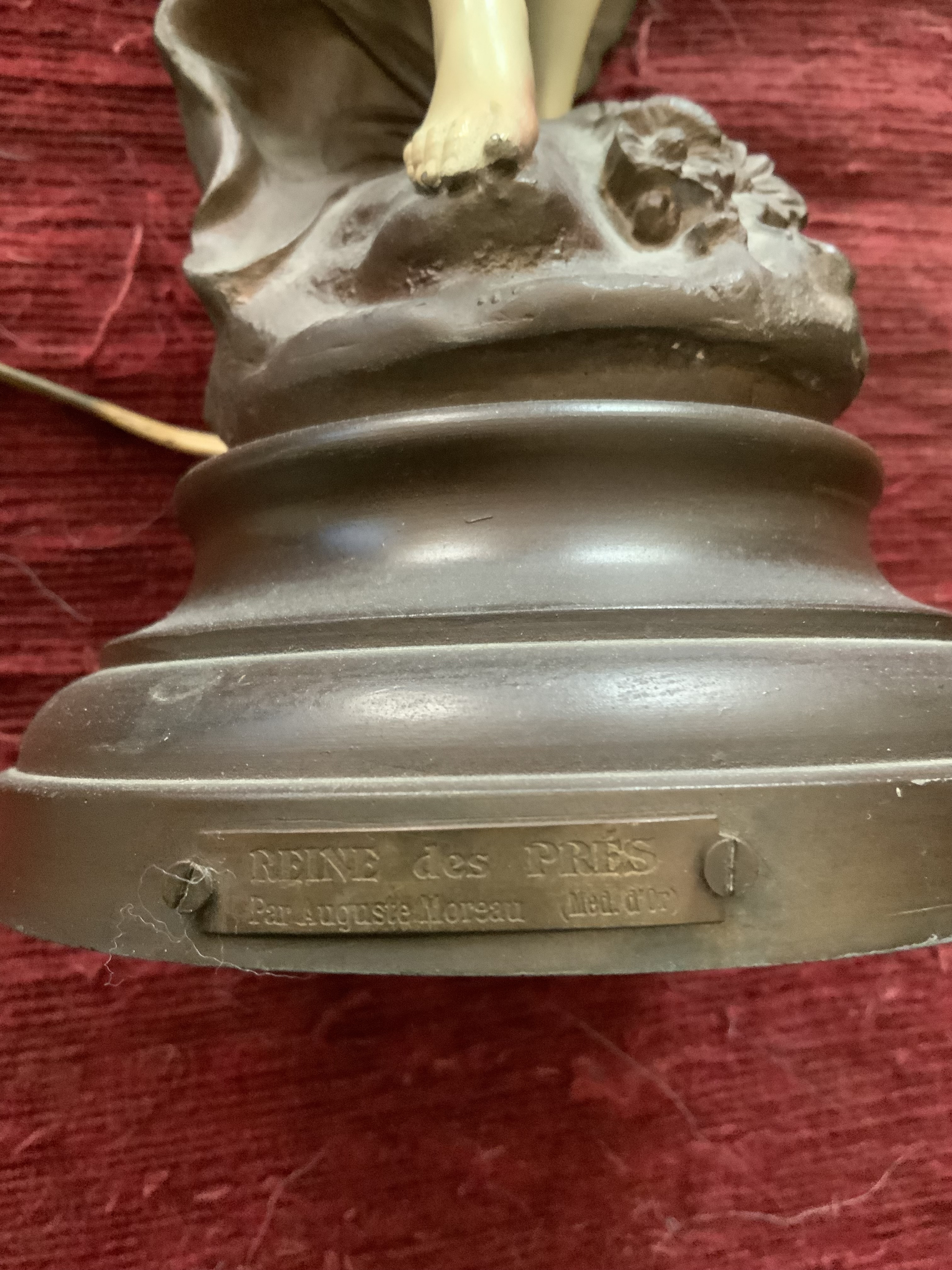 Consult a professional appraiser specializing in Art Nouveau or Auguste Moreau's works to confirm whether the lamp is a licensed reproduction or an original piece.