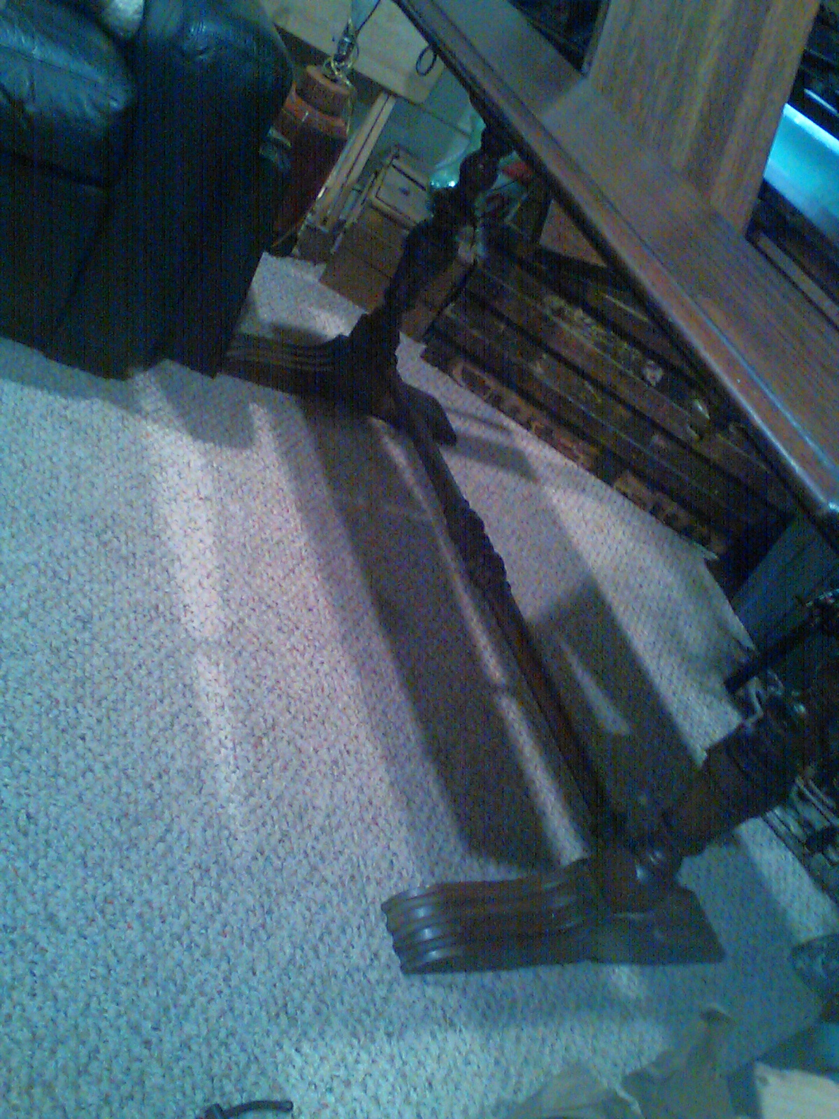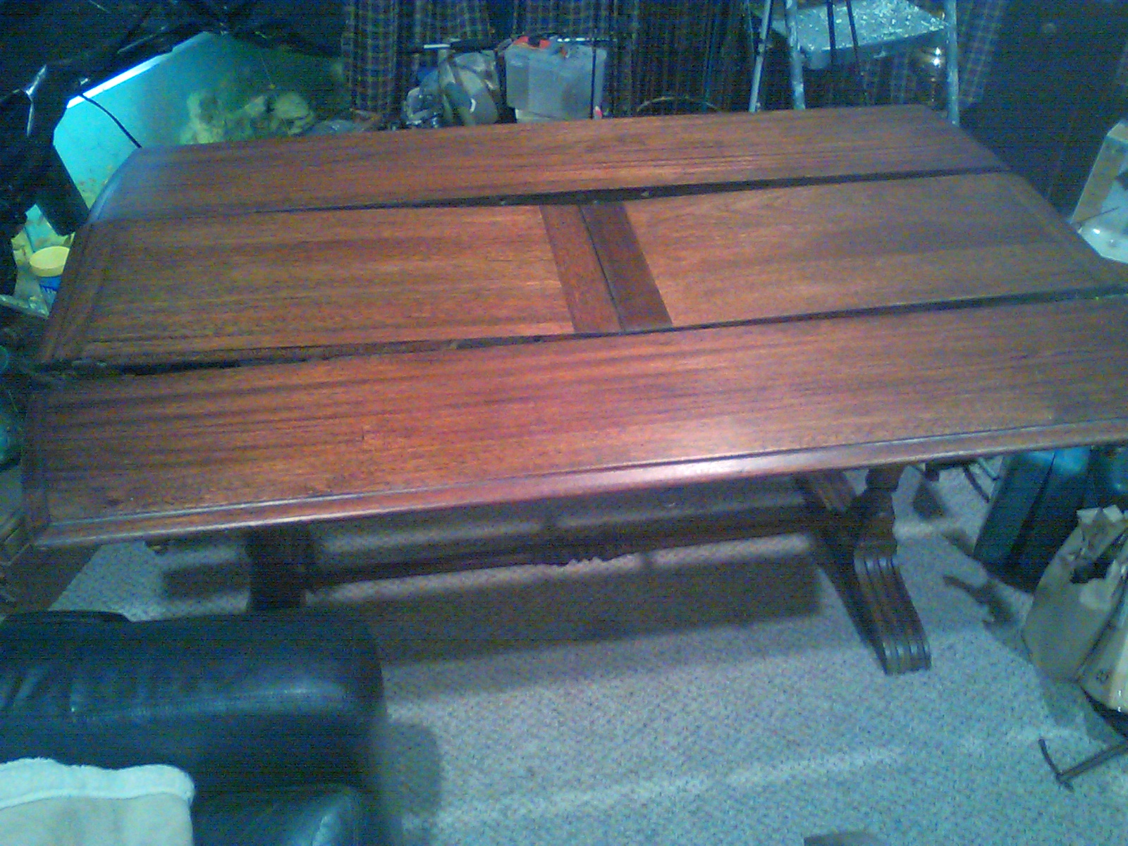 Angelus furniture mfg co two leg table with self folding leaf five ft long twenty two inch wide - thirty four with leaf leaf runs length of table