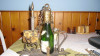 Antique Tantalus.  Two cut glass or crystal bottles with silver stoppers. Would love to know what the value might be. The stoppers are engraved with family initials and marked Sterling 925