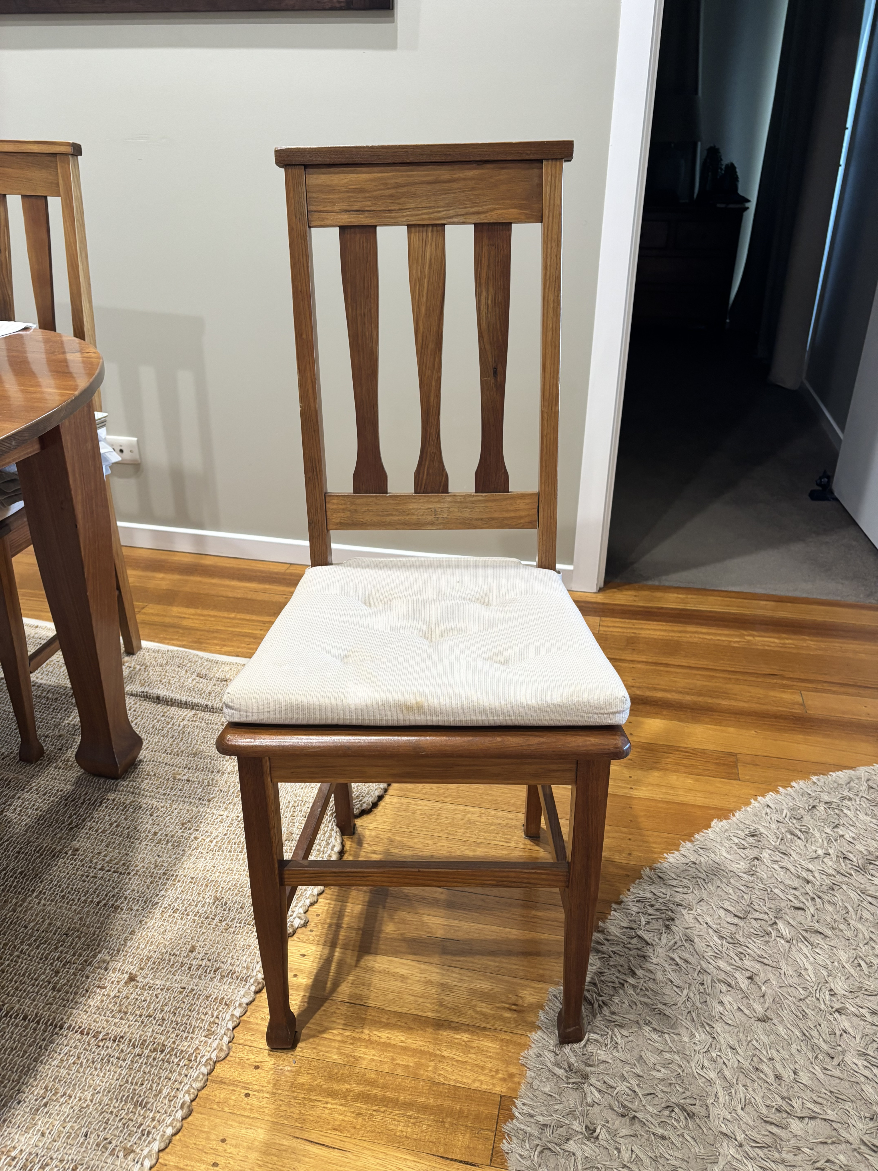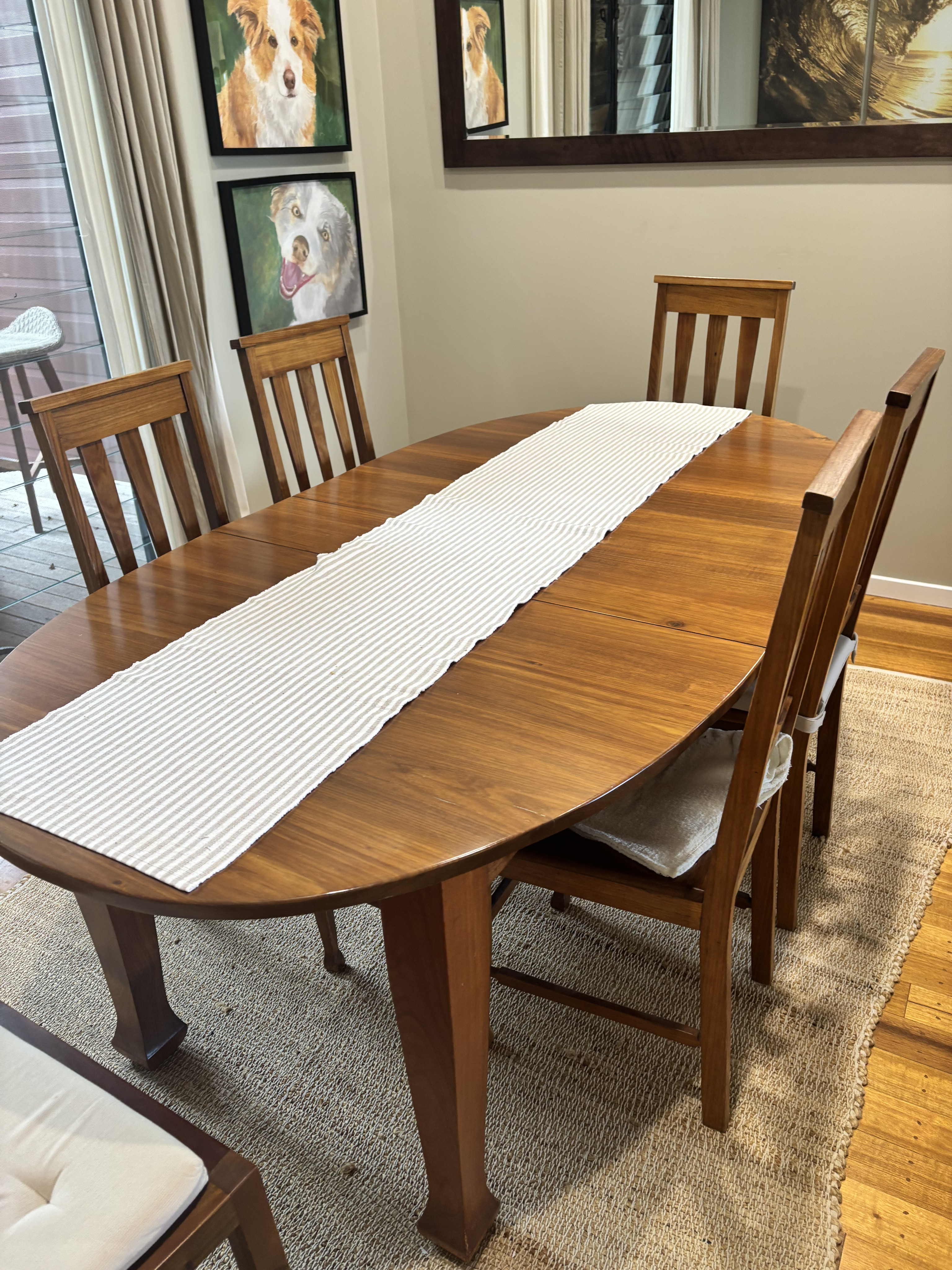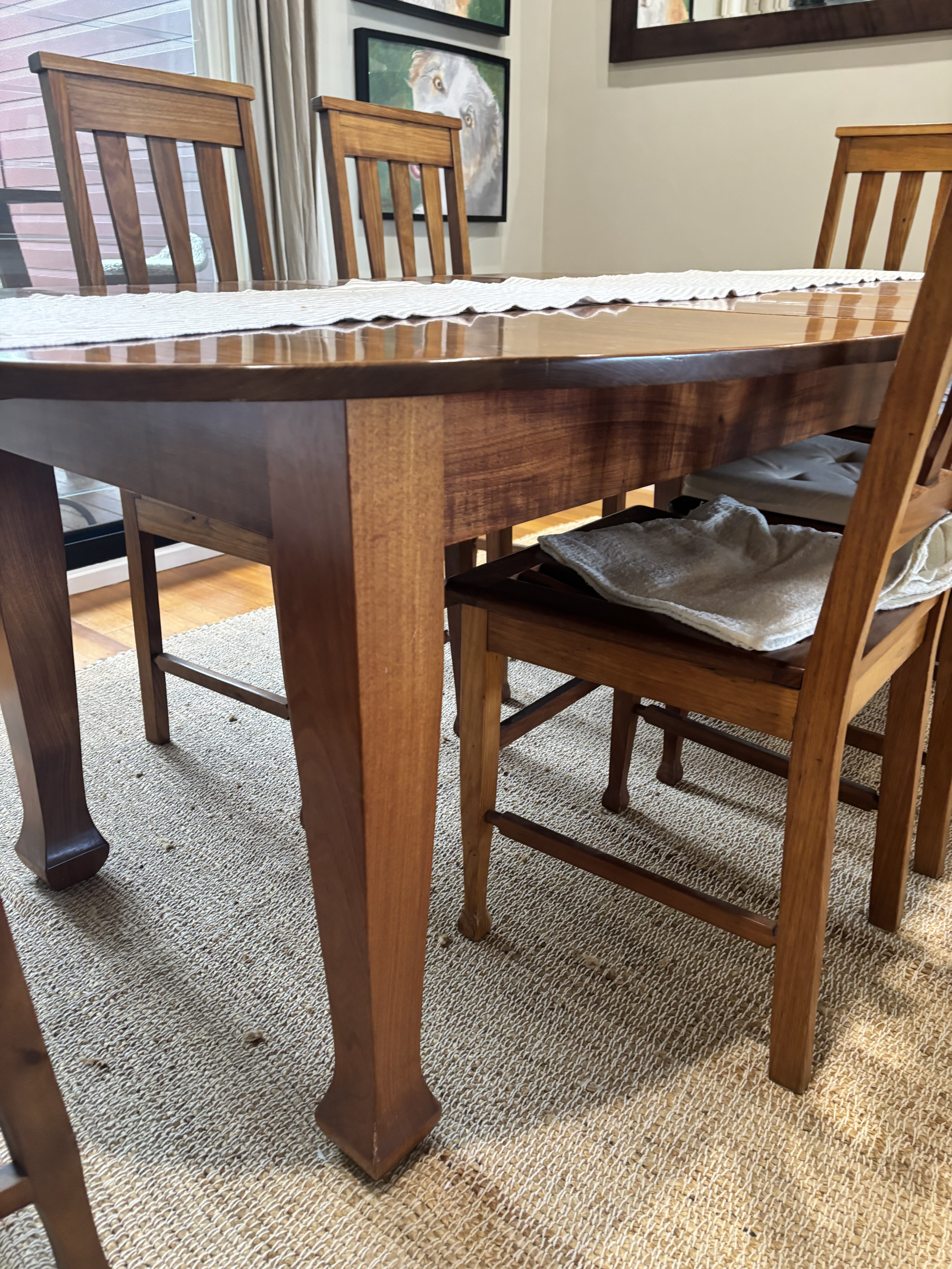 Antique tasmanian blackwood 1940 sining table and 5 chairs. Fully restored.