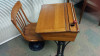 I have an antique double wide school desk made by Thos Kane with pat no of Sept 24, 1895. It is in excellent condition. It is labeled "Victor" and number "3". The seat folds down in the front but the table on the back is locked - needs key.