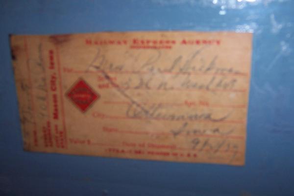I got it from an estate sale, from a women whos parents passed. has a railroad tag on it from 1939, it was delivered to Ottowa, Iowa
