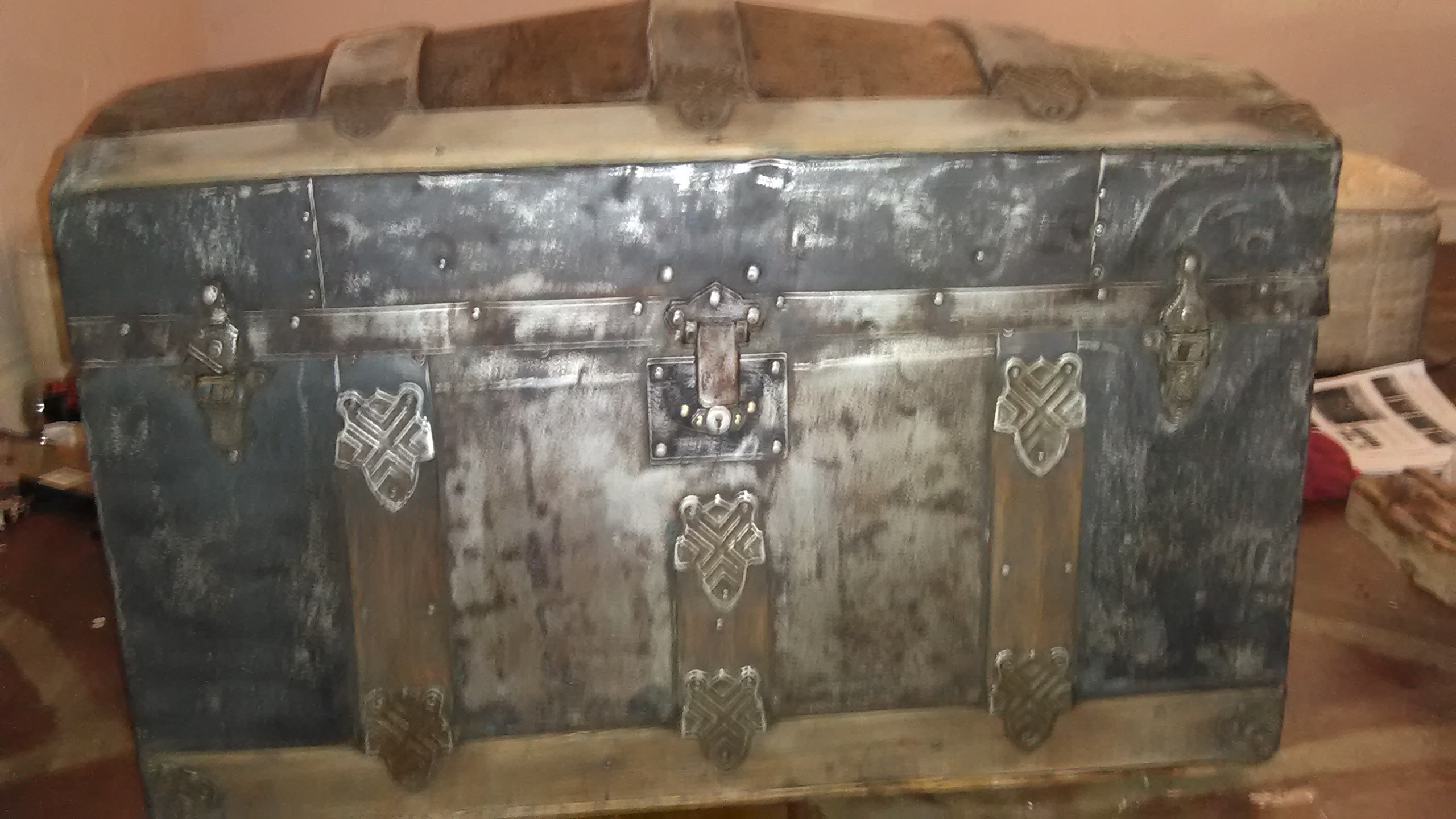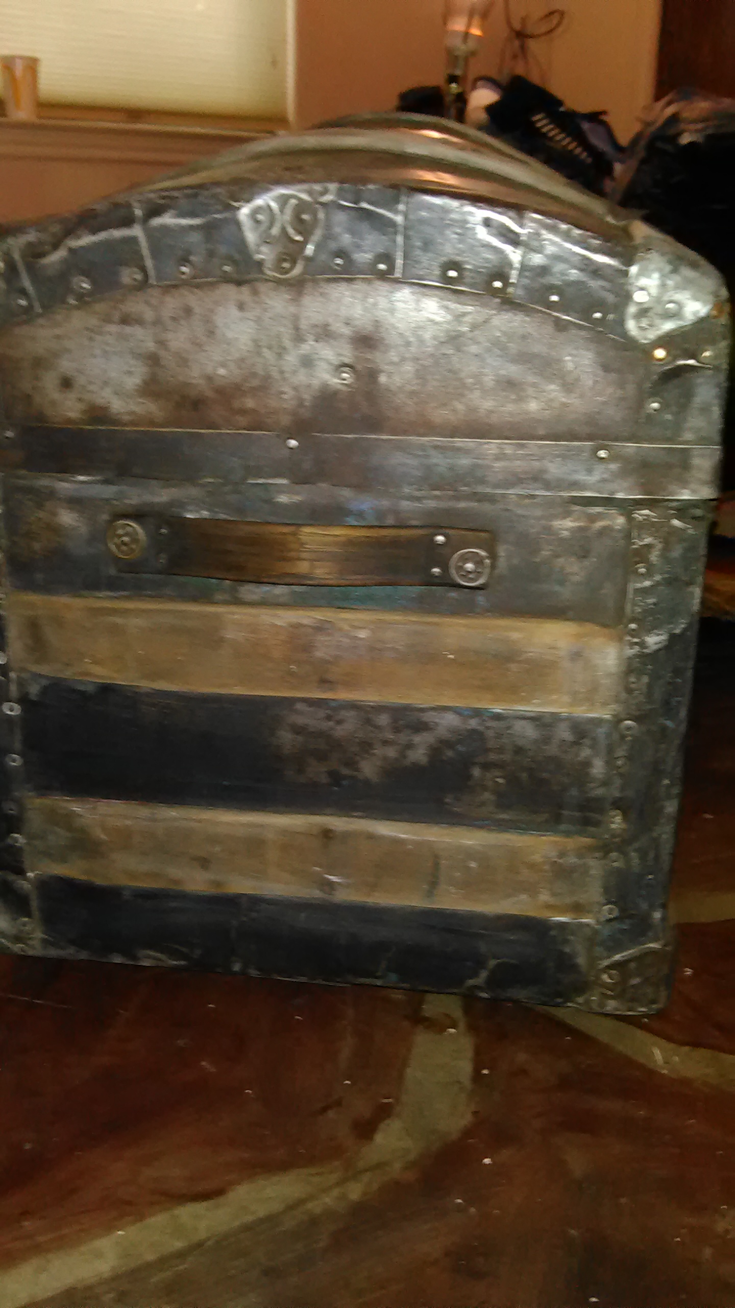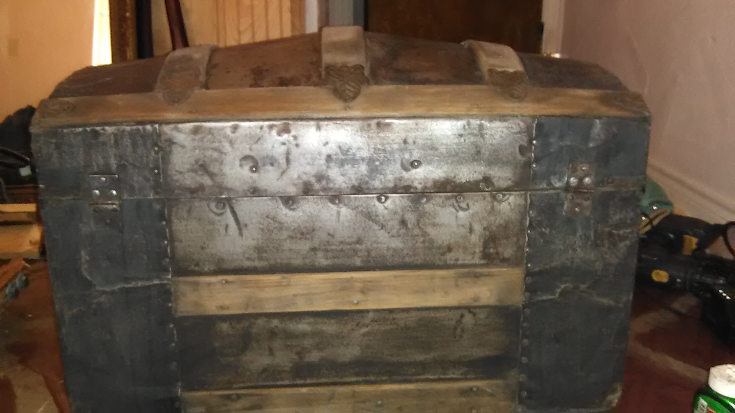 I have an antique trunk I have no information on and it has been hard to find anything. 28" long and 21" at the center dome part height and width is 16" . It has also yellow material of some sort it is lined with. It also has all four of its wheels that are original on the bottom .If anyone could assist that would be wonderful.