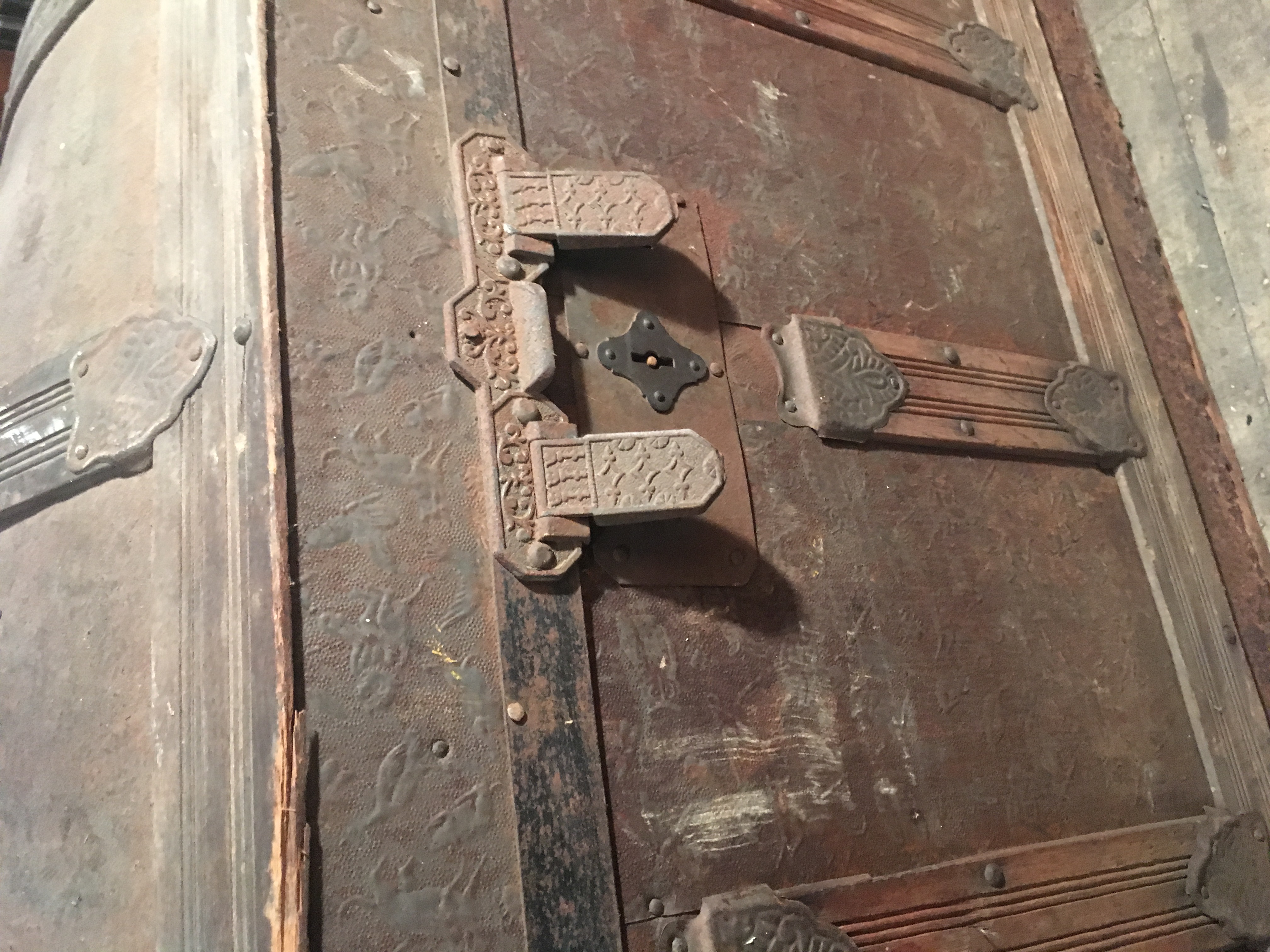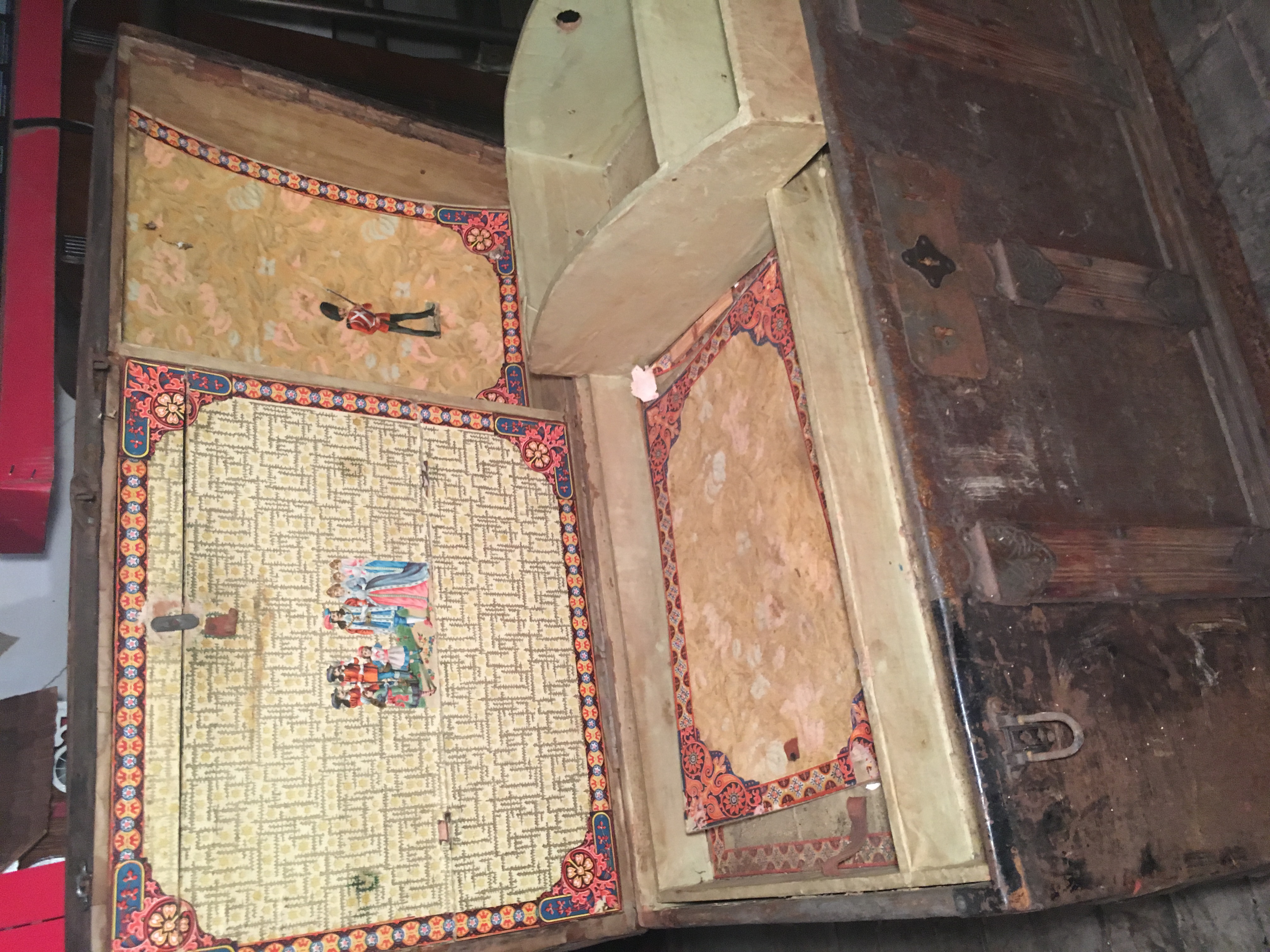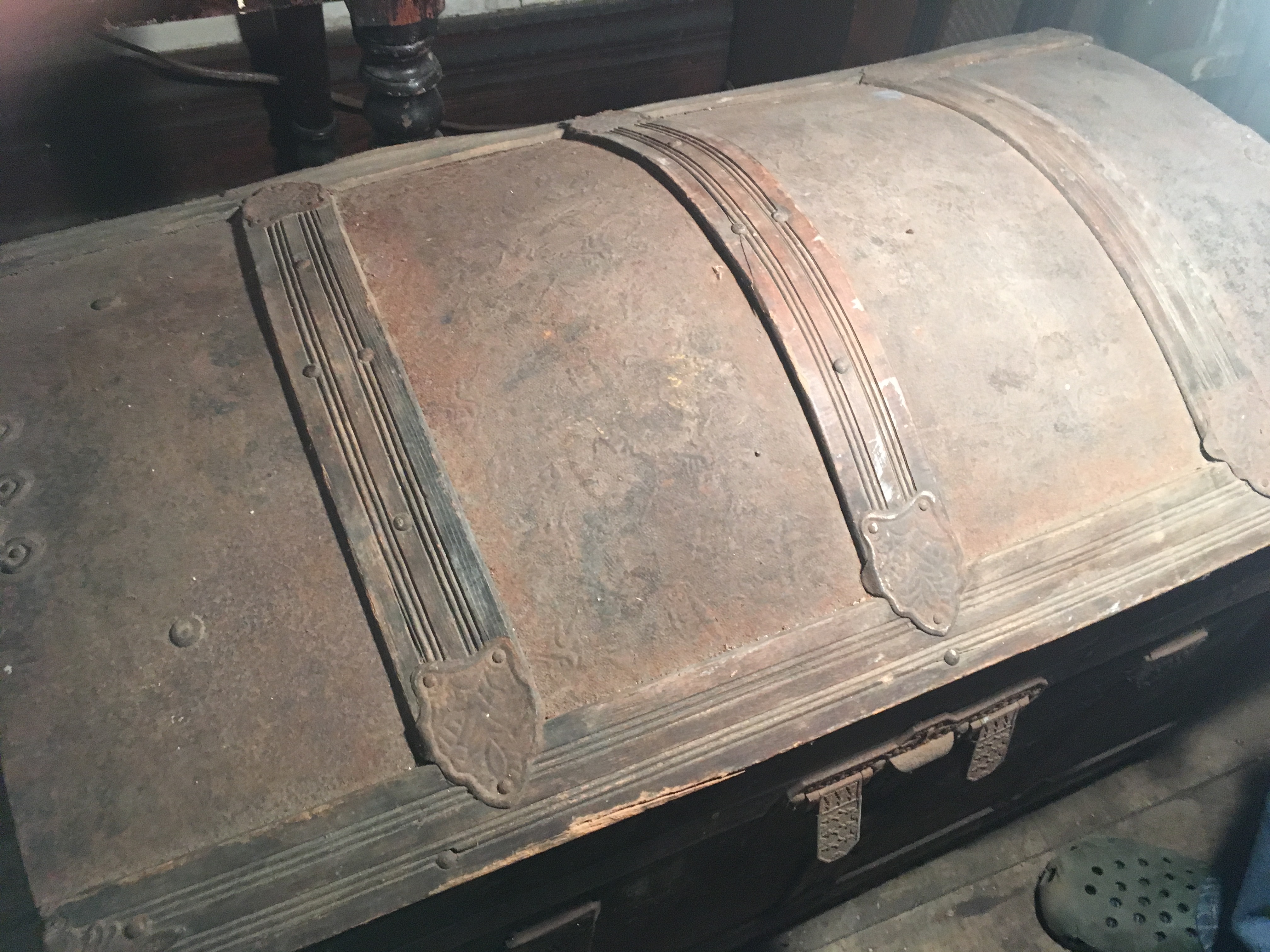 Very old (late 19th century?) presses tin filigree some top antique trunk witj