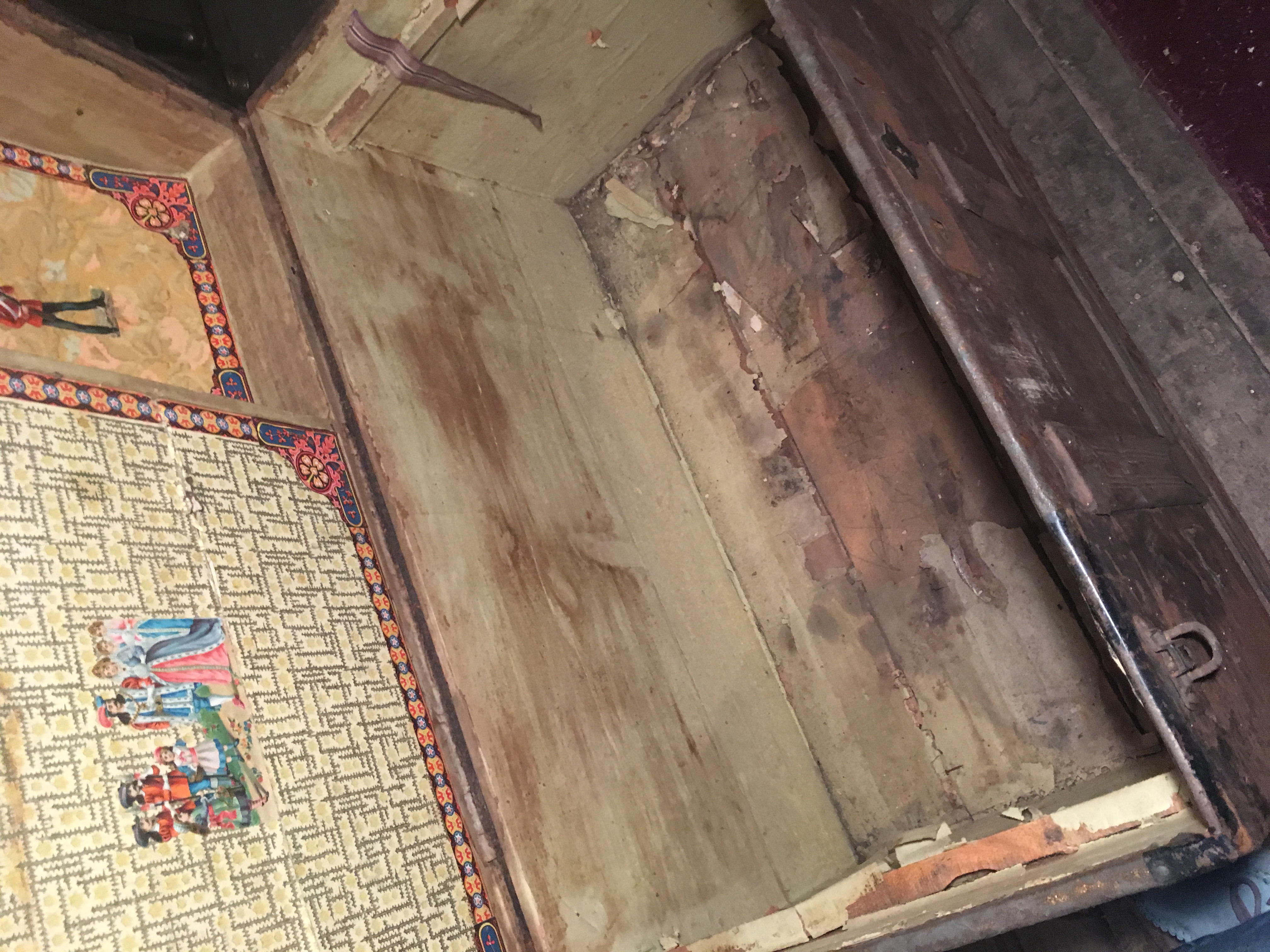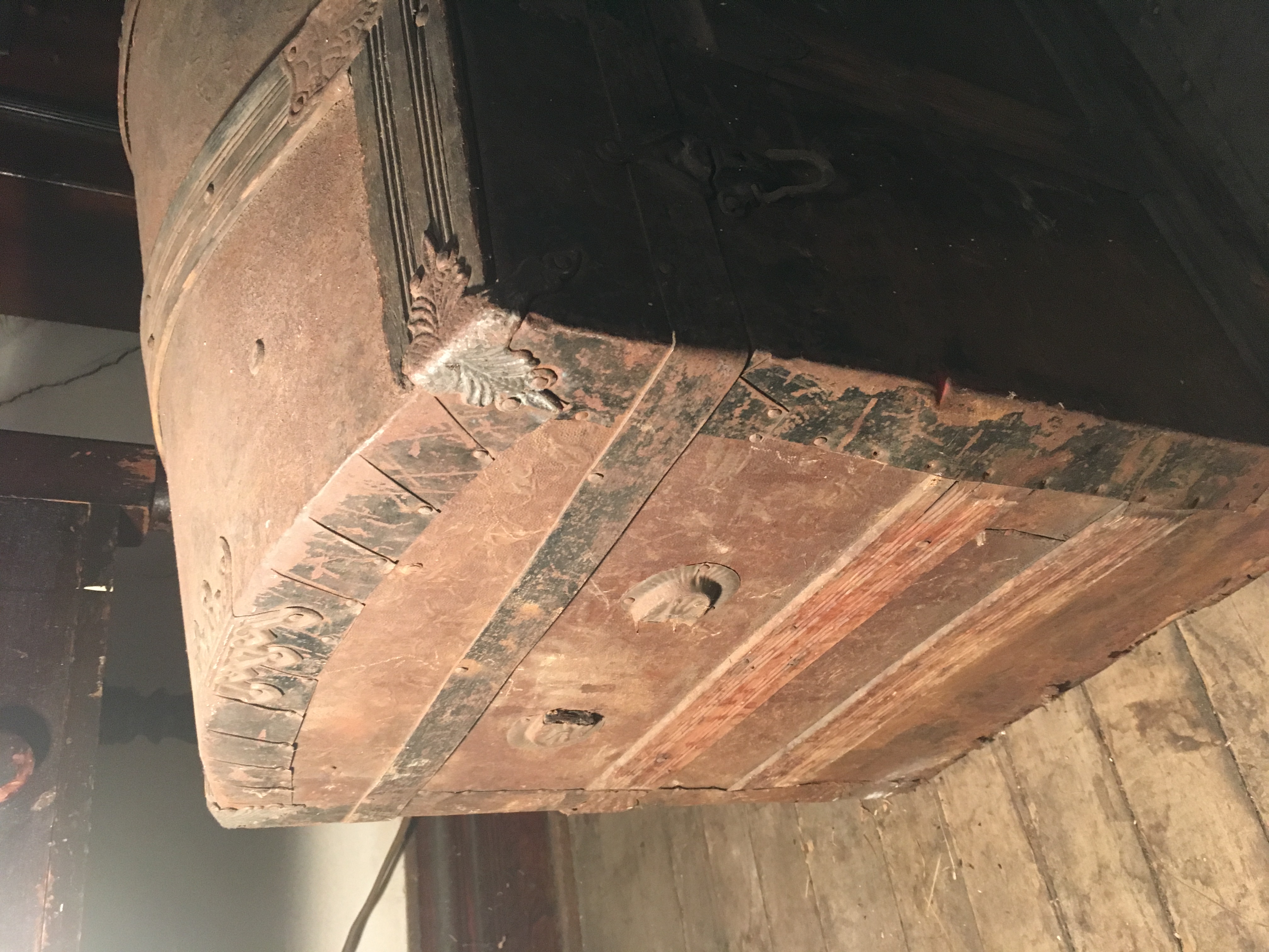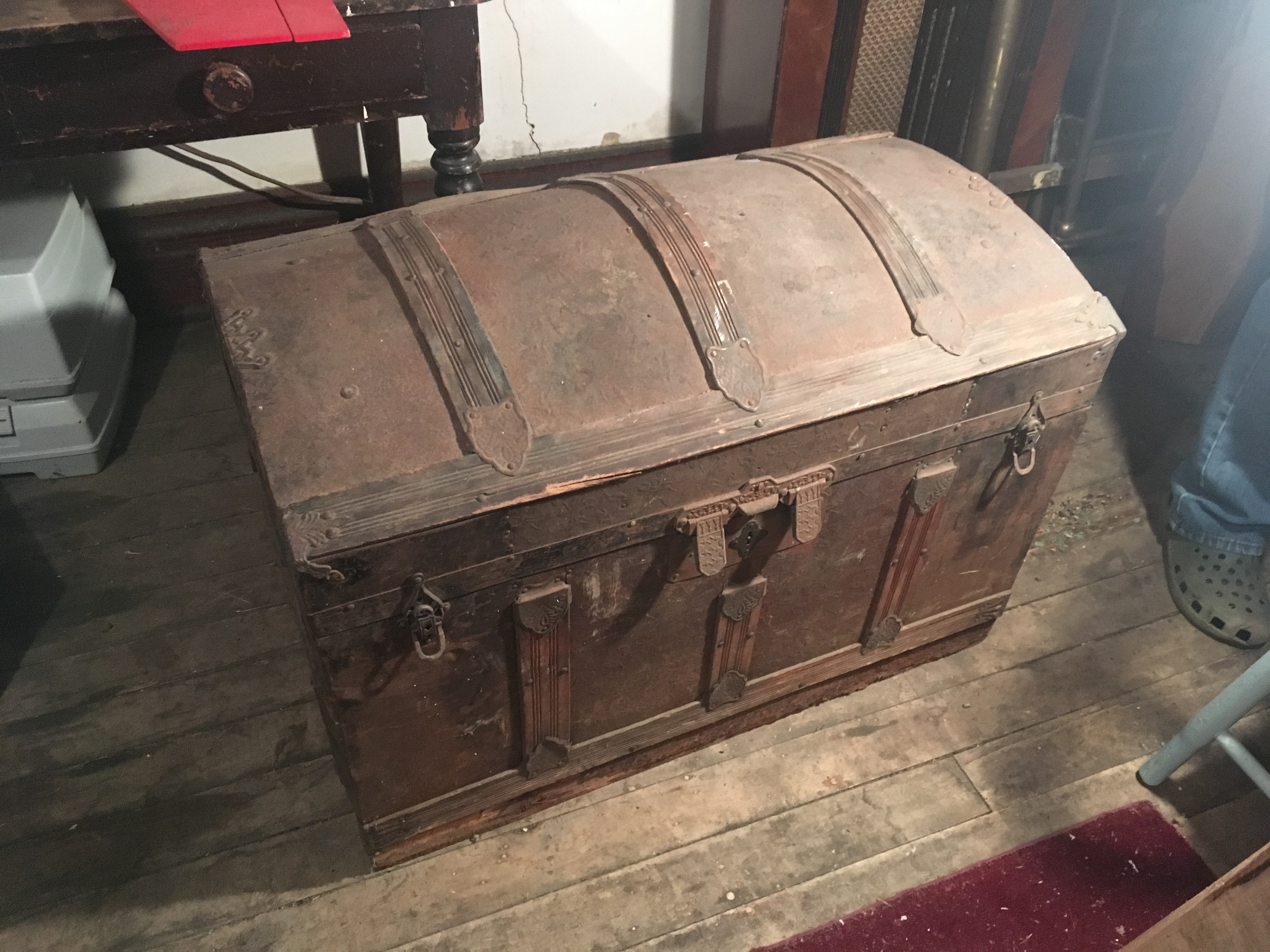 Very old (late 19th century?) presses tin filigree some top antique trunk witj