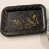 Green trunk with black metal accents. Here are 2 trays with this trunk. It is very old. The only thing missing is a flap to a cubby in the lid and one handle.
