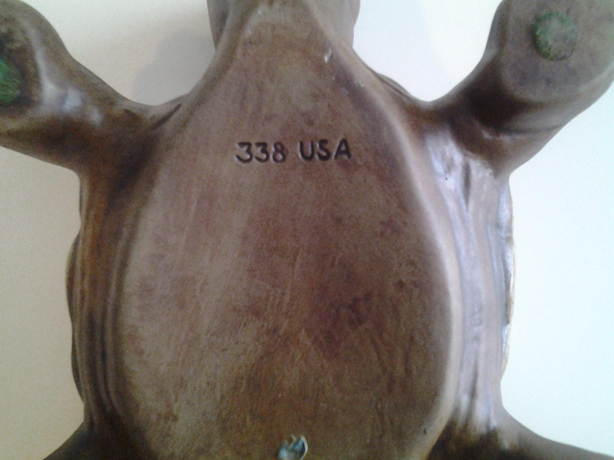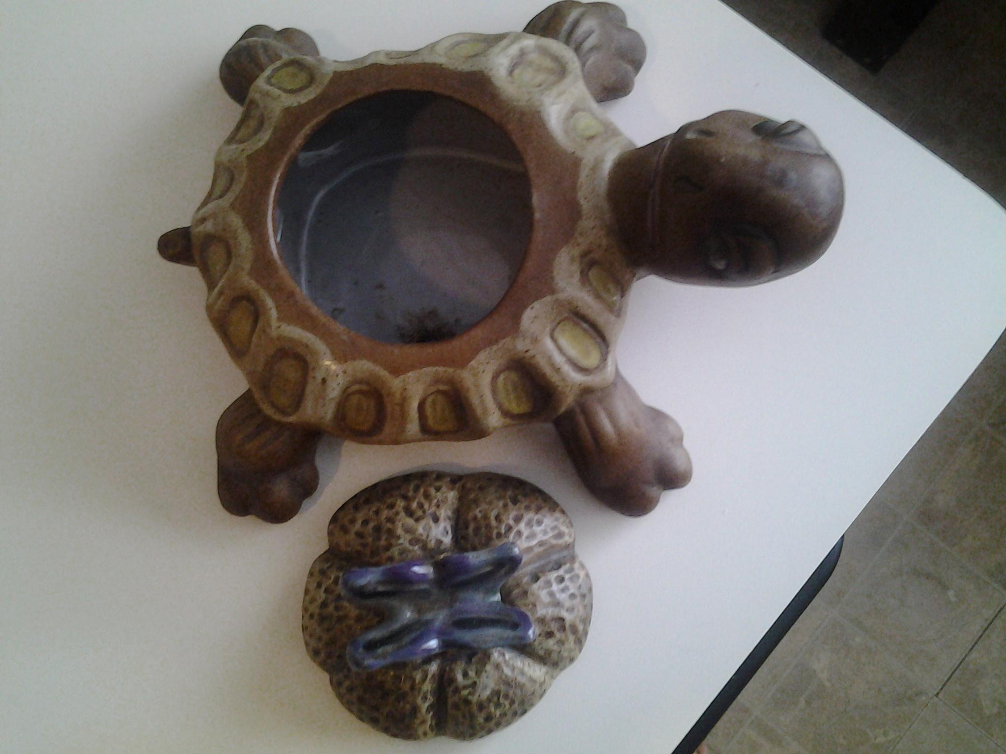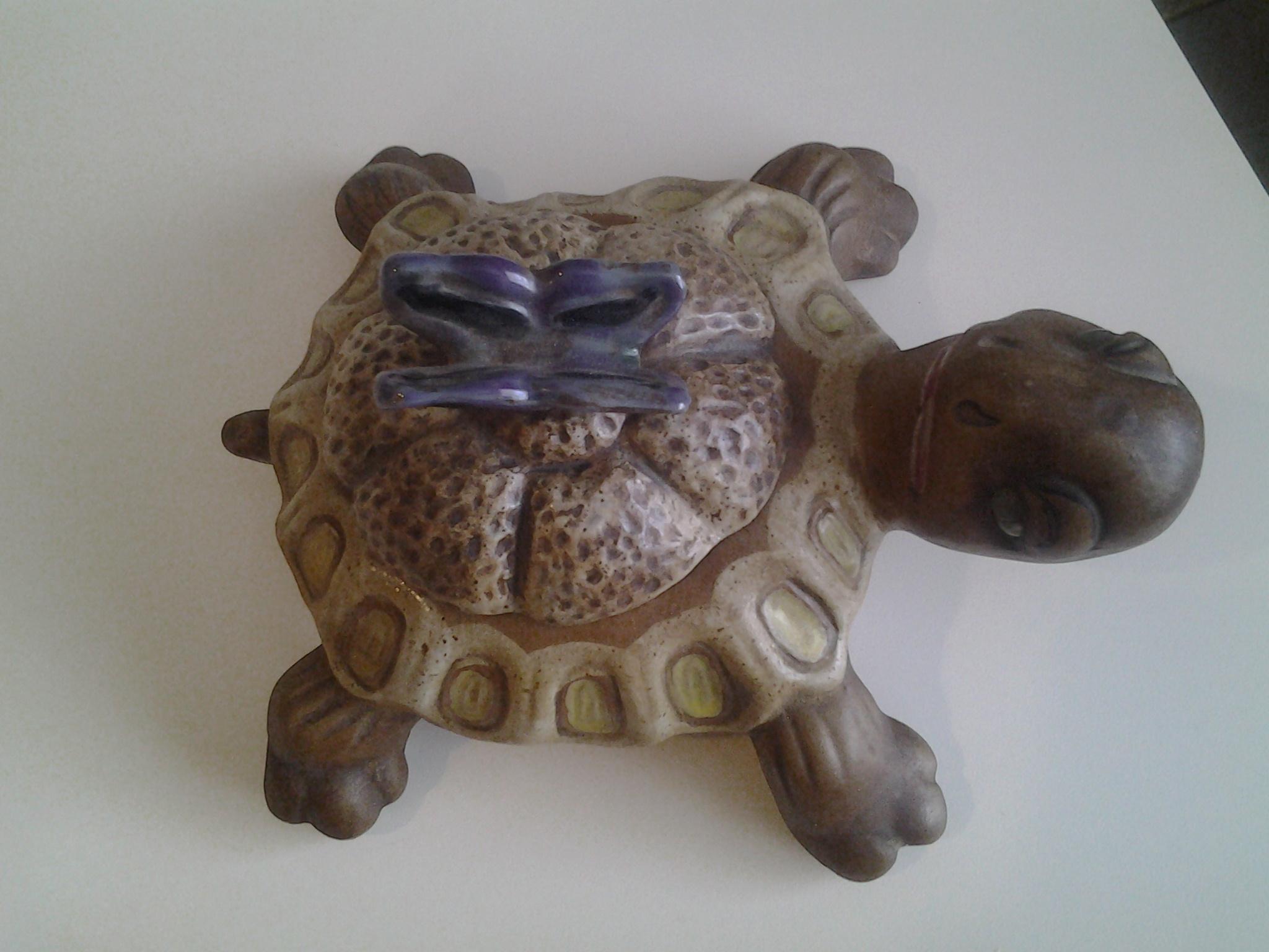 Antique turtle pipe/tobacco holder with his head uside down and the lid has a butterfly for a pipe and is used as the handle. 338 USA on bottom of turtle.