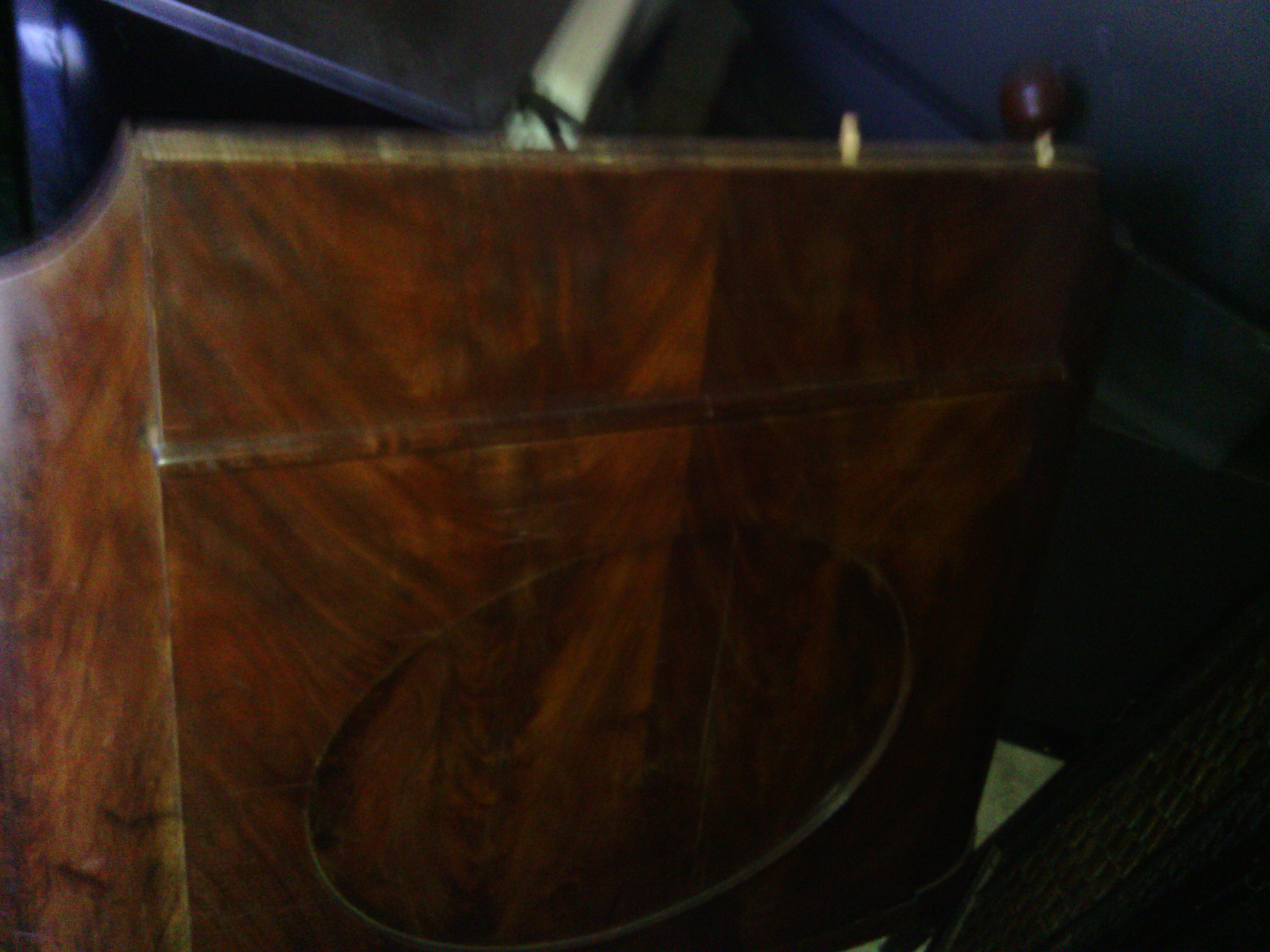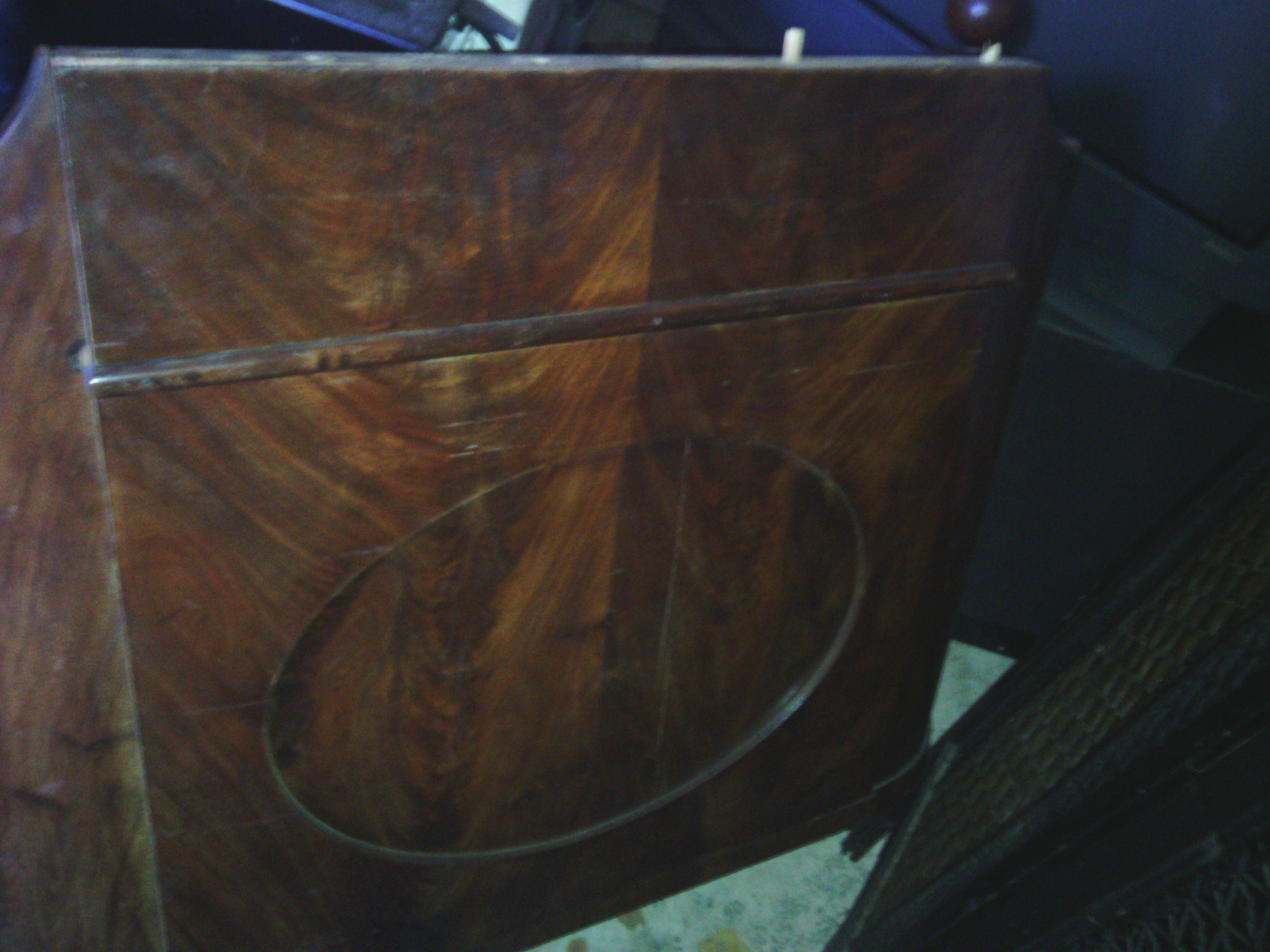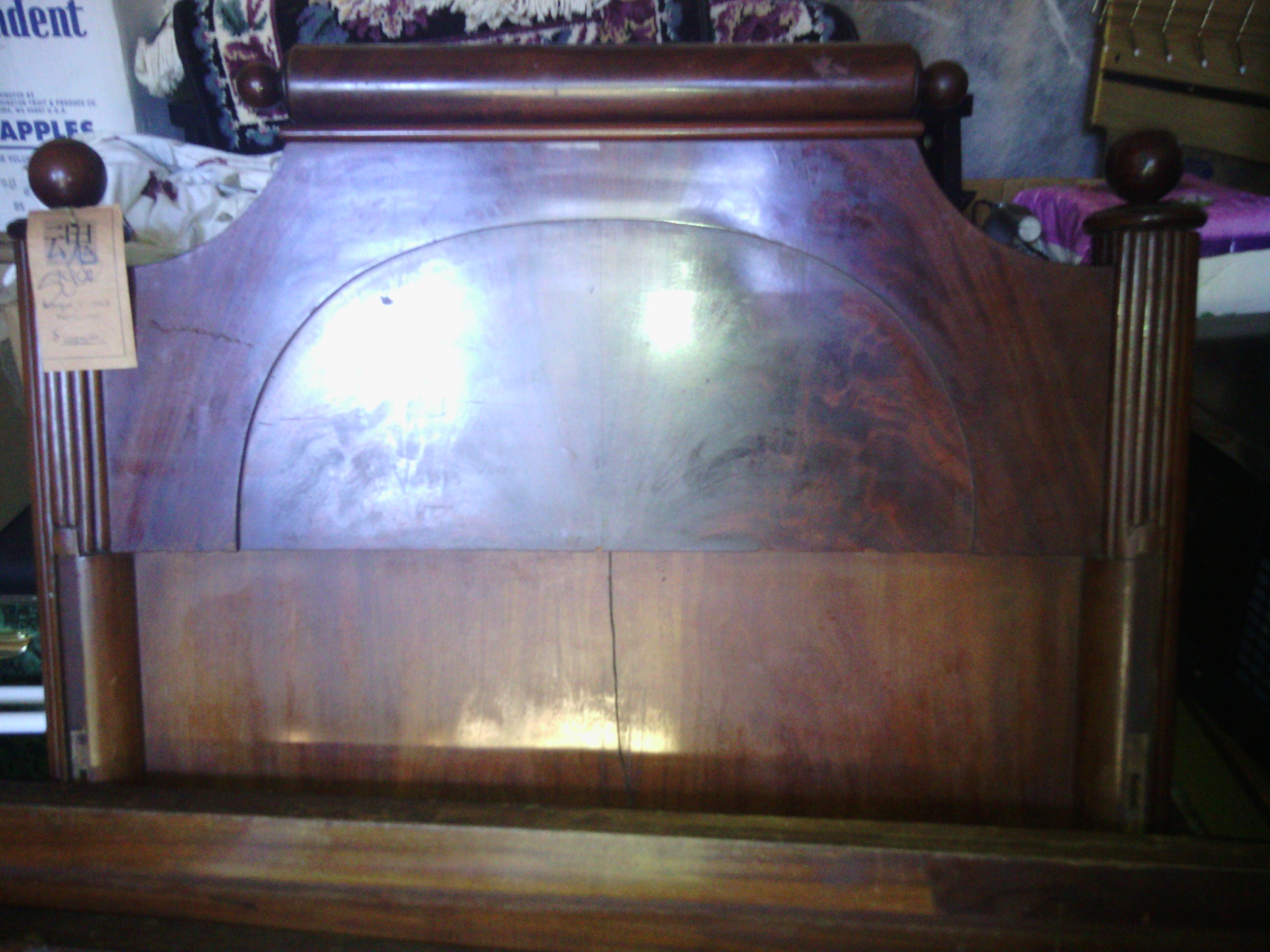 antique wood bed, curved foot board, called a bucket bed. also has side boards and bottom board for mattress....