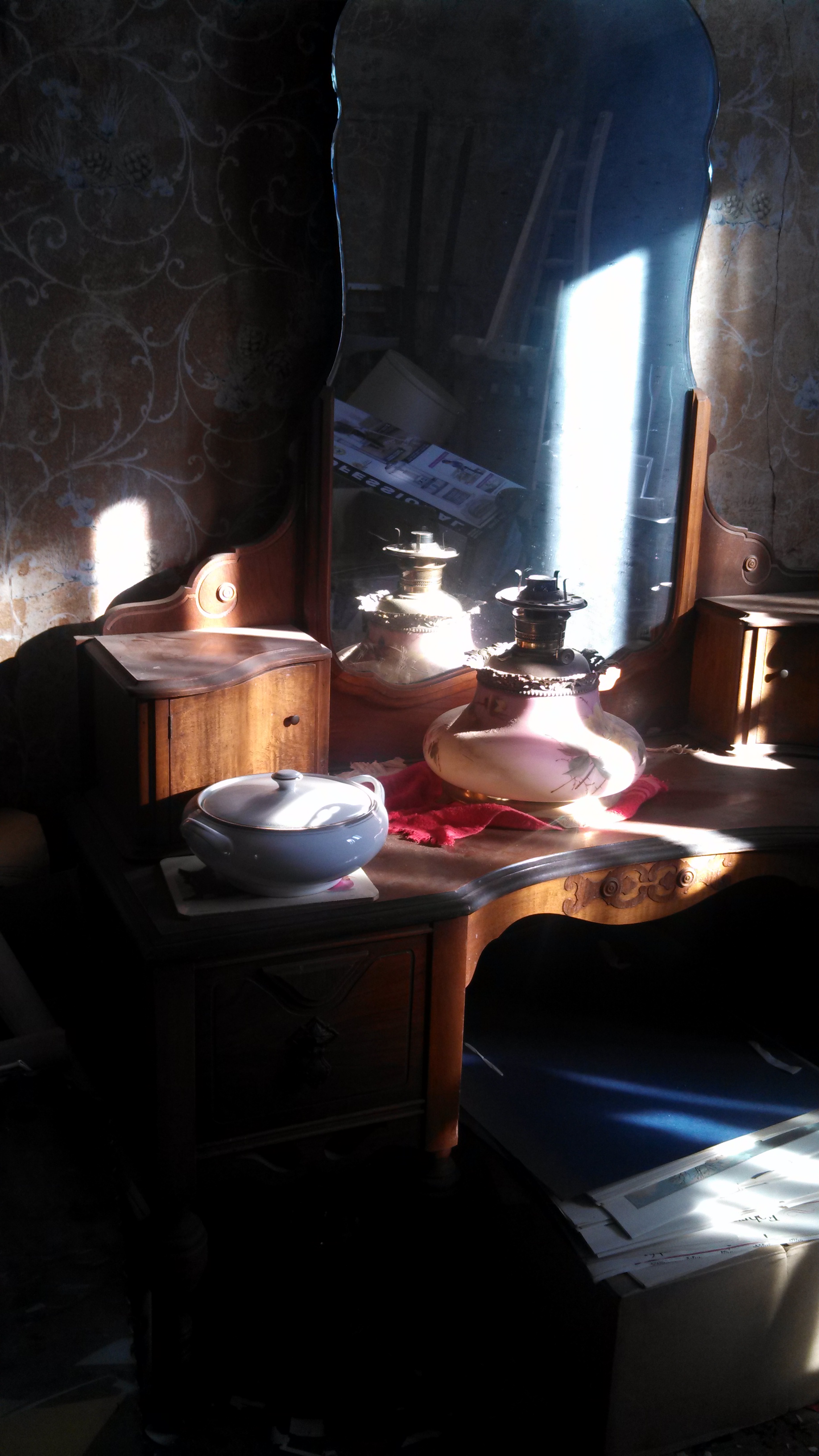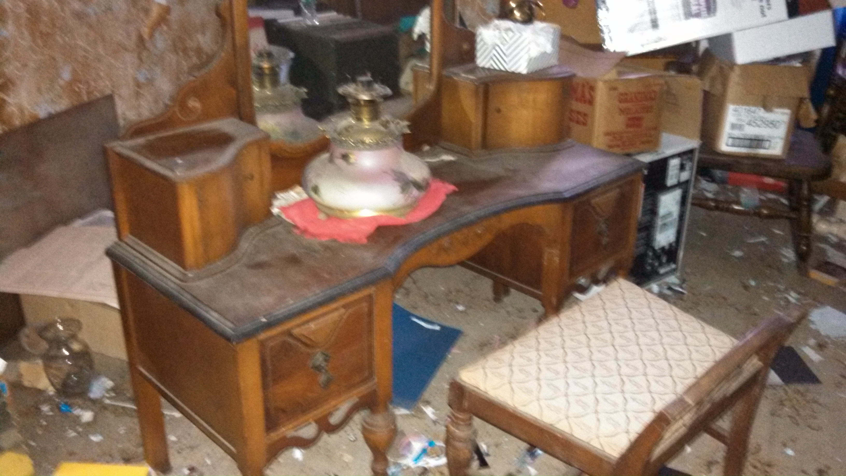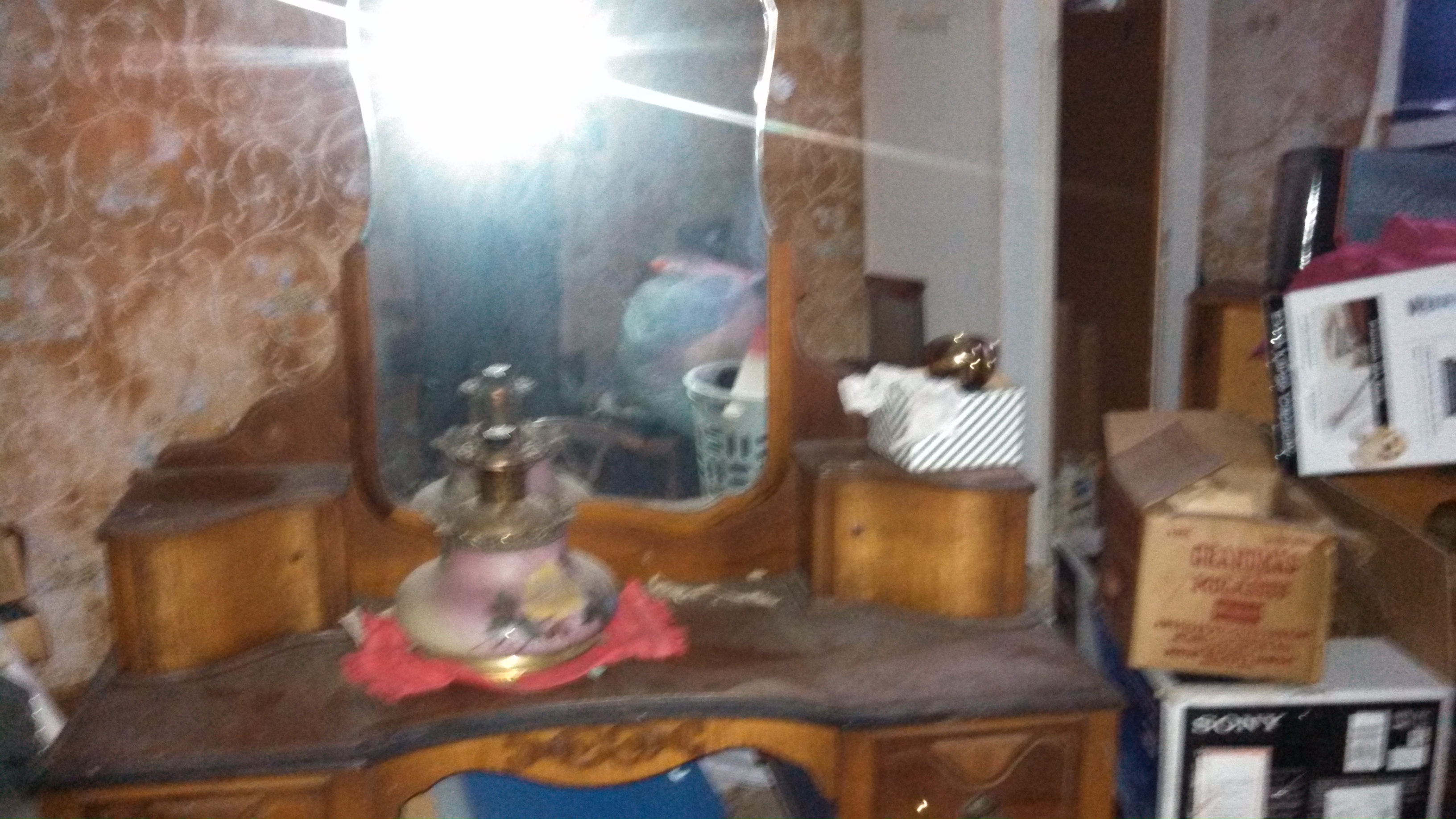 Early Cresent Furniture Vanity with mirror in amazing condition. Stored in attic for over 60 years.