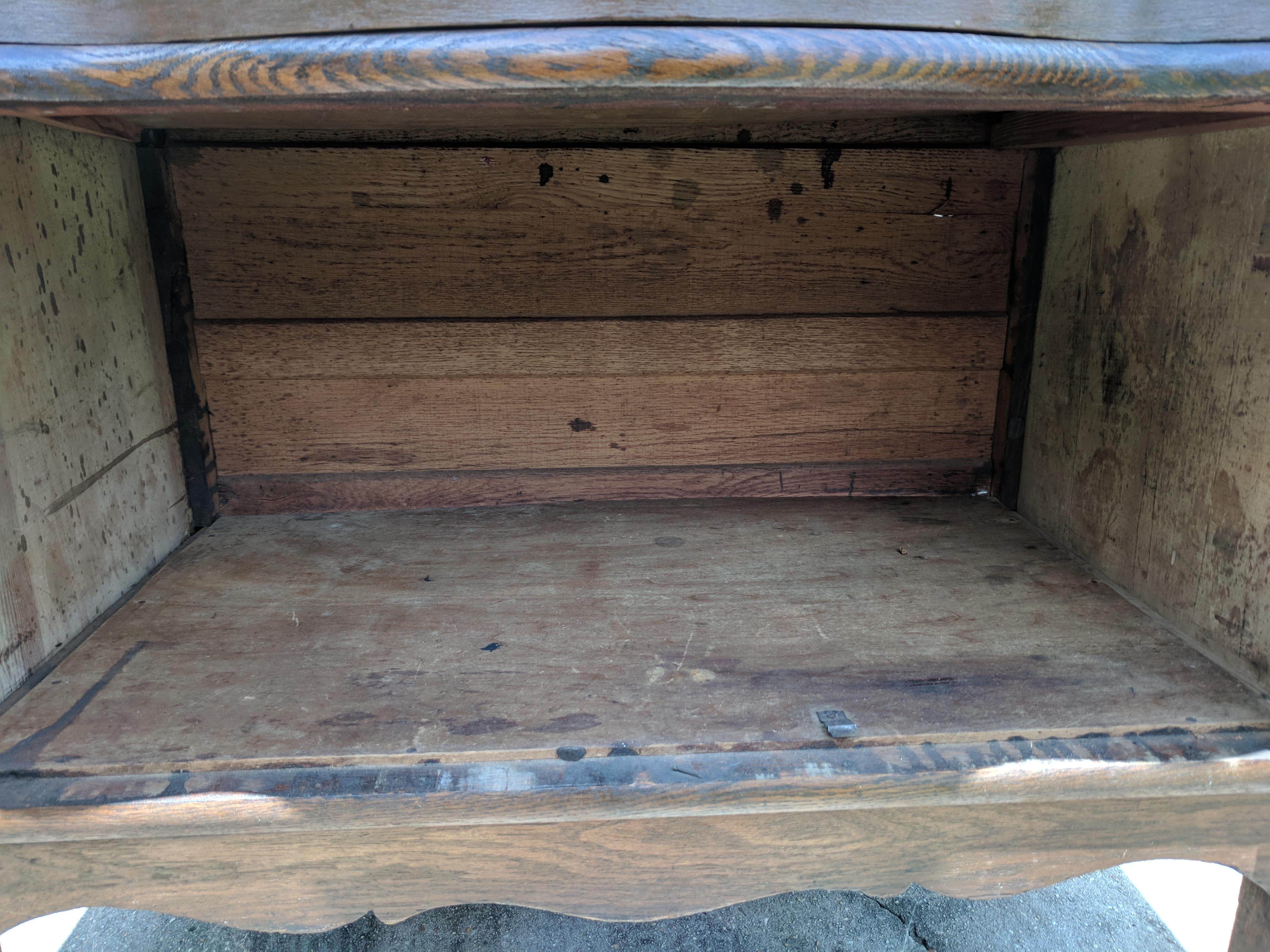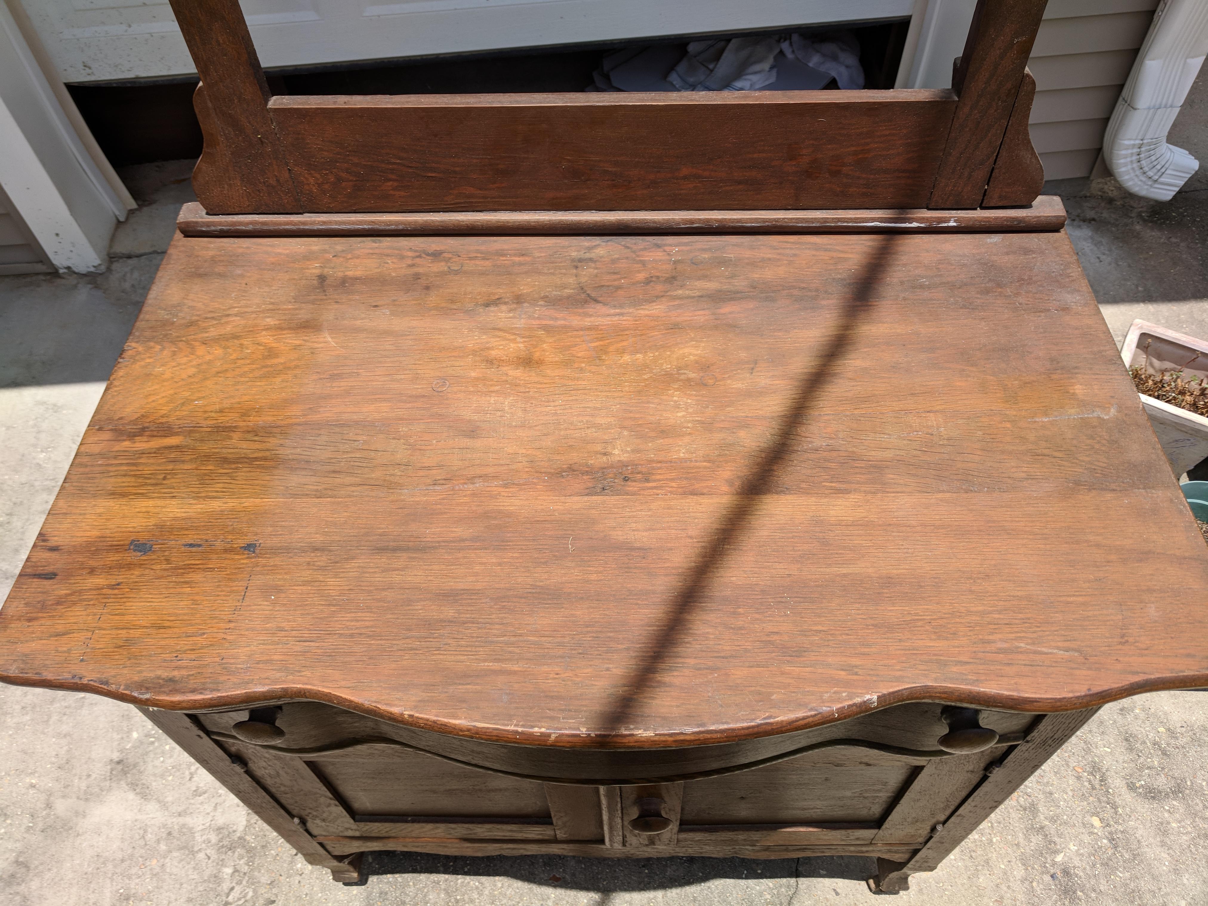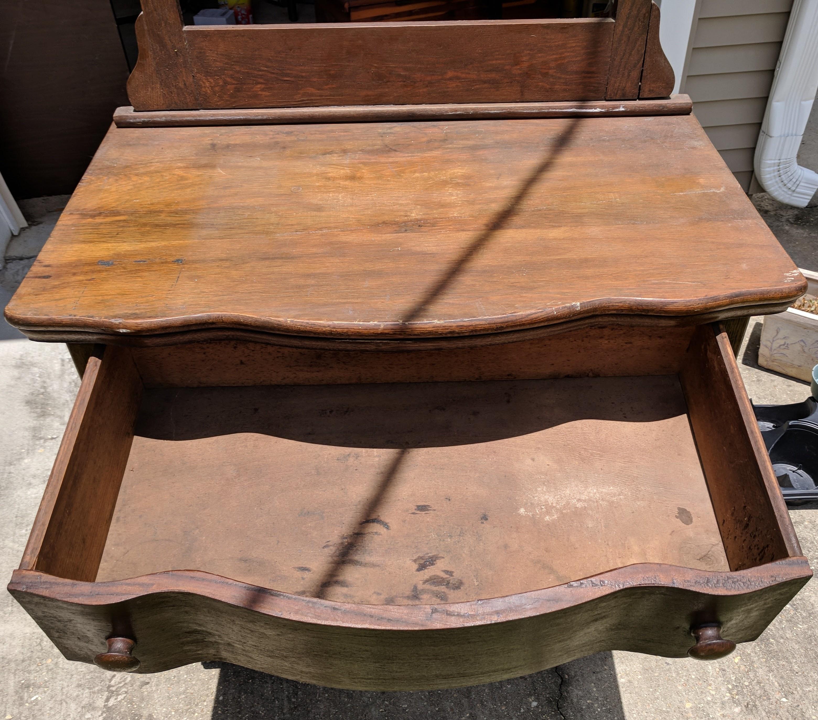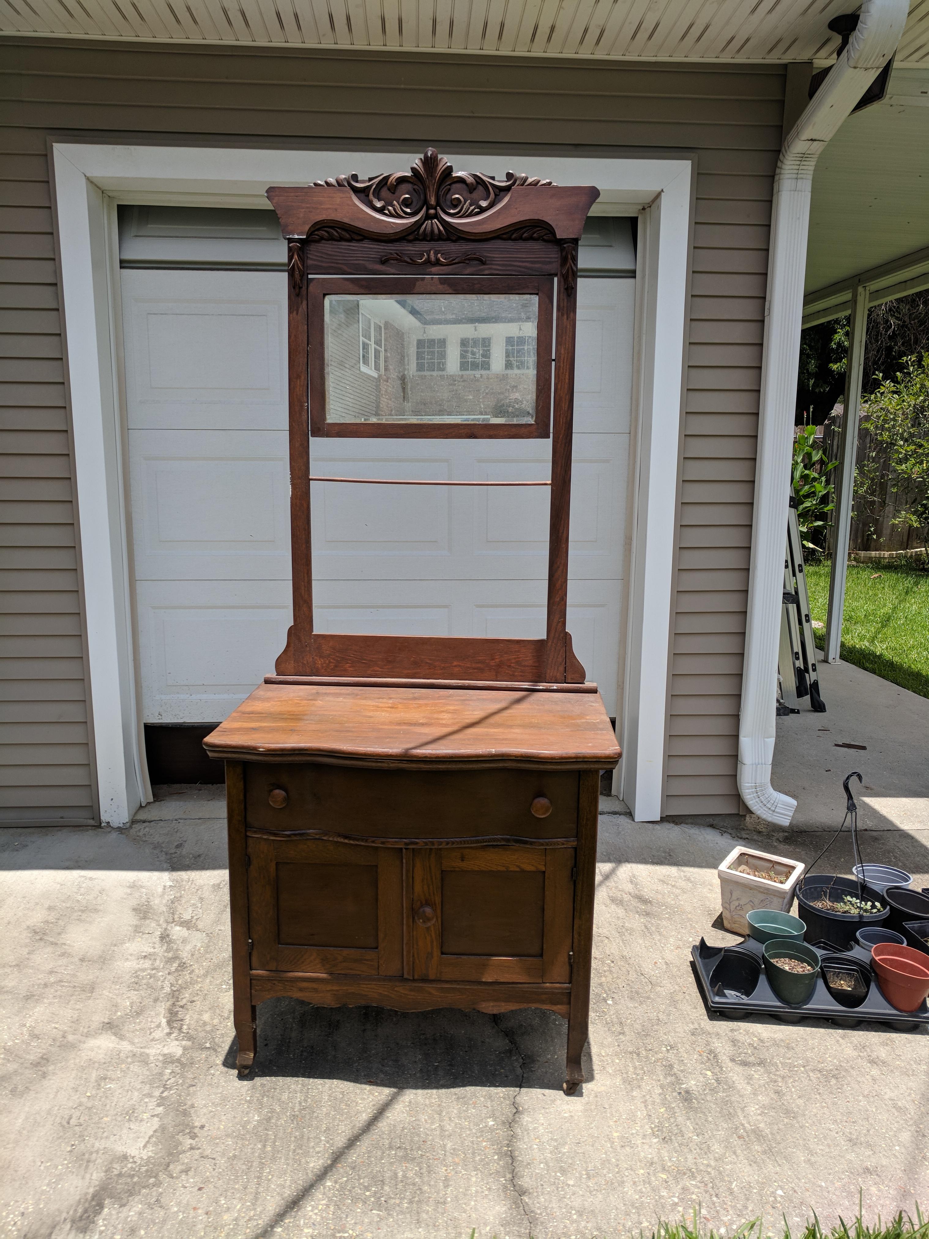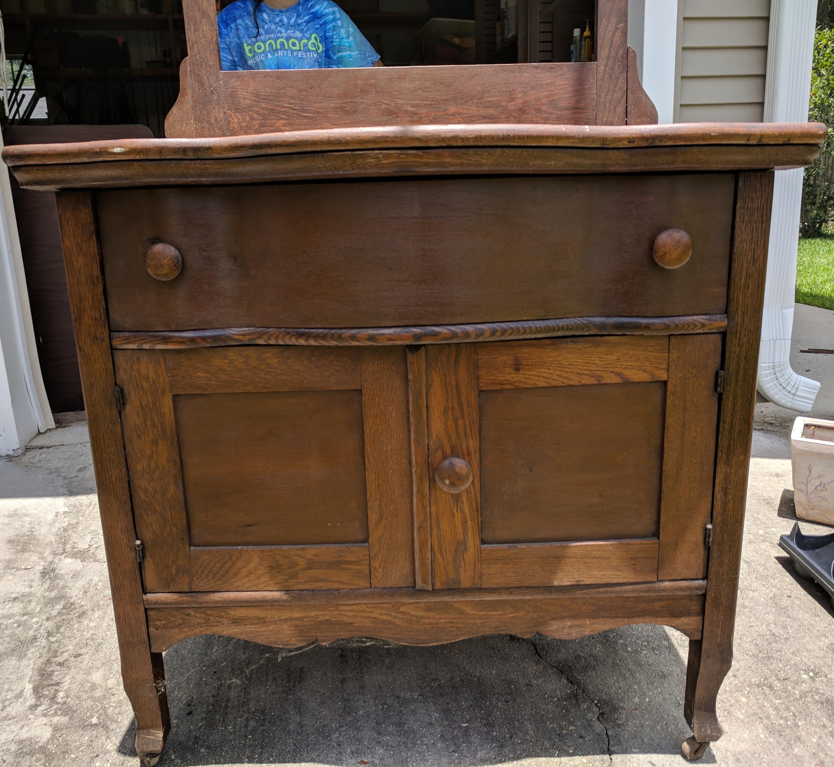 I believe the item to be some kind of vanity. My father referred to it as a shaving table. I know it has an old style of glass for the mirror. It also seems to be made from multiple types of wood.