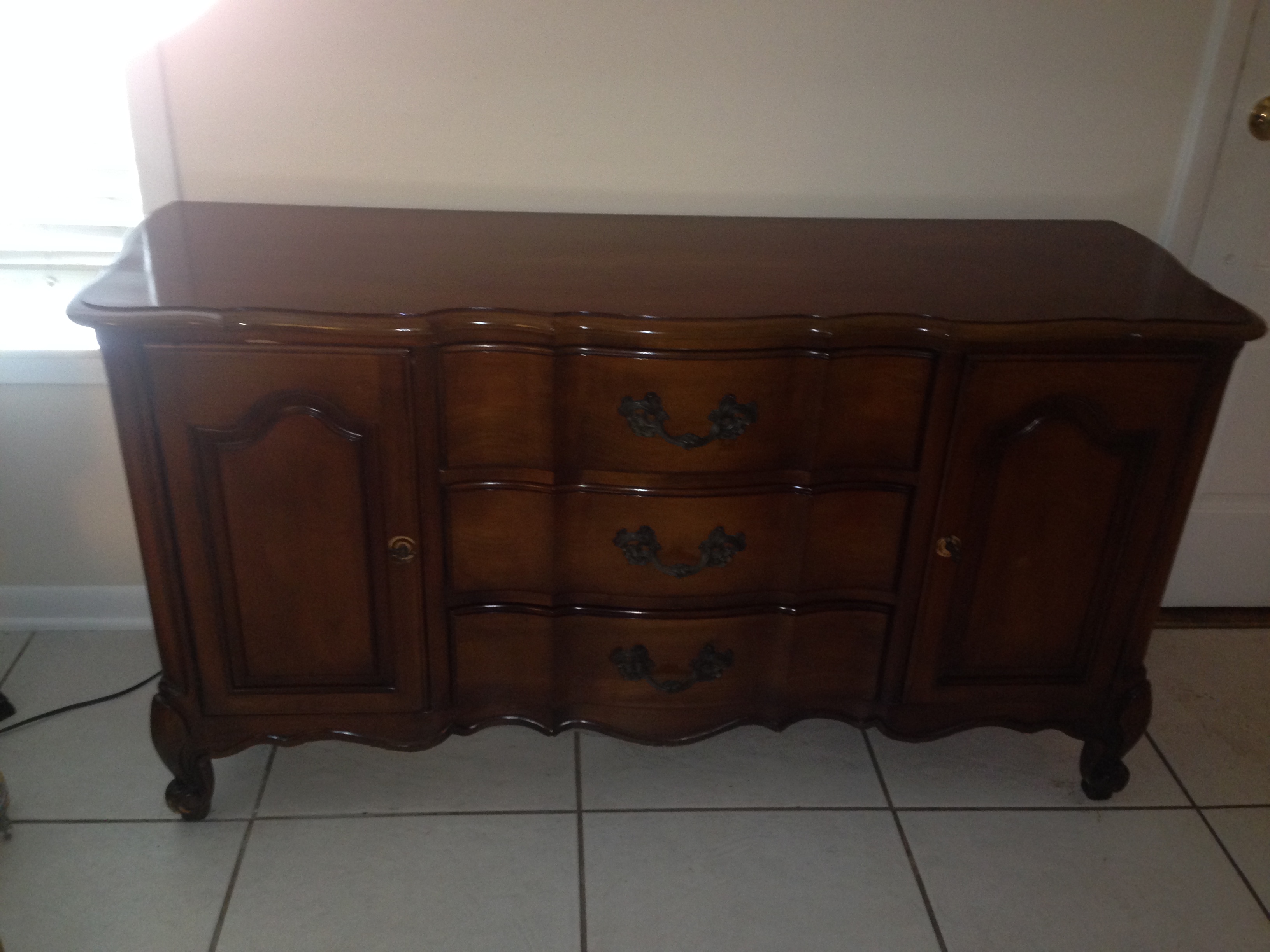 Vanleigh dresser in good condition with a couple knicks and scatches. Not sure from what era it is or what to sell it for.