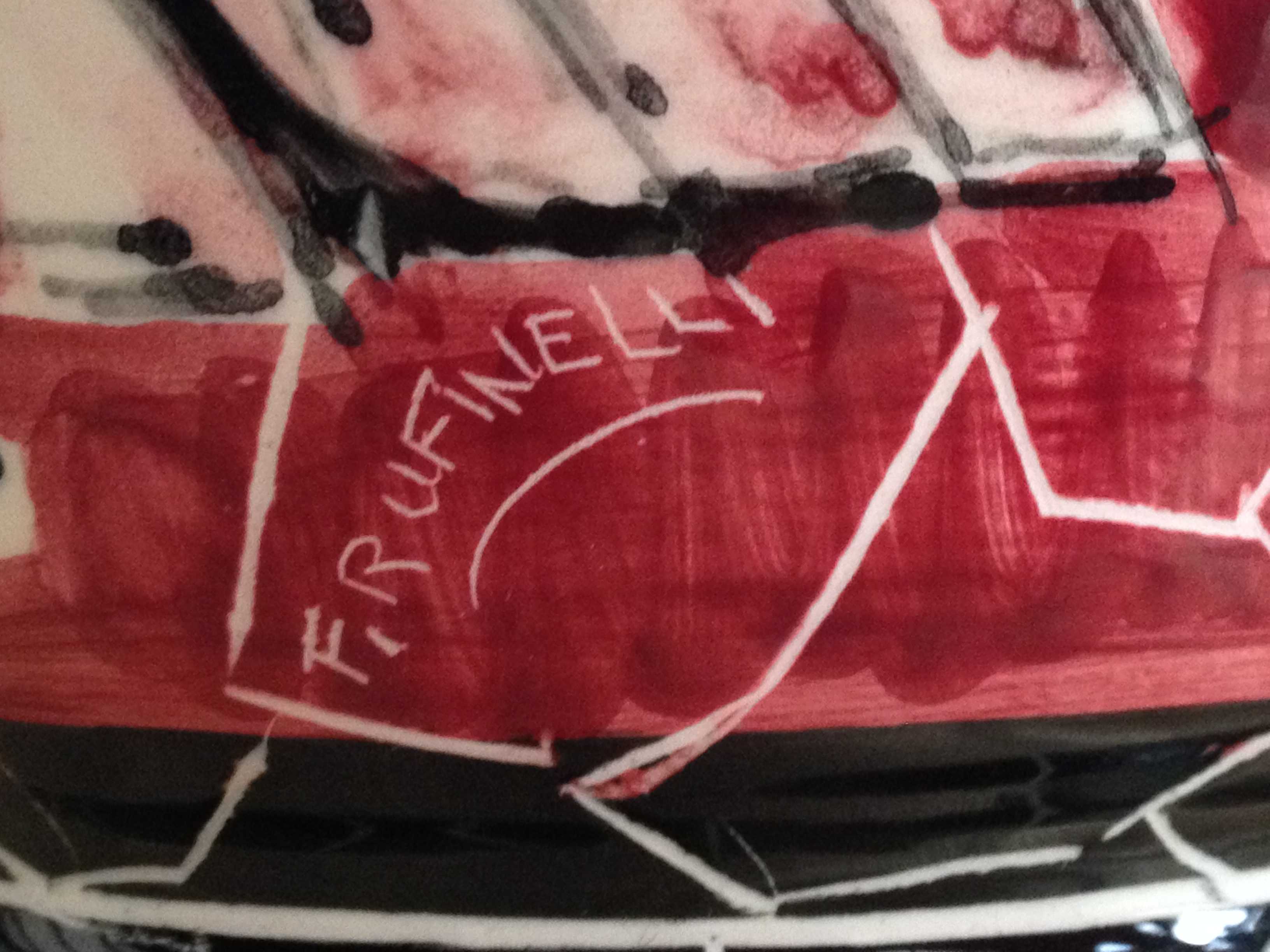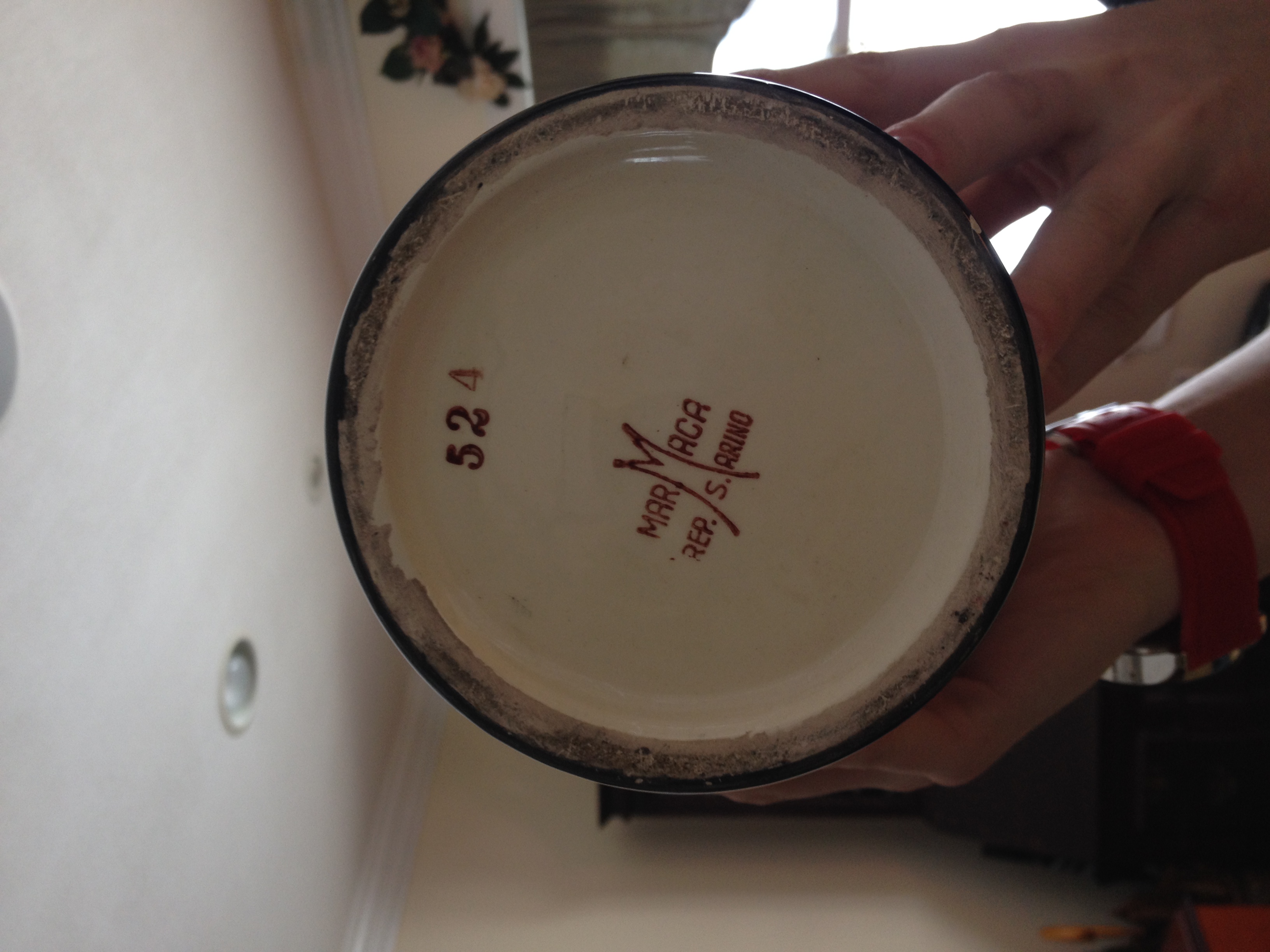 This is a vase from my Grandmother , it has #524 as well as marMaca rep.s. arino on the bottom . Artist name on side is F. Rufinelli .