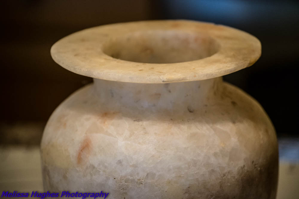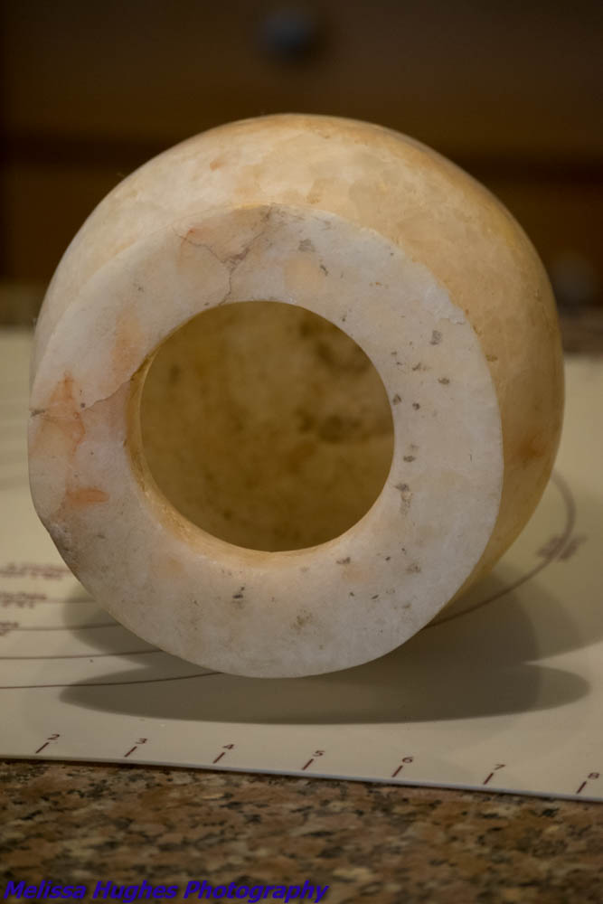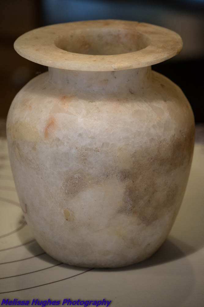 My best guess is that the vase is Alabaster. Ivory or bone would be much lighter in weight.