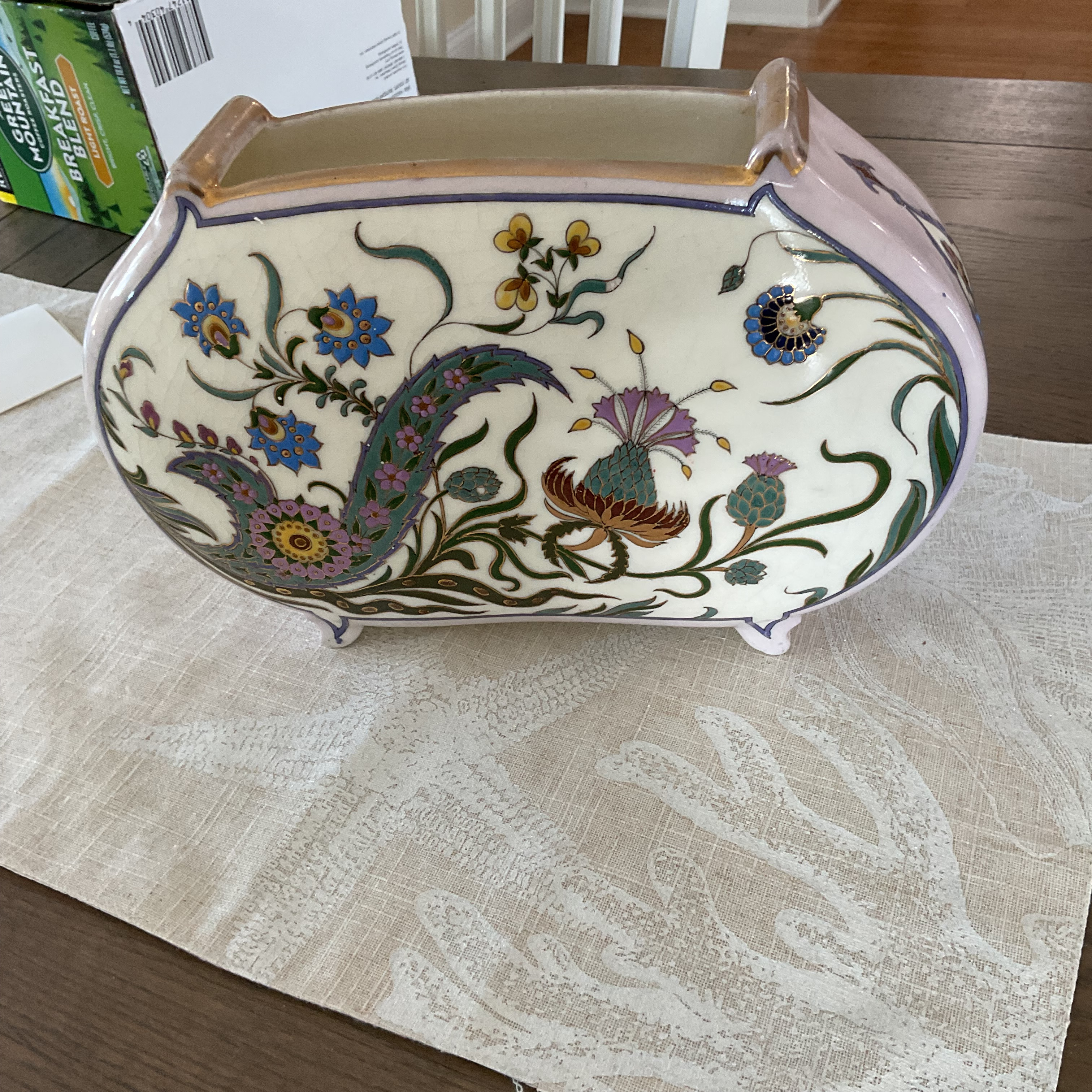 Antique Decorative Vase. Dating to c. 1920. Materials: Ceramic with hand-painted floral designs.. Estimated value: $128 – $180. Condition: Very Good. The market for decorative pottery is currently stable, with moderate demand for unique pieces from the early 20th century.