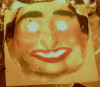 Veggie/Vegetable Man Halloween candy container probably chalkware 3 1/2" tall with hole in bottom, held a partial cardboard ring.