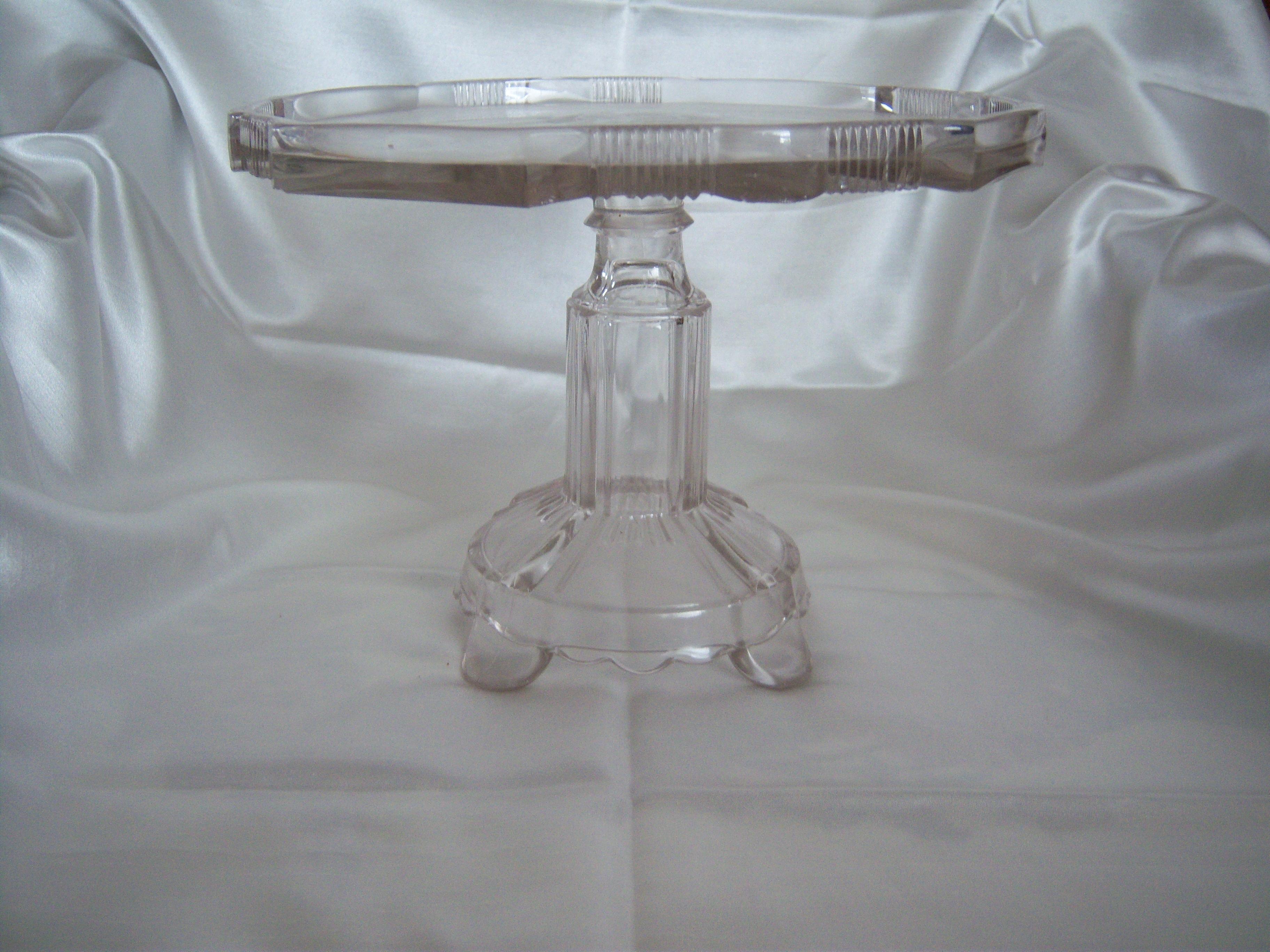 Re: Antique Victorian Clear Ribbon Pattern Glass Cake Stand...