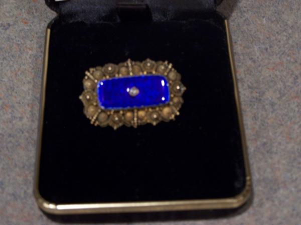 15K yellow gold antique victorian blue enamel & diamond pendant set with 1 rose cut diamond from England circa 1870
