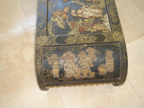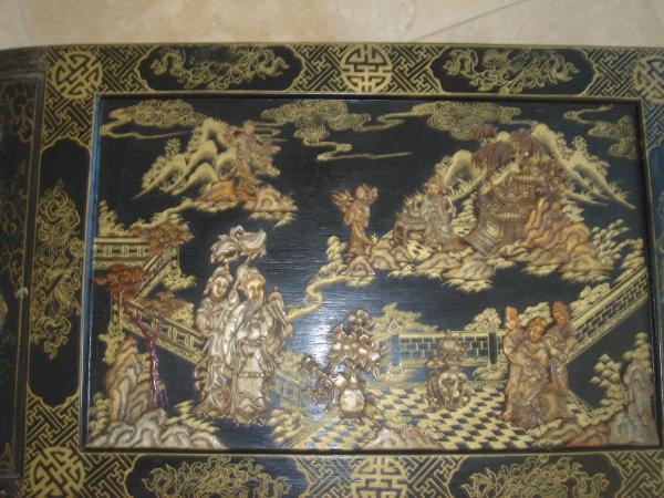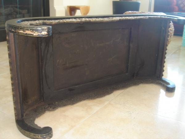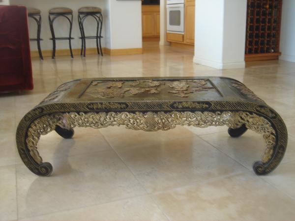 Sometime between 1967 & 1974 there was a flood in Hua, Vietnam. The Monks brought a bunch of old stuff from their temples and sold it to raise money for the flood victims. Supposidly this table was very old and dated back to the time of Vietnamies Kings that headquartered in the city of Hua.