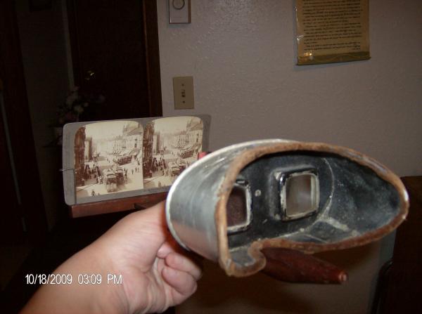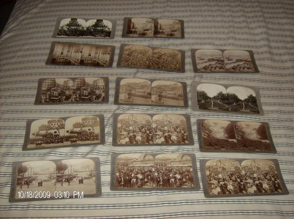 3d view finder imprinted man'fd by underwood & underwood patented june 11, 1901. foreign patents applied for. you look through the lens attached to a picture holder distance between the 2 is about 9 inches. There are two detachable picture holders. There are 14 different pictures to look at and the images are in 3d. Description of the pictures 1. sternly icturesque old fortess seen from a square in modern town, Bergen Norway, copyright 1905 by underwood and underwood. 2. monster forward guns and the crew of the magnificent battleship "Wisconsin", copy right underwood & underwood 1901. 3. goteborg's great market-crowds of busy country folk and towns people- Sweden, copyright 1905 by underwood & underwood. 4&5. In the great market place of busy Bergen, from teh flower market to the fish market copyright 1905 underwood & underwood, there are two of thesse ones are both identical 6.the old fortess of Fredrikshald, Norway copyright 1897 by Underwood & underwood. 7. in the heat of the modern Babylon, Picadilly Circus, London, England, copyright 1896 by Stohmeyer & Wyman. 8. the great ballroom at the palace christiania, norway copyright 1897 underwood & underwood. 9.threatening steeps of the kjendals glacier whose perilous crevassea forbid exploration-norway. copyright 1905 by underwood & underwood. 10. irrigating at orange grove, california copyright 1905 by C.B. Graves. 11. the great union stock yards the greatest live stock market in the world chicago, ill copyright 1903 by underwood & underwood. 12.christiania's largest market norway copyright 1900 underwood & underwood. 13. karl johans street W.N.W. to the royal palace christiania, norway copyright 1905 underwood & underwood. 14. on the fo'castle of the battleship wisconsin copyright 1901 by C. H. Graves philadelphia