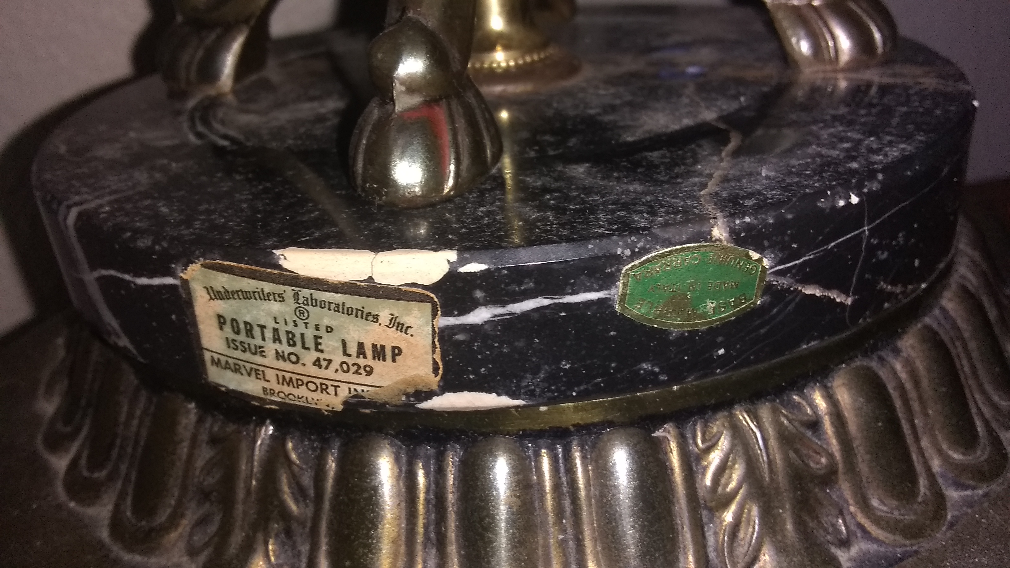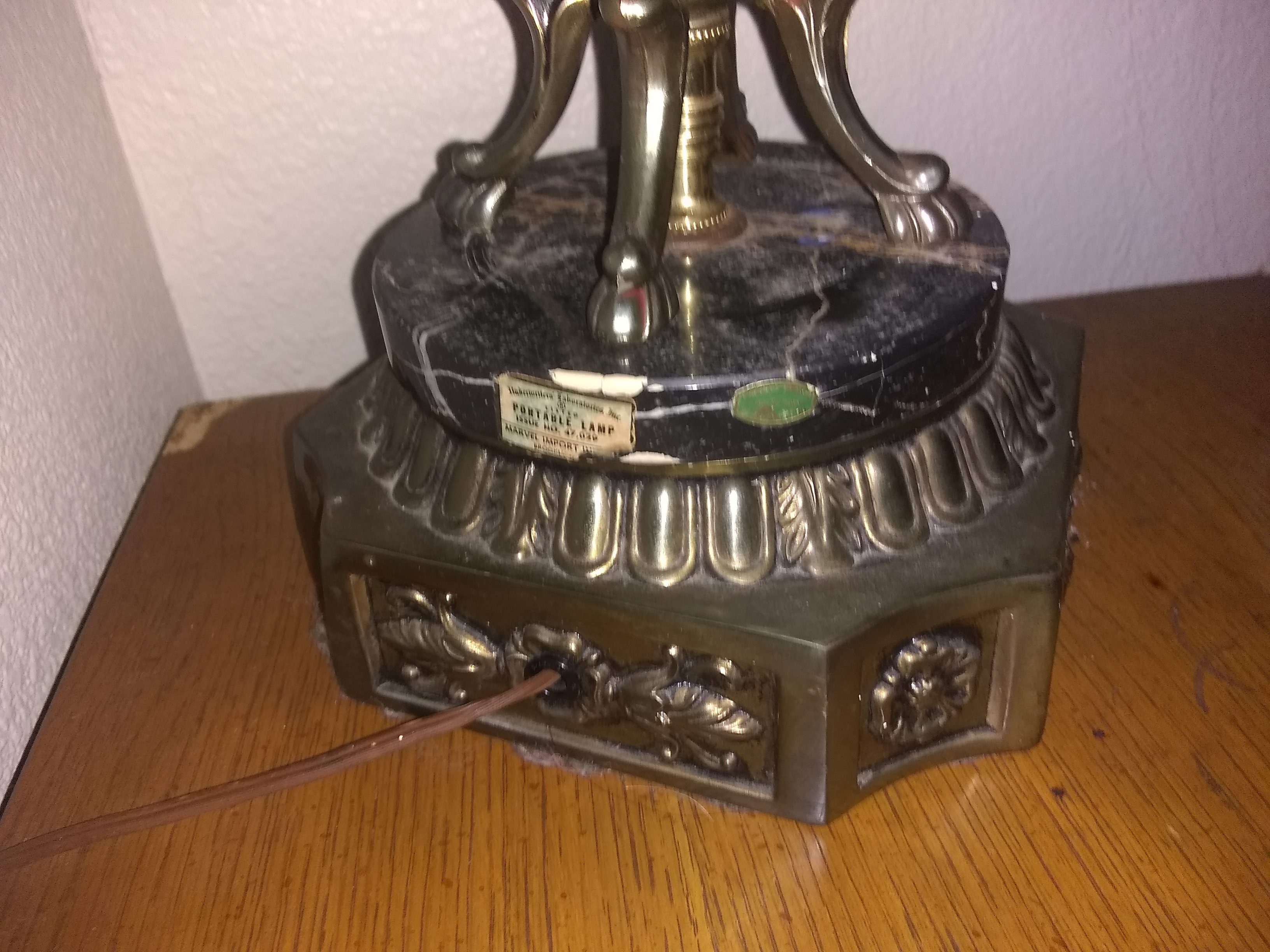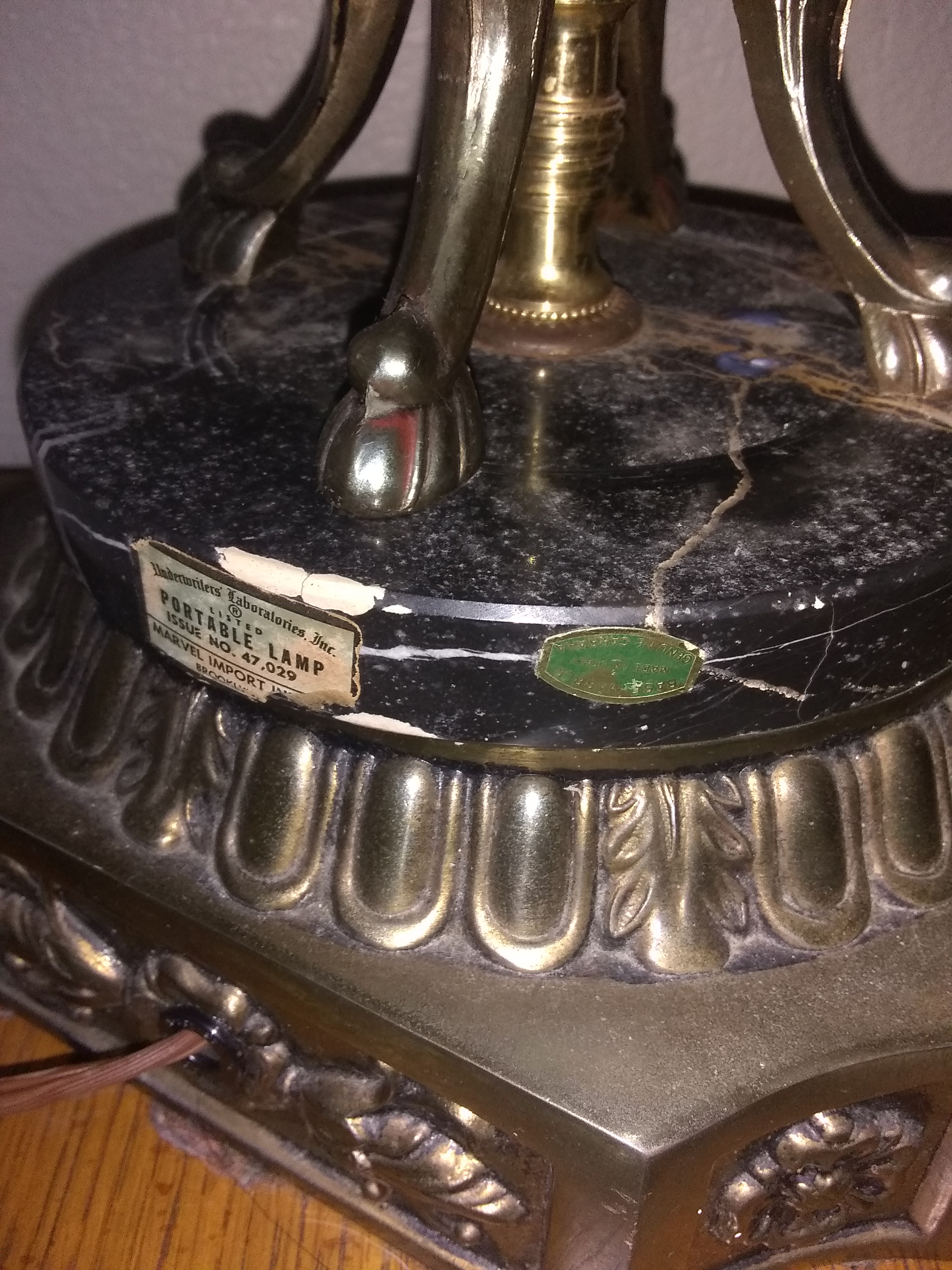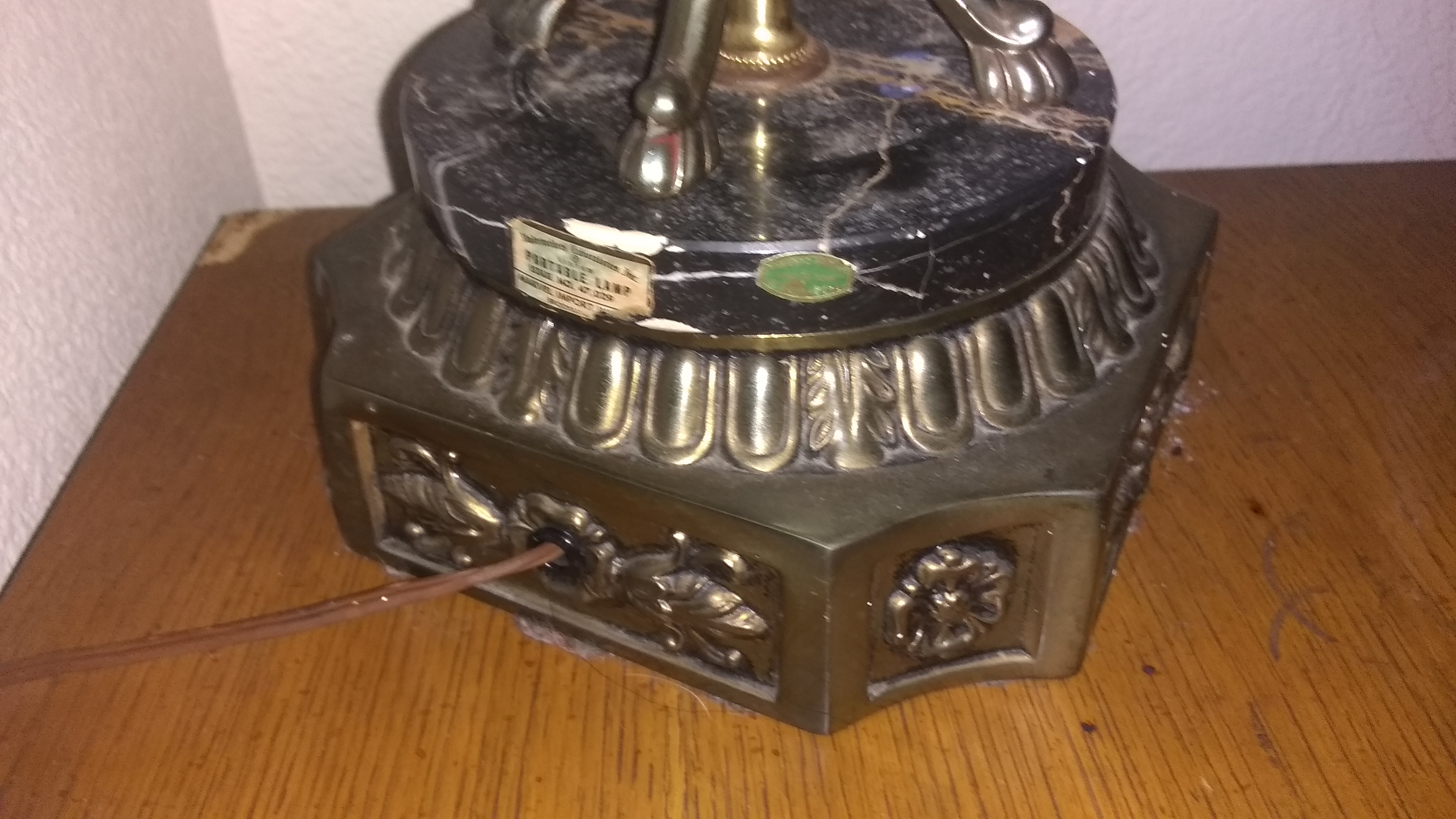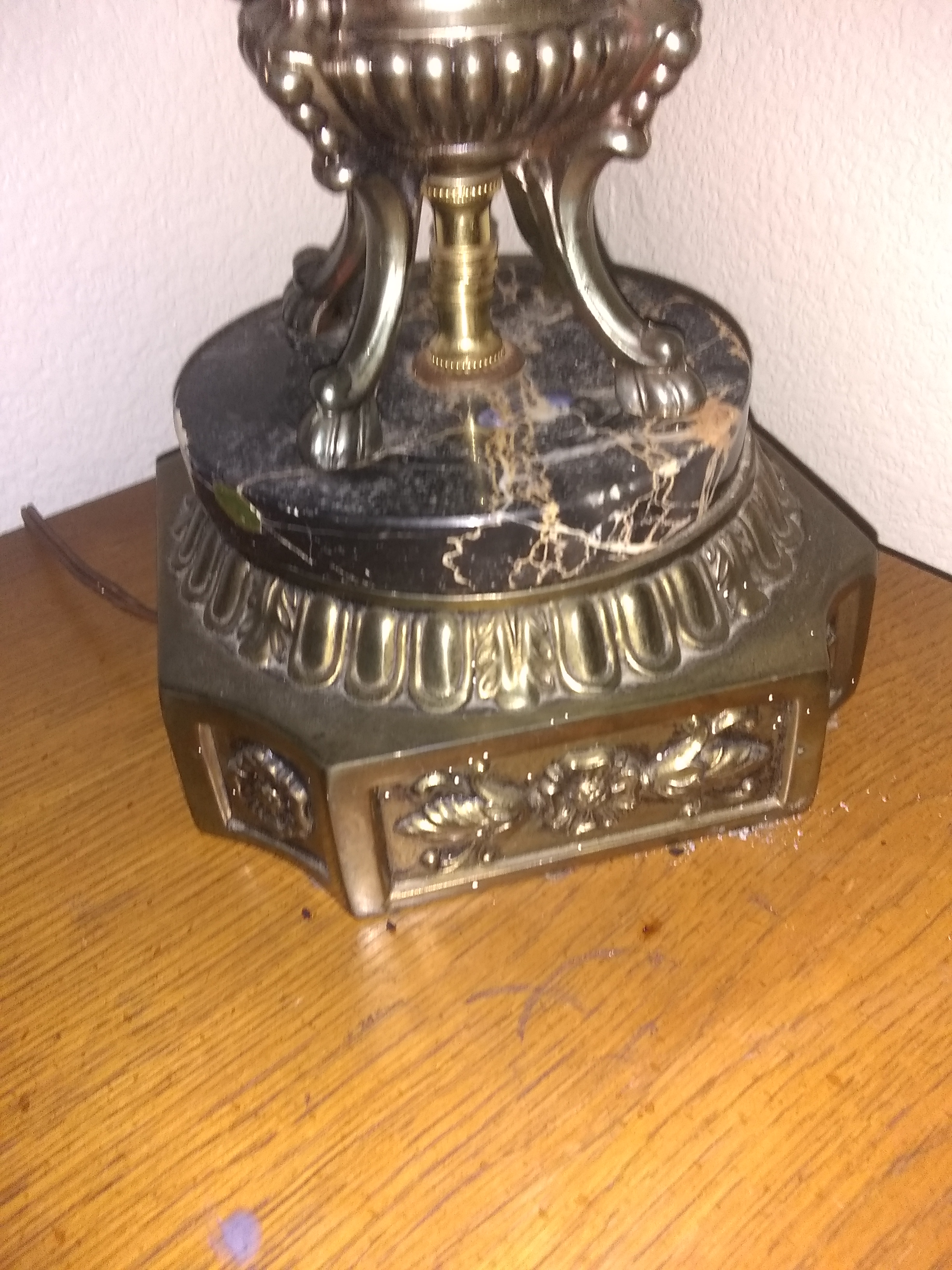 This electrical lamp is about 3 feet tall made out of crystal glass the base is genuine Carrara marble with brass right below with beautiful flower design.