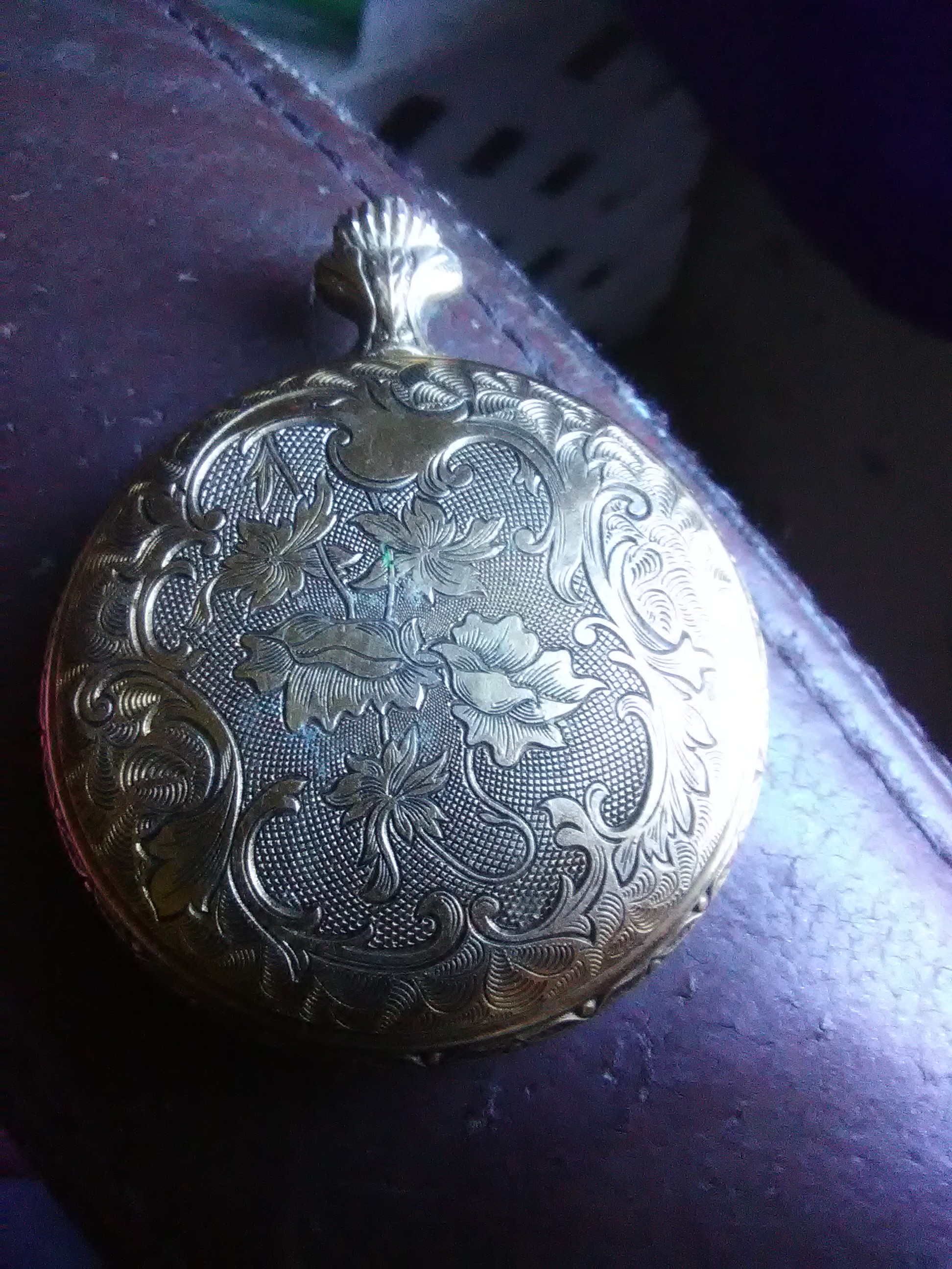 Your watch is missing a few things, chain and loop above winder that chain mounts on.
