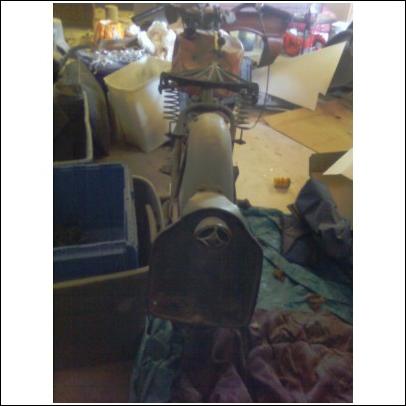 WE ARE NOT POSITIVE WHAT THIS IS. IT DOES HAVE A VILLIERS 2 STROKE ONE CYLINDER MOTOR. THE BIKE HAS ALMOST ALL PARTS THERE. ENGINE HAS COMPRESSION SO WITH THE RIGHT WORK IT WILL RUN. GEAR SHIFTER GOES THROUGHT THE GAS TANK. AND IT DOES HAVE A BODY "VIN" NUMBER STARTING WITH AU AND SOME #'S AFTER.IT DOES HAVE A SPOKE FROM REAR TIRE THAT IS BENT AND KEEPS THE TIRE FROM MOVING BUT WE DON'T WANT TO MESS IT UP BY DOING SOMETHING THAT WILL RUIN IT SO WE HAVE LEFT IT ALONE. MY MOTHER WAS GIVEN IT UNDER ODD SERCOMSTANCES BY THE COURTS AND HAS FULL OWNERSHIP BUT NEEDS THE MONEY SHE LOST DUE TO A FRAUDULANT X-RENTER/HOME BUYER.