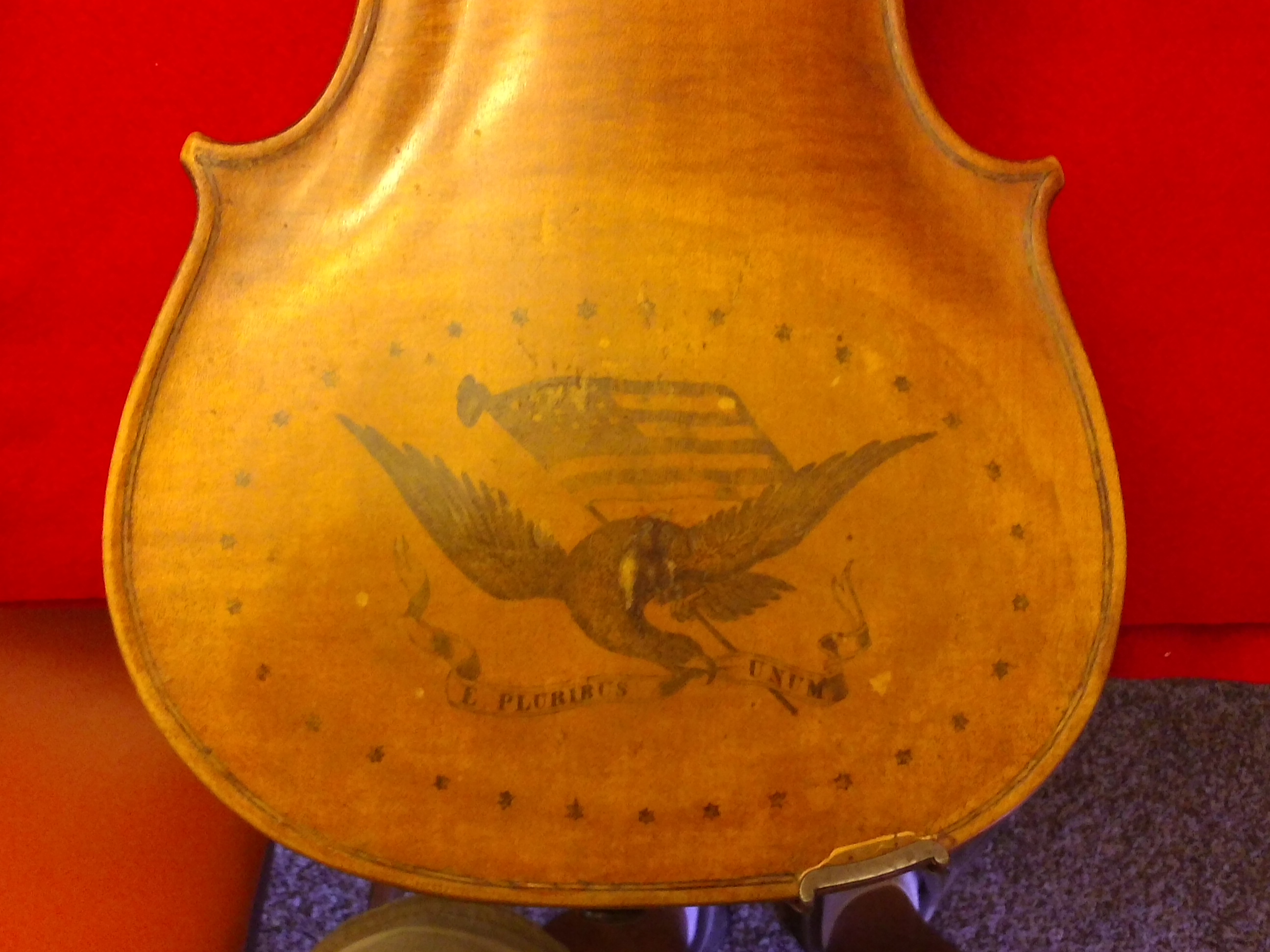 Violin with "E Pluribus Unum" on the back, believed to be from the early 1800's