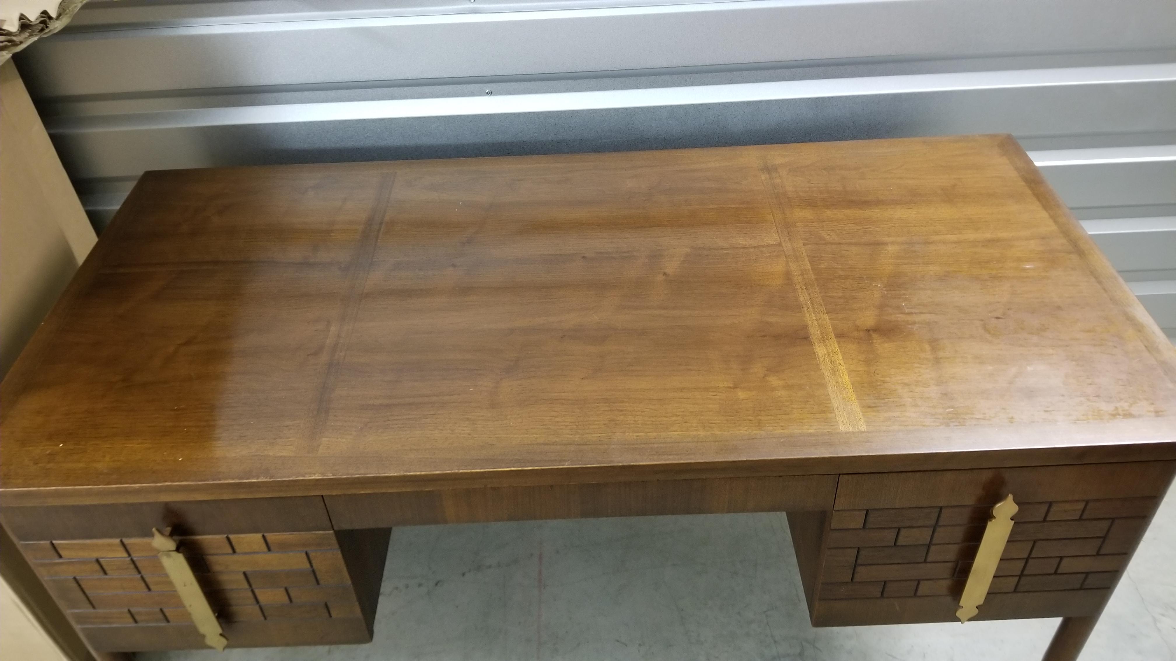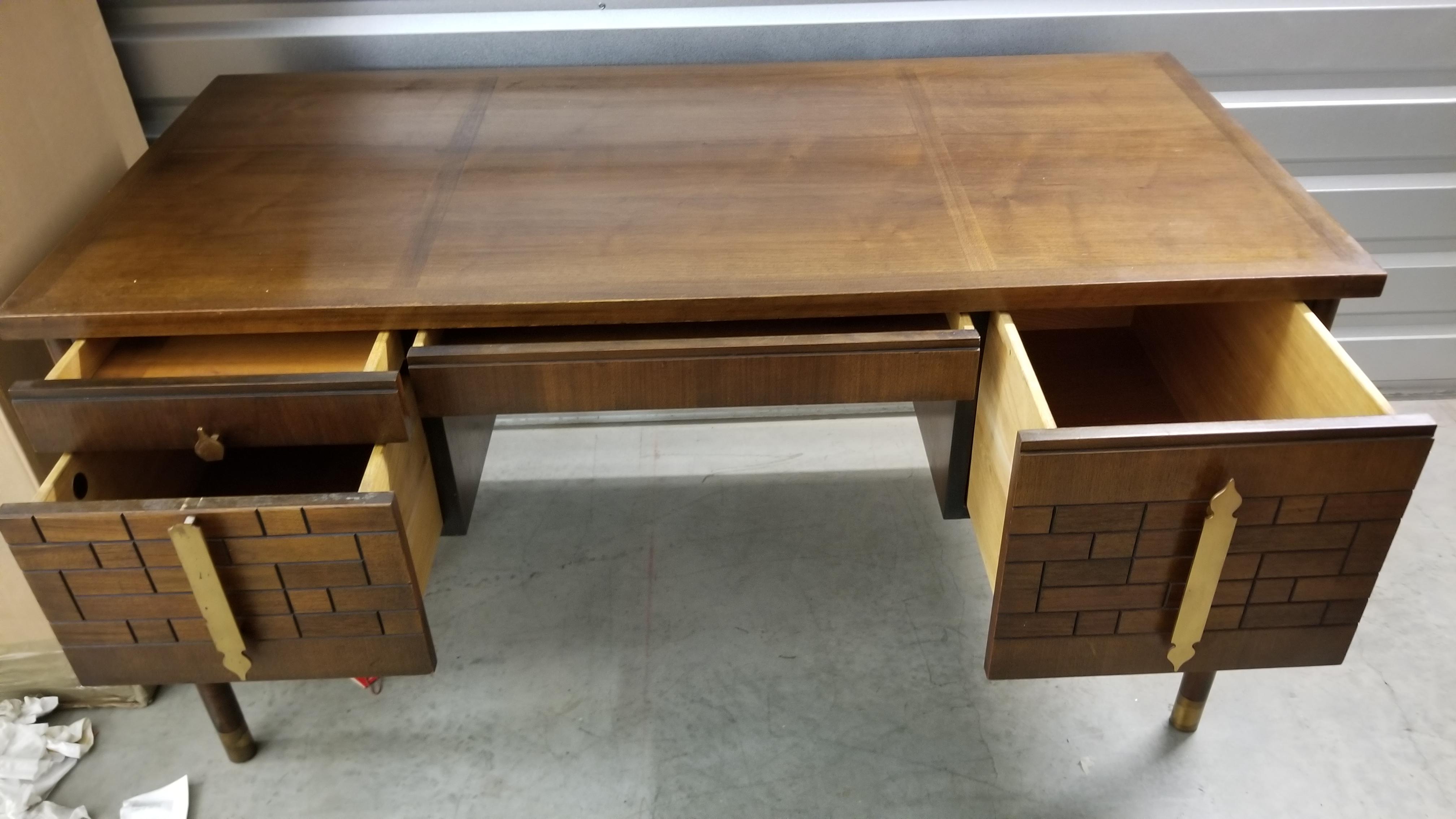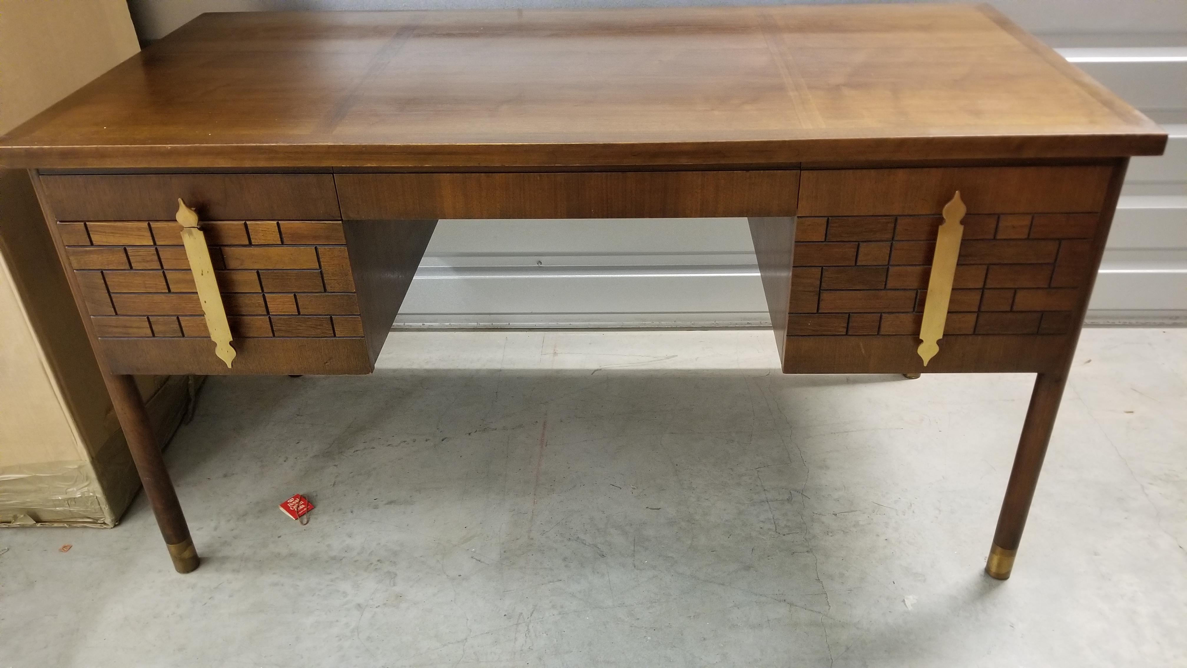 Antique Walnut Desk with 4 Drawers, brass leg footings and hardware. Desk is in excellent condition.