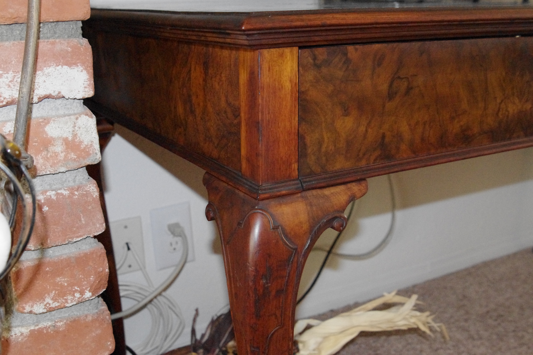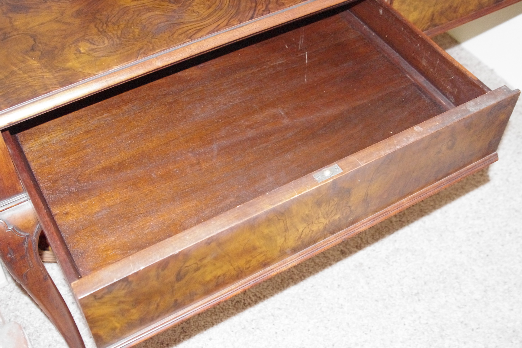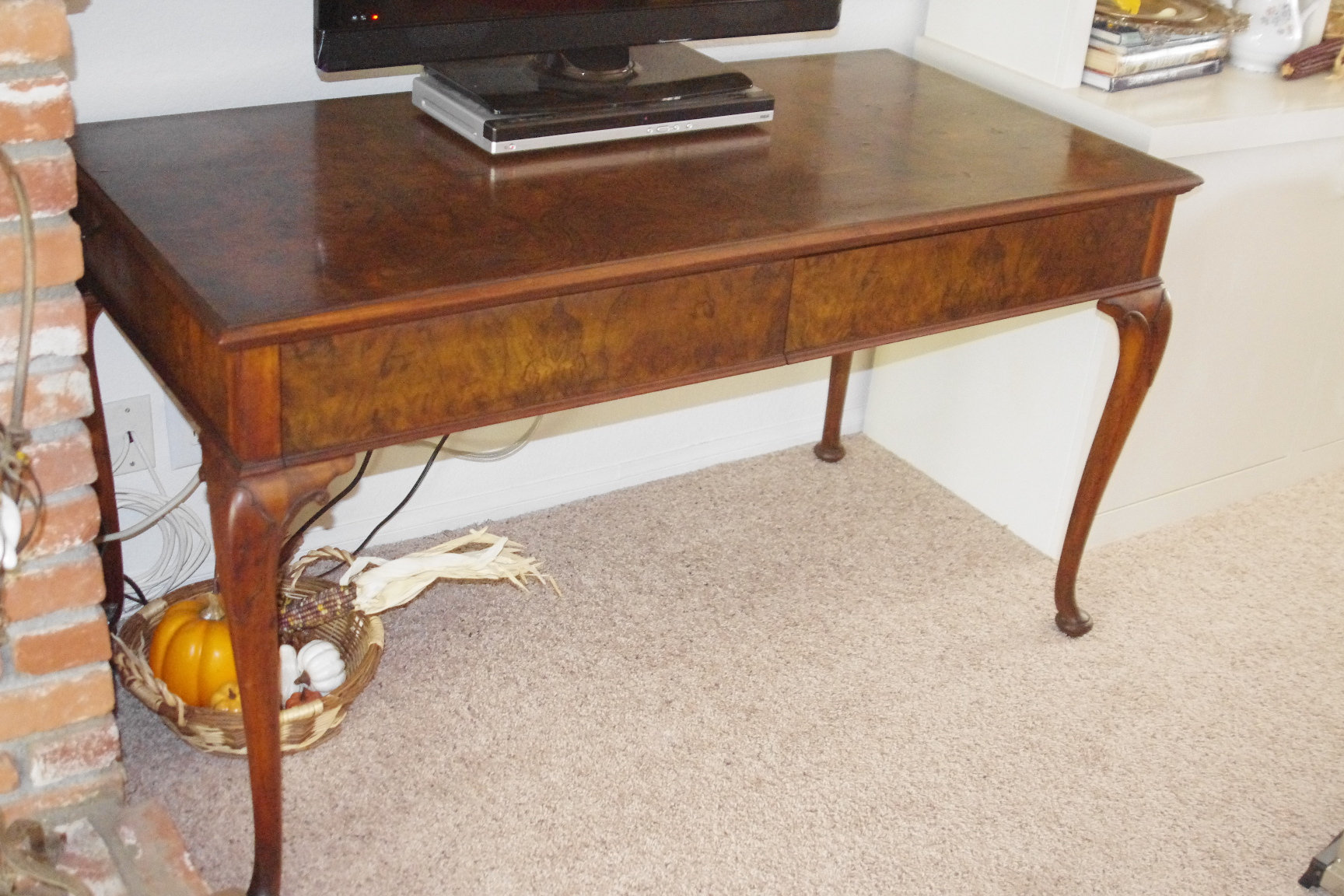 Antique library table with 2 drawers made of mahogany and walnut