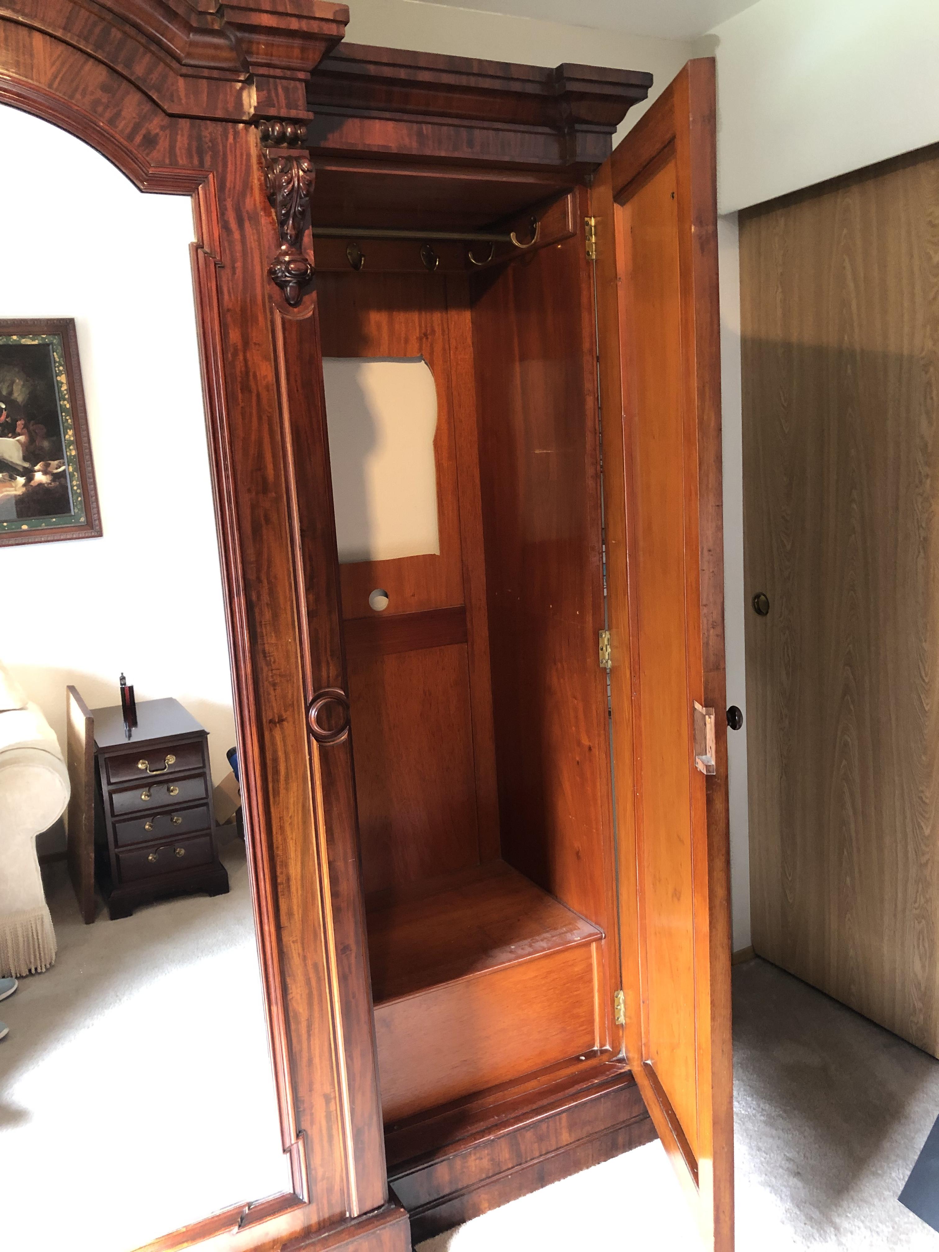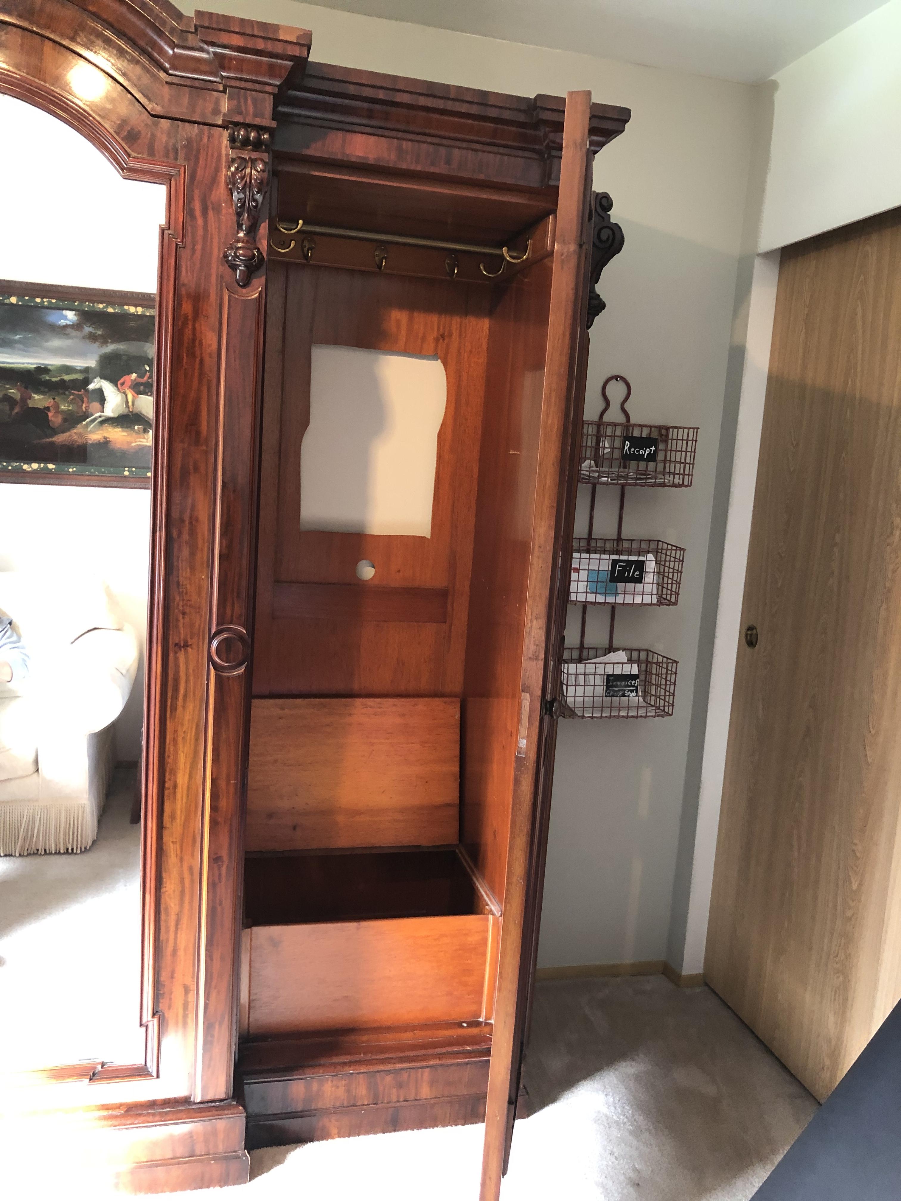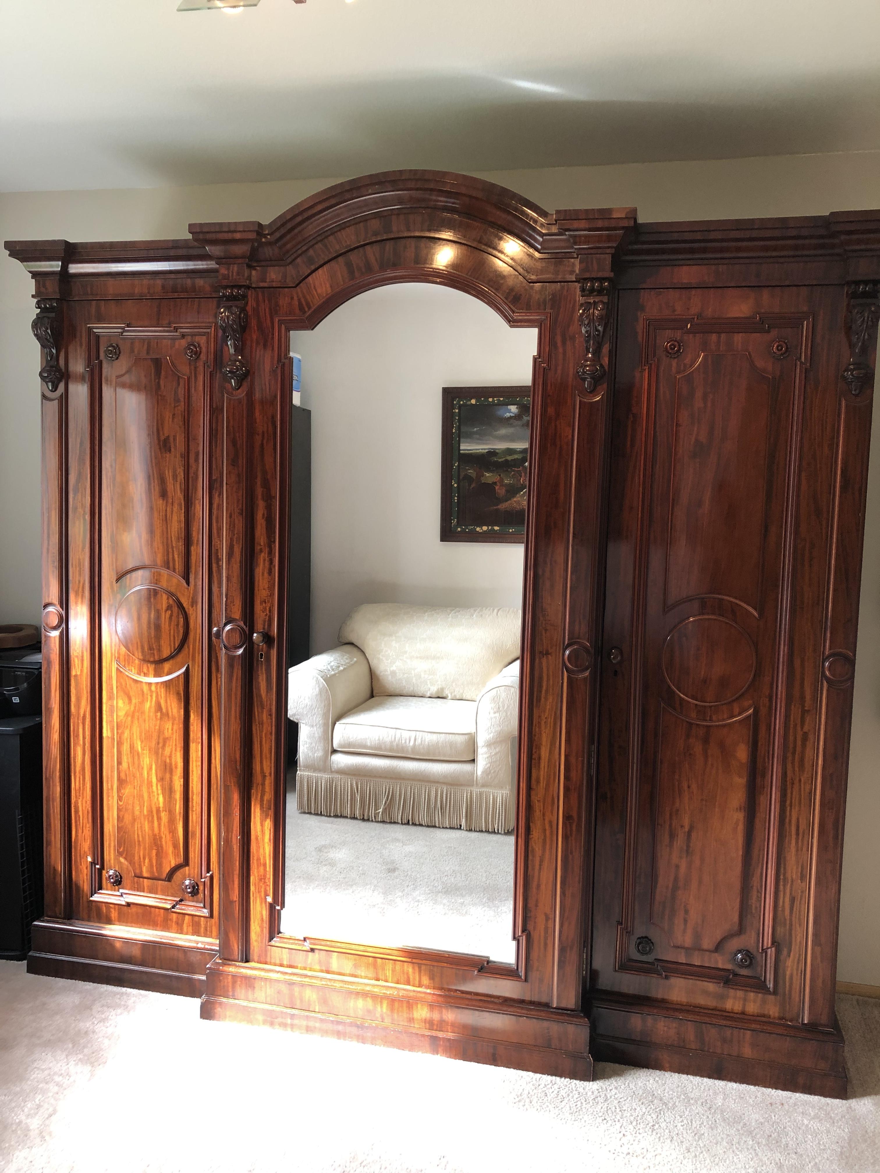 Hello. I was hoping you could help me get my armoire appraised. All the hooks, hinges, bars, drawer pulls and locks are brass. It separates into 5 pieces. It was given to be by my in-laws and although I love it unfortunately it is just too big for my house. I’m going to have to sell it but I have no idea of its value. Any help you could give would be greatly appreciated.