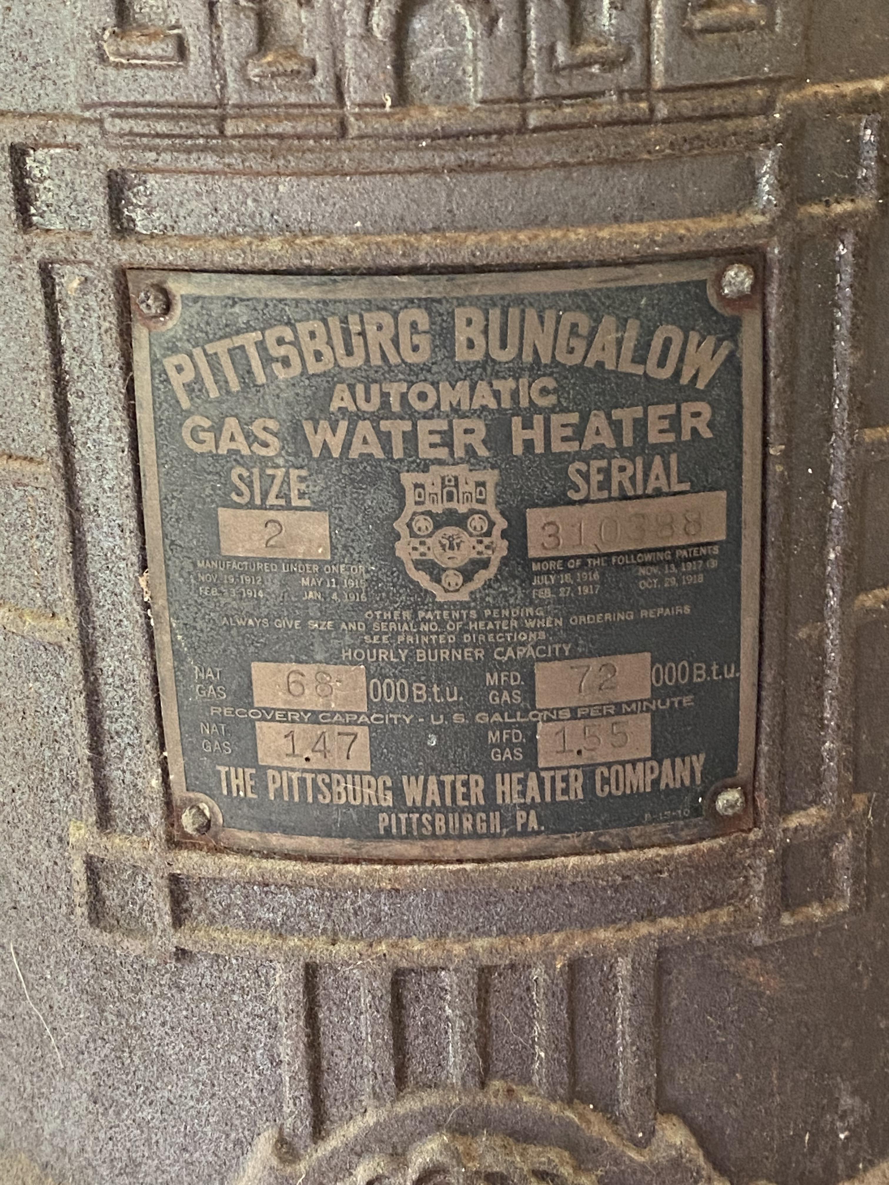 1912-1916 Cast Iron Pittsburg Bungalow Gas Water Heater