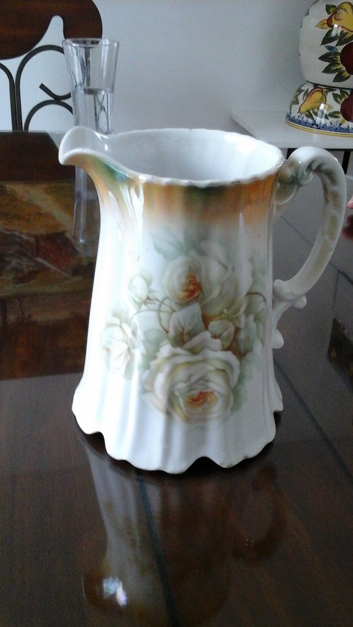 White water jug with painted roses. Owned by my grandmother who came to Canada in 1895 from England.