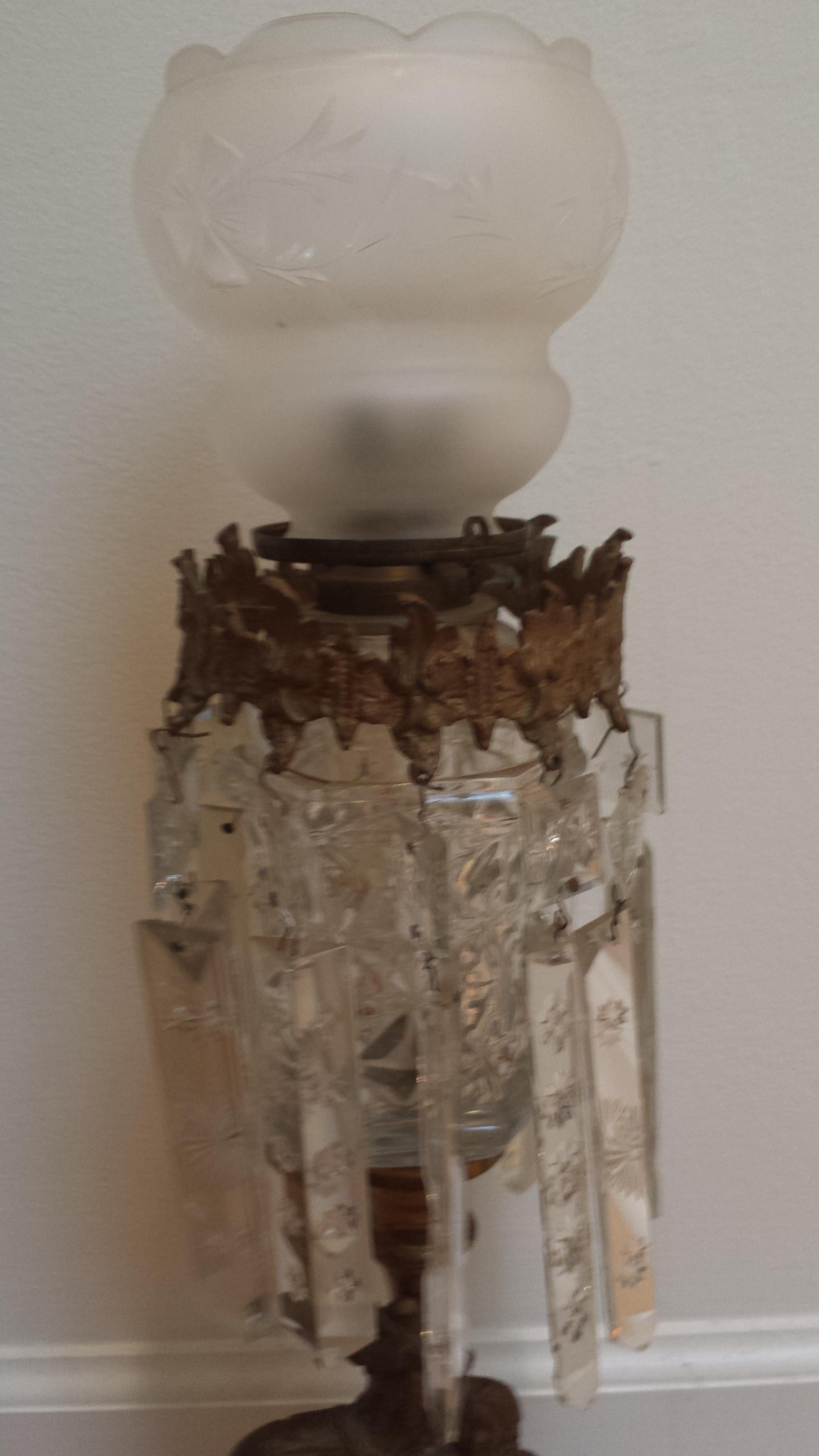 The owner of the home was an avid auction goer and had numerous antiquest in his collection. After the purchase, an antique dealer informed me that the lamps were whale oil lamps that fall in the 1830's to 1860's range. He also mentioned that the statues on the bottom of the lamp could be cast bronze, but he did not have any more information.