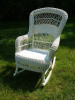 Antique wicker bottom rocking chair with mermaids carved in the back