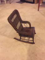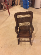 I believe this is an antique child's wicker rocking chair that date back to the early 19th century.  It was passed down the family and pre-dates my time, so I am unsure of it's exact orgin.  It belonged to my great-grandmother and even when she had it, it was old and only to be "seen and not used."  The condition of this rocking chair is exellent, expecially considering it's age.  There is no evidence of scratches, ripping, discoloration, or tears of any kind.